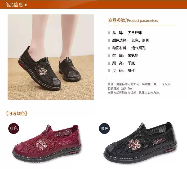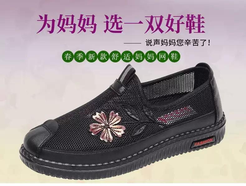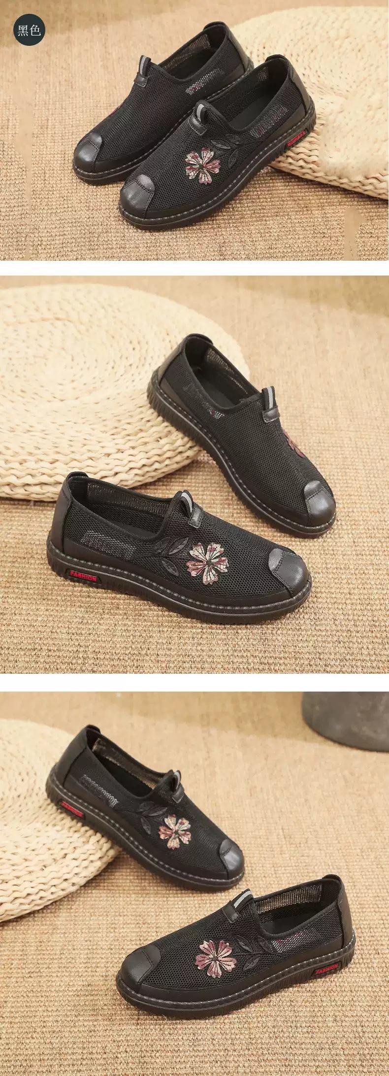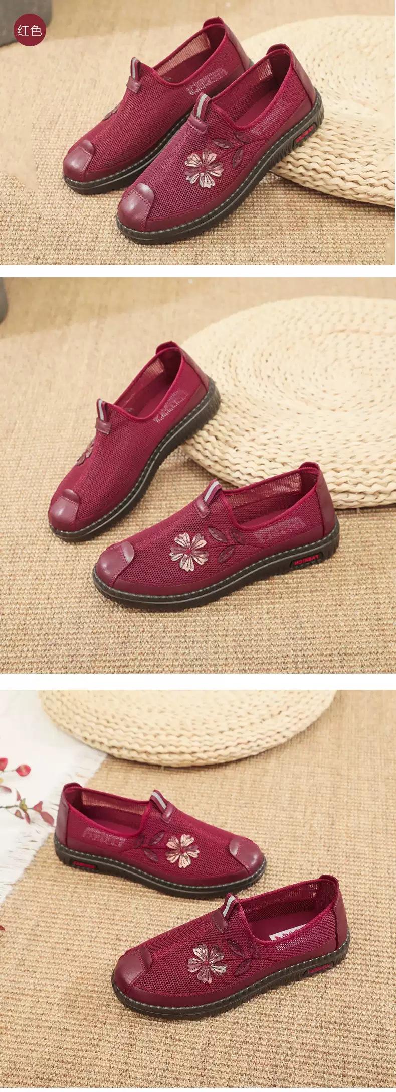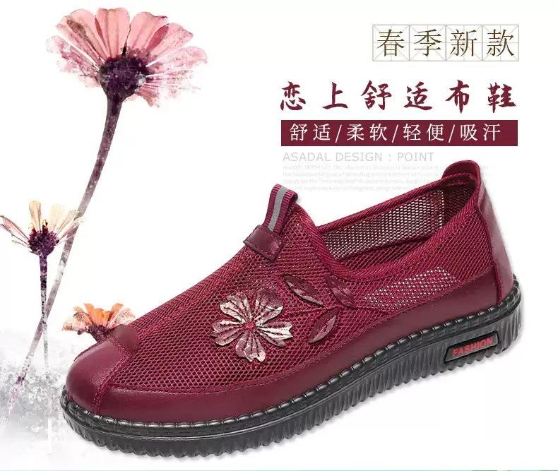 Primavera y Verano Nuevos Zapatos de Tela de Pekín Antiguo para Mujer Zapatos de Malla Antideslizantes Suela Suave Slip-on Resistentes al Desgaste Zapatos para Mamás de Mediana Edad y Mayores