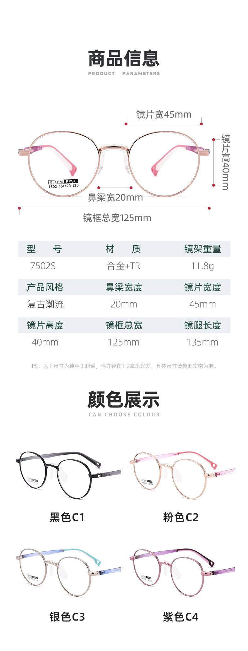Armazón de Lentes para Miopía Infantil Hipoalergénico Armazón Pequeño Ovalado Estudiante Antideslizante Armazón de Control 7502 Venta al por Mayor de Lentes Danyang