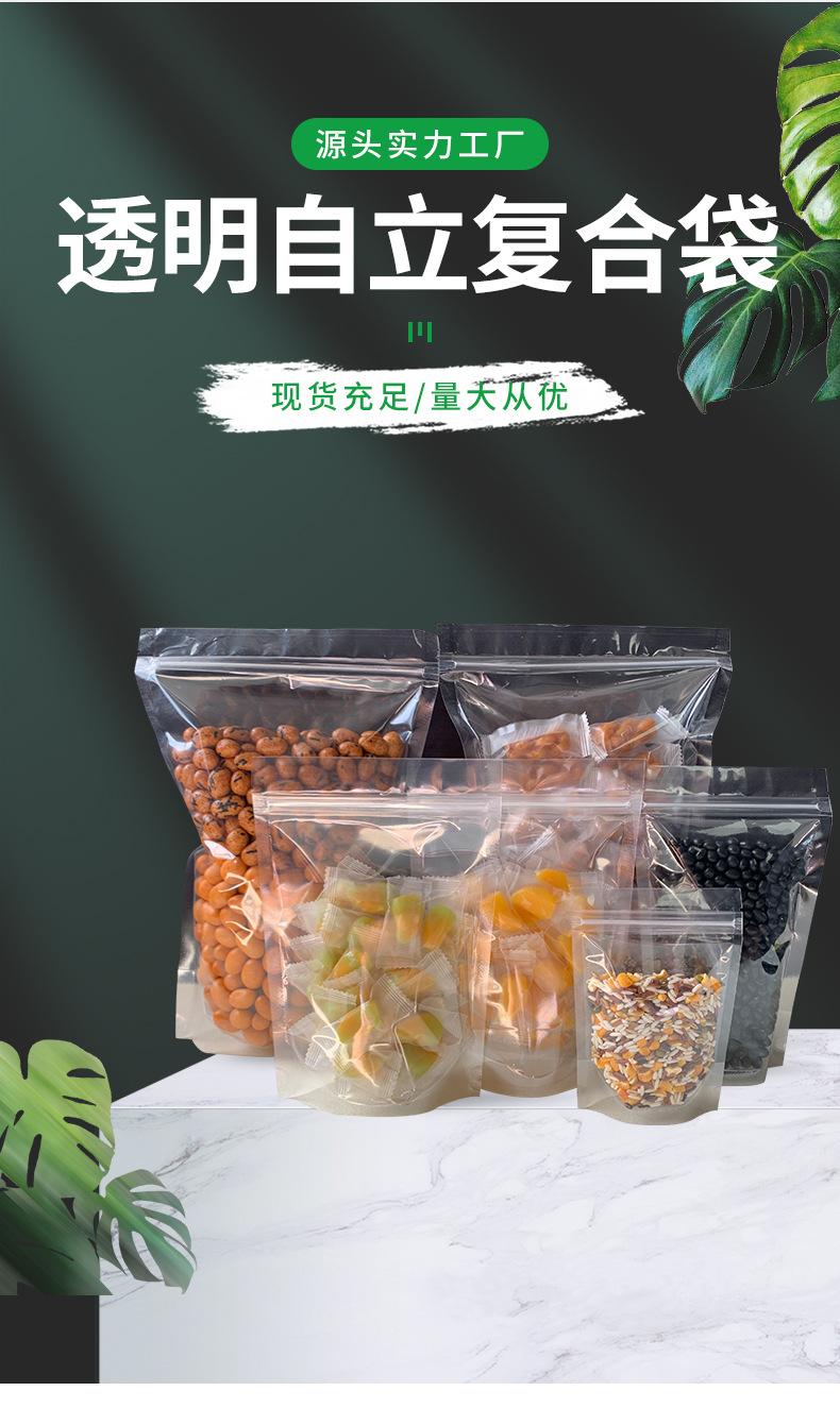Fábrica en stock embalaje de alimentos transparente bolsa autosostenible bolsa con parche de hueso sellada para dulces de té perfumado bolsa de embalaje para snacks de nueces