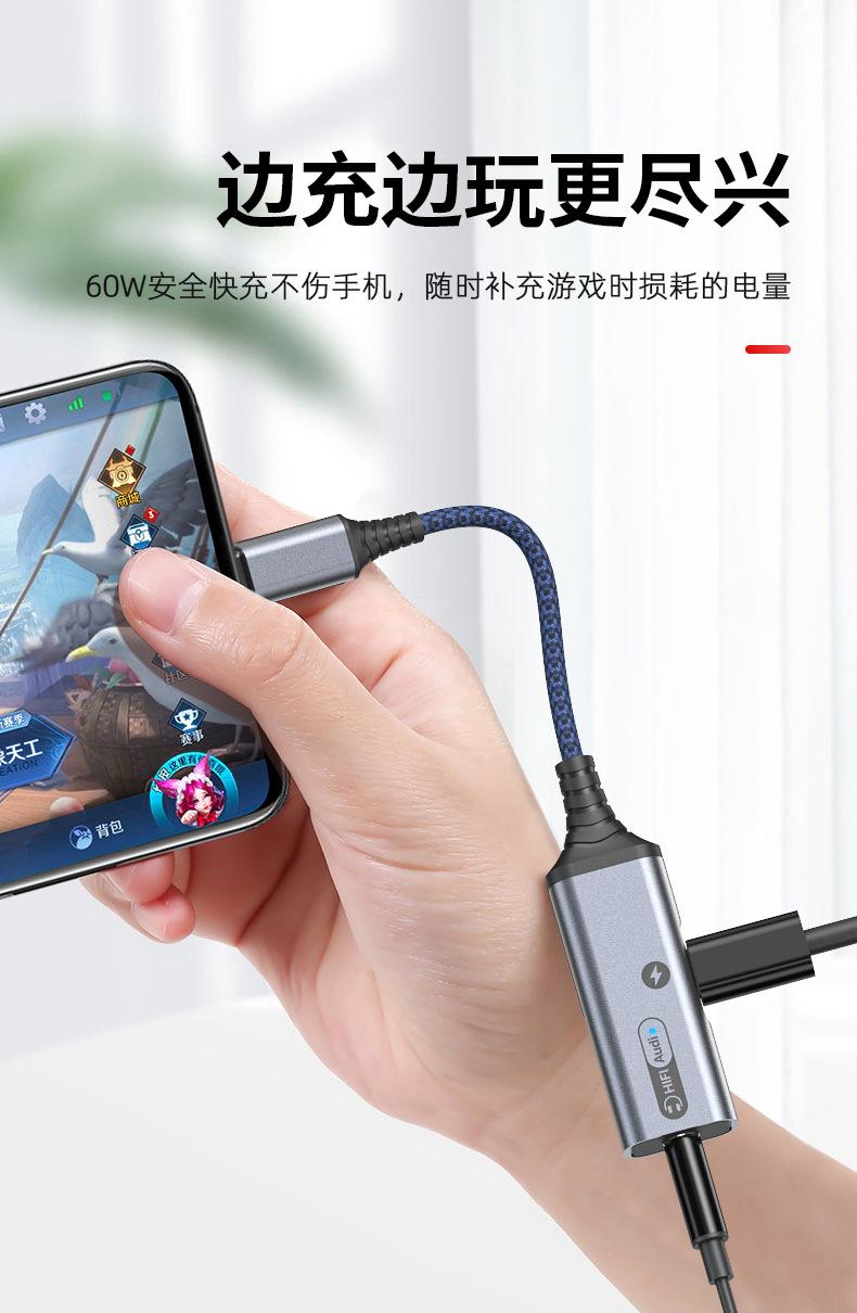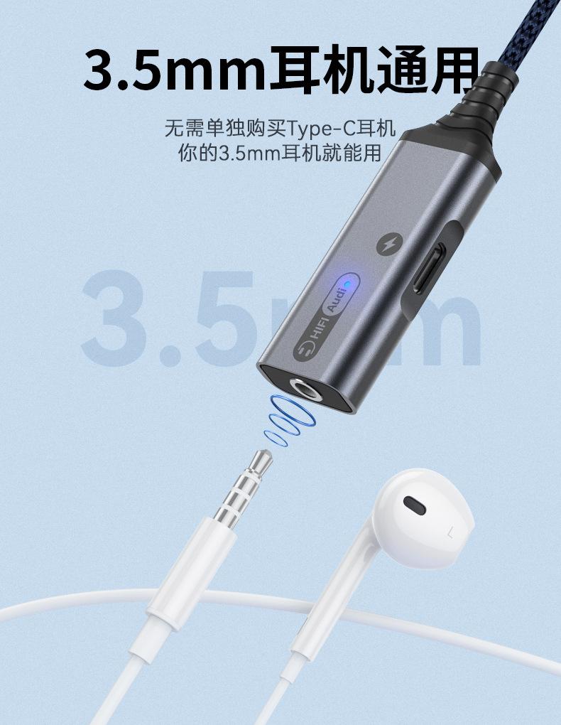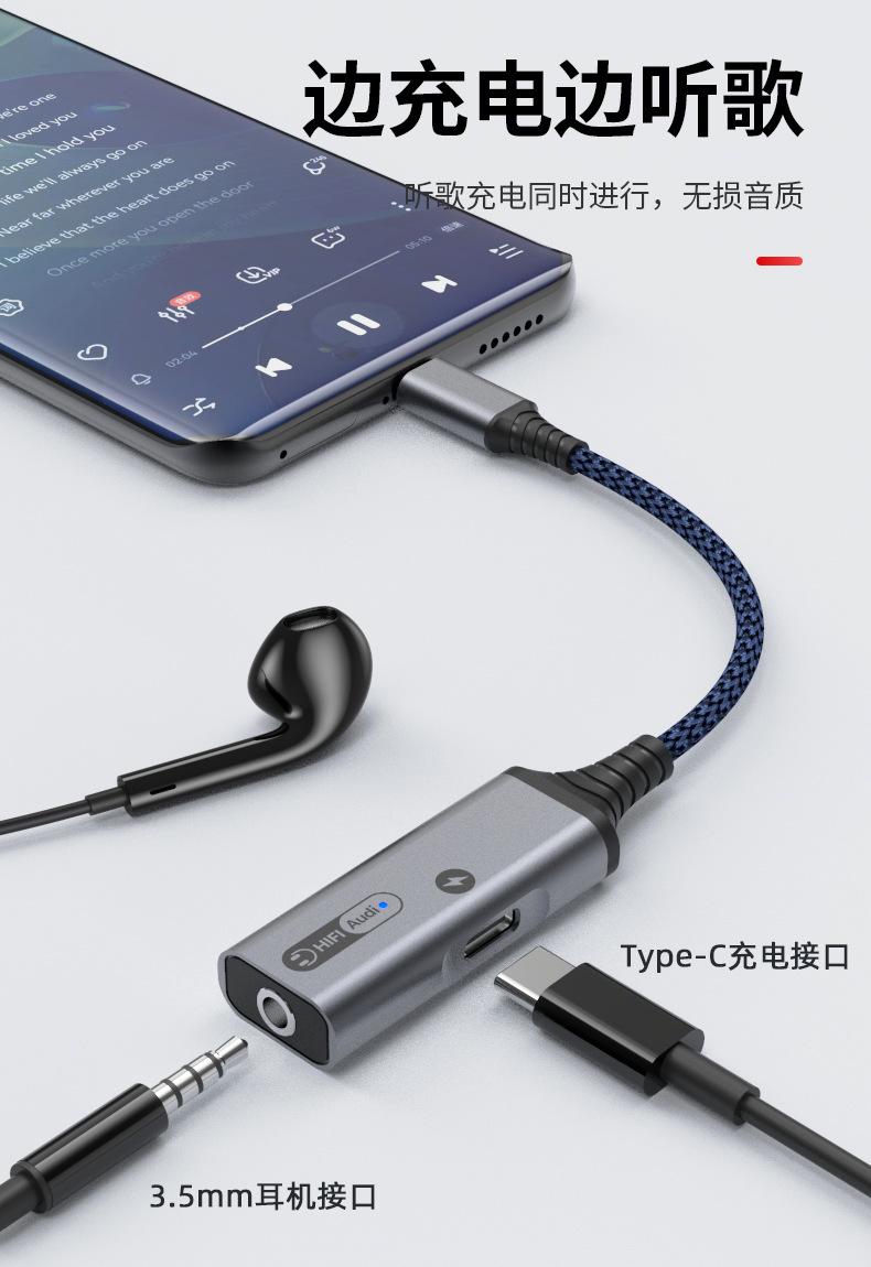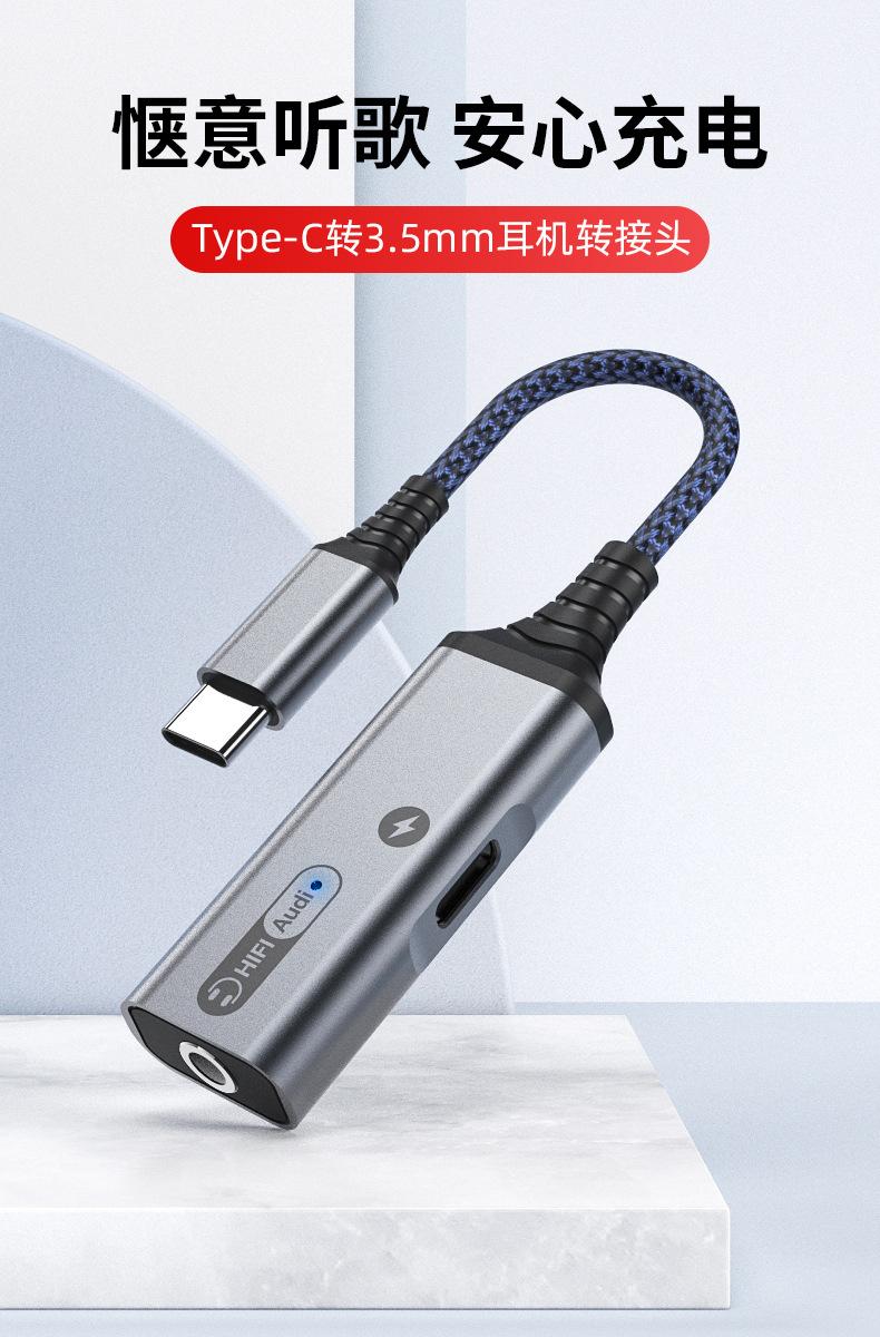 Adaptador de auriculares 2 en 1 tipo C de carga rápida para Samsung y Huawei Audio Converter Live.