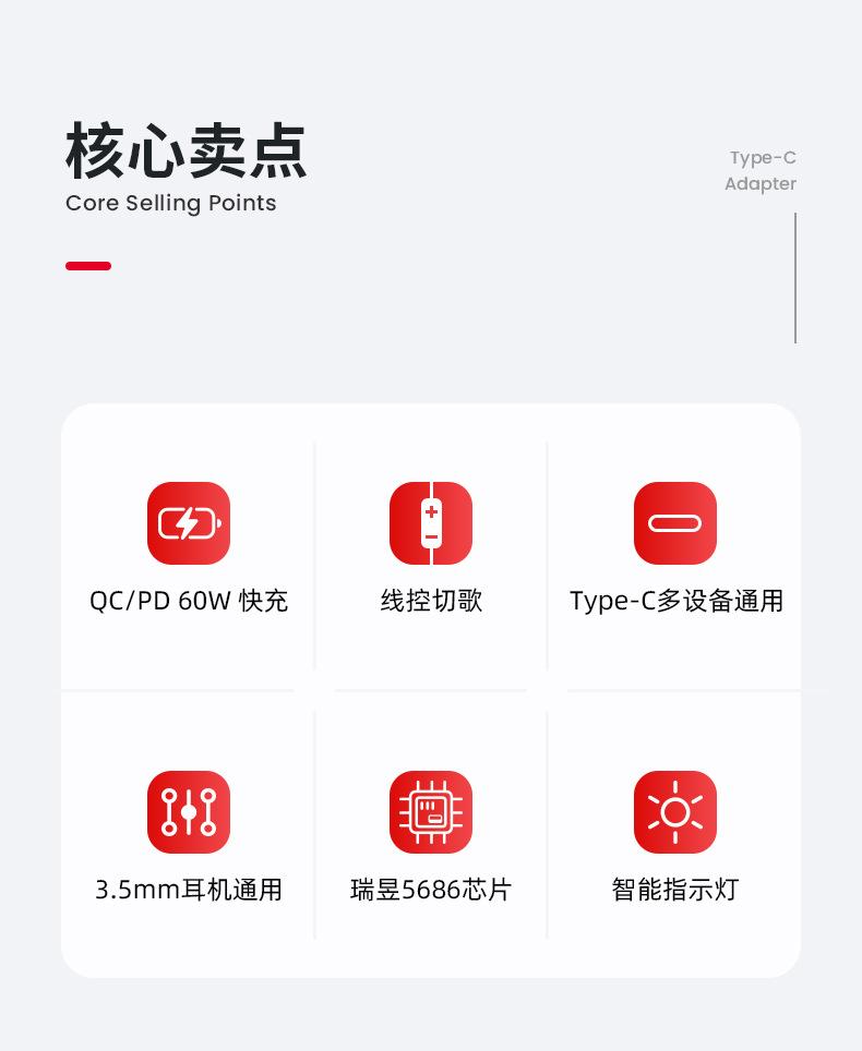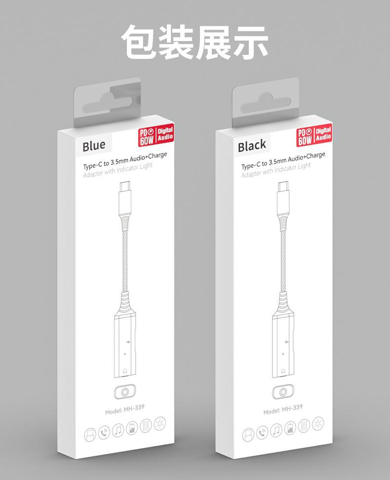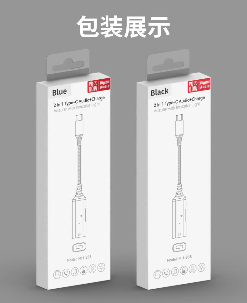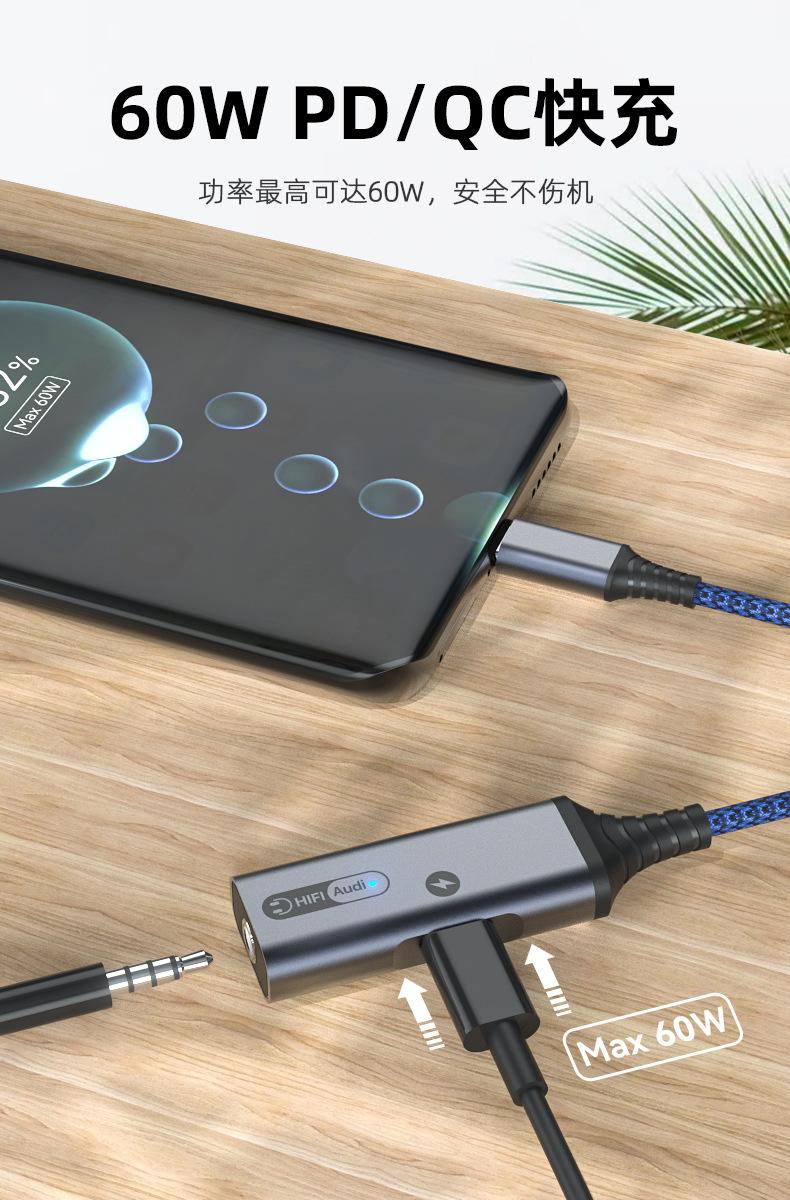 Adaptador de auriculares 2 en 1 tipo C de carga rápida para Samsung y Huawei Audio Converter Live.
