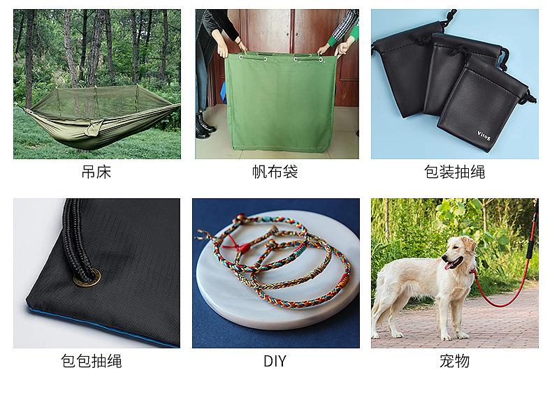 Cuerda trenzada de color disponible, mayorista, para tiendas de campaña, ropa de exterior, bolsas, cuerda de nailon con núcleo.