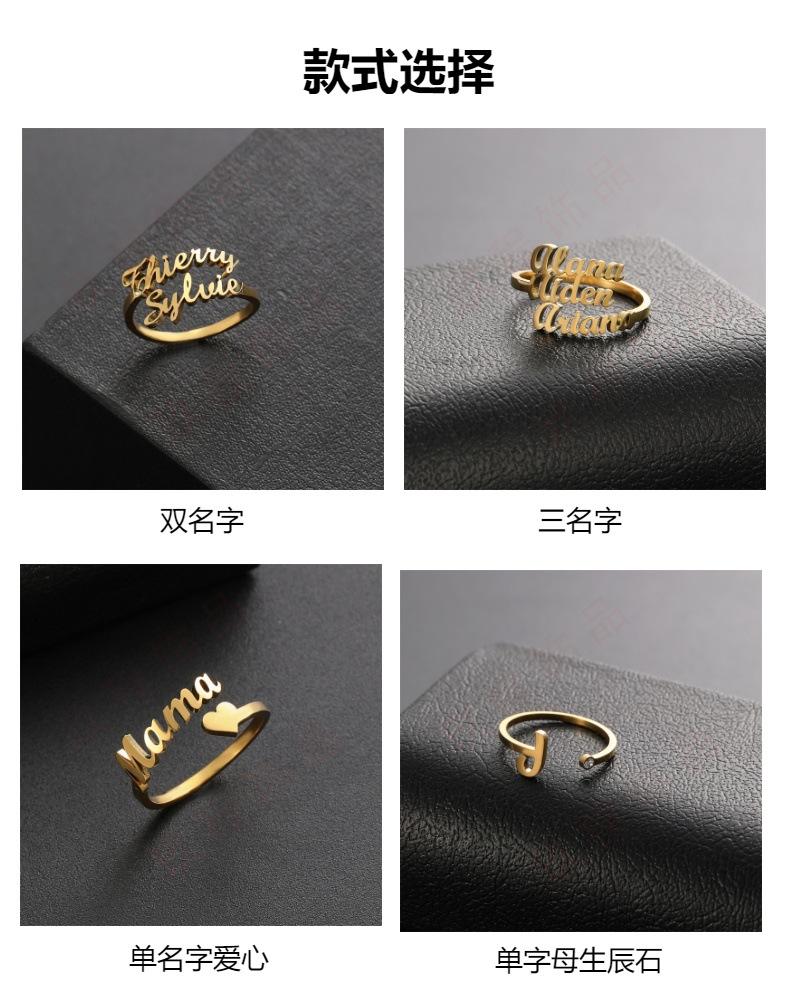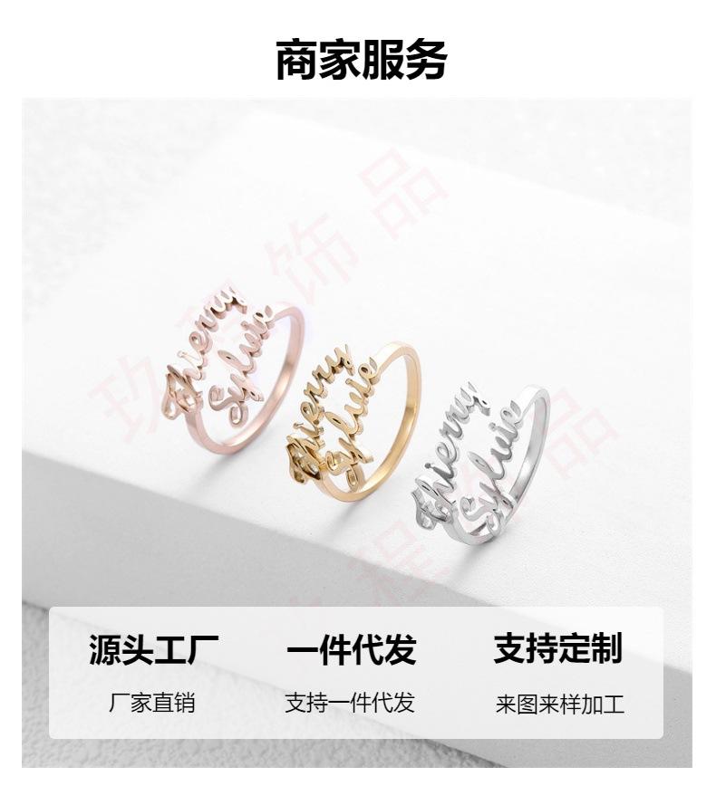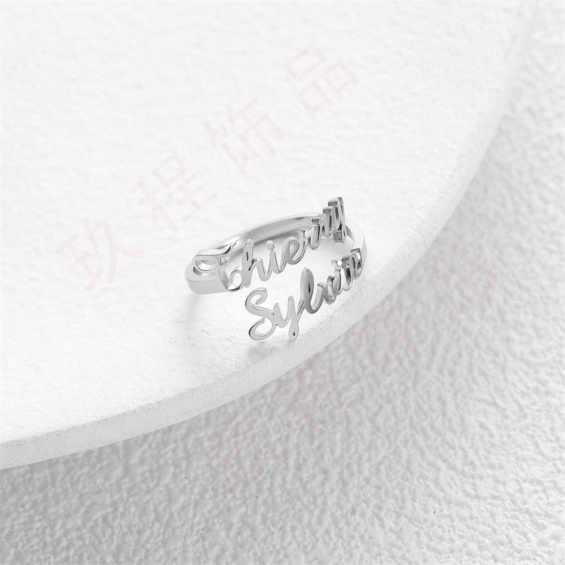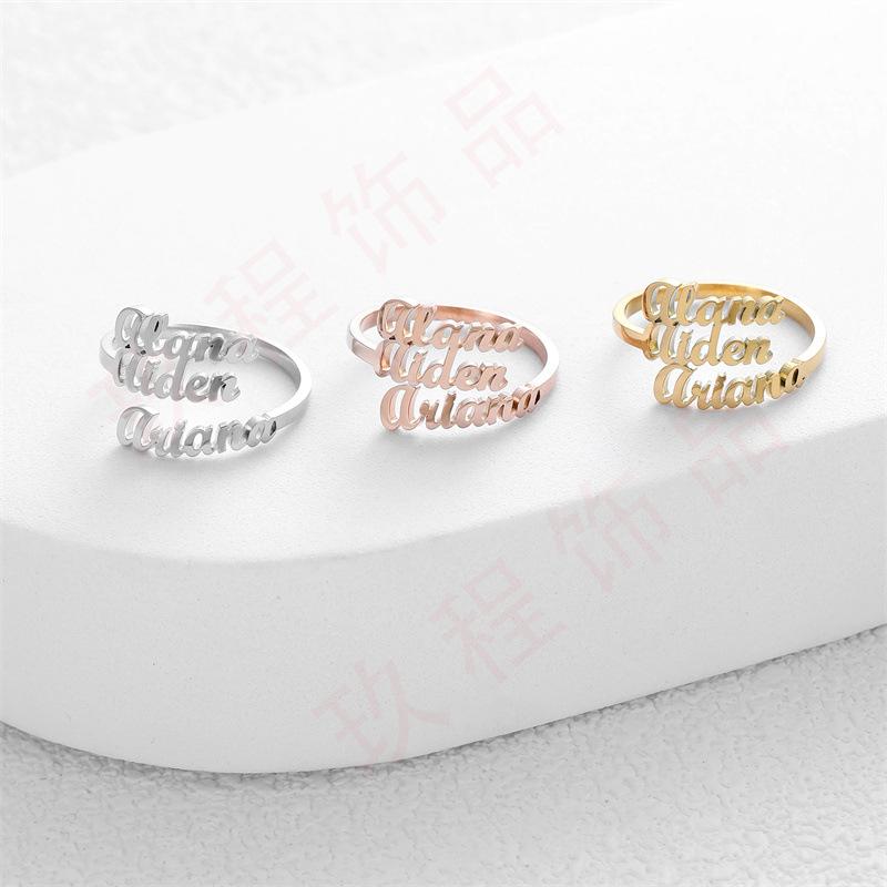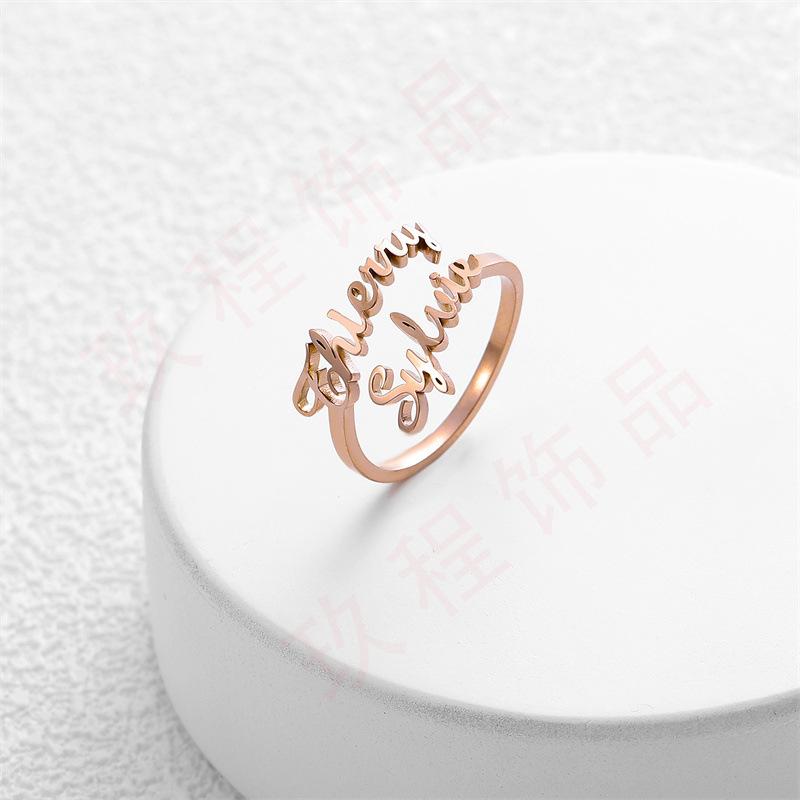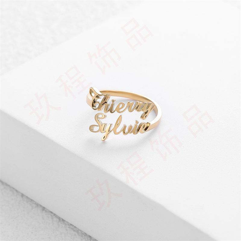 [One Piece Personalizado] Anillo Ajustable de Acero Inoxidable con Letra Inglesa Galvanizado en Oro de 18K Anillo de Pareja con Doble Nombre