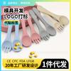 Tenedor y Cuchara de Silicona para Bebé de Grado Alimenticio Transfronterizo Tenedor y Cuchara Pequeños para Bebé Set de Cuchara de Mango Largo para Complemento Alimenticio Infantil