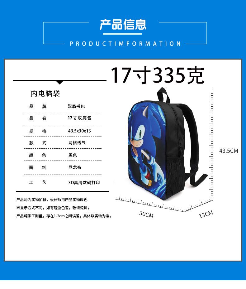 Venta caliente transfronteriza SONIC SONIC Mochila escolar para niños de la escuela primaria Mochila de dibujos animados al por mayor