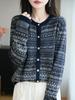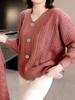 Cárdigan de Punto de Manga Larga para Mujer con Cuello Redondo y Parche de Punto para Otoño 2025, Estilo Casual Holgado