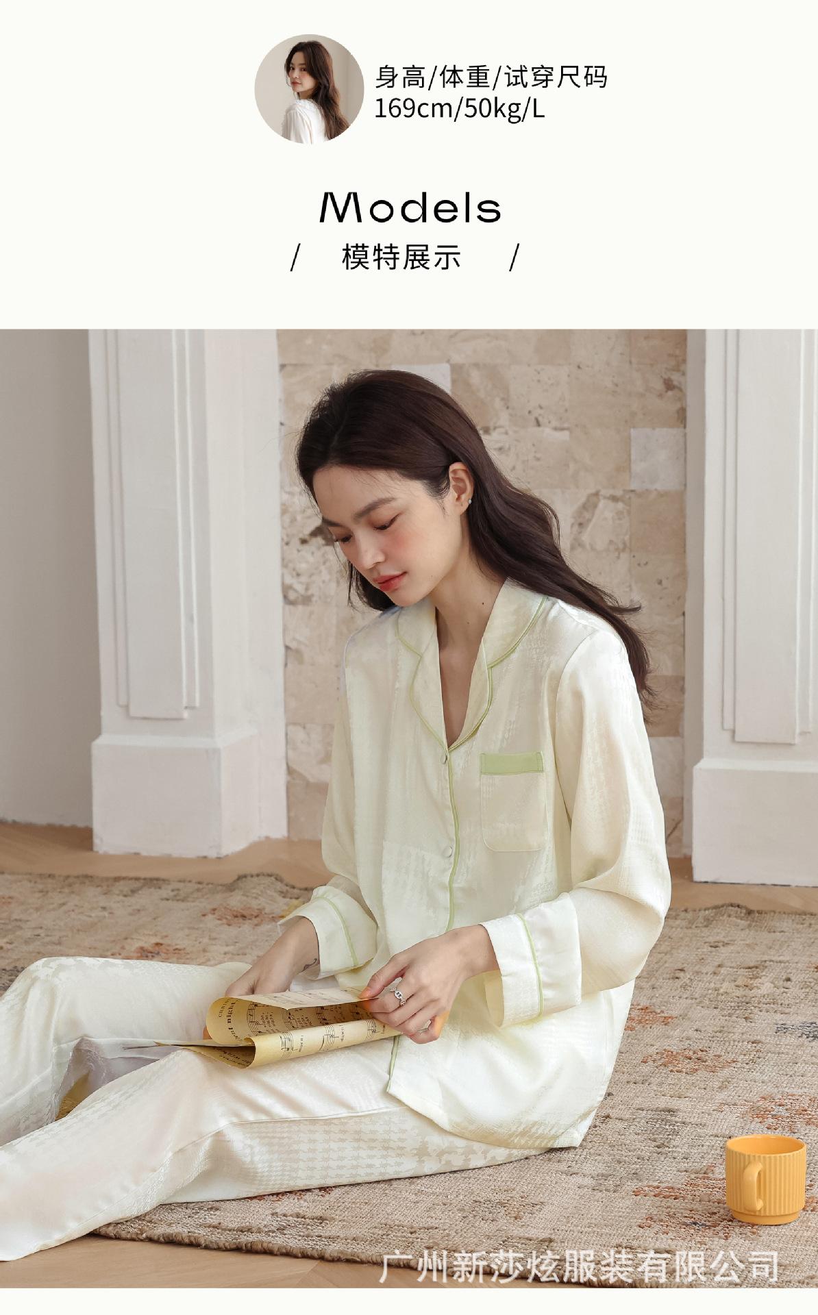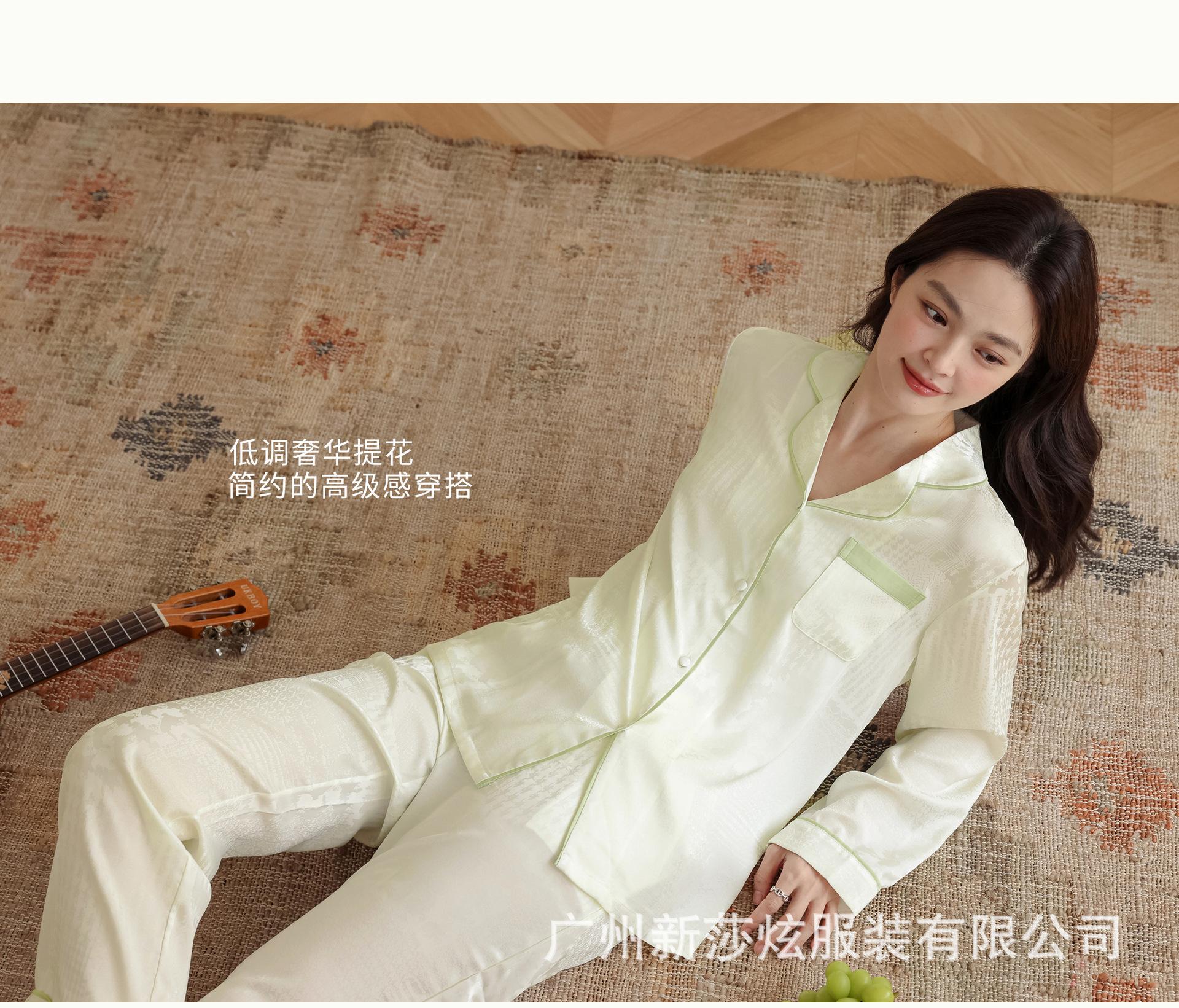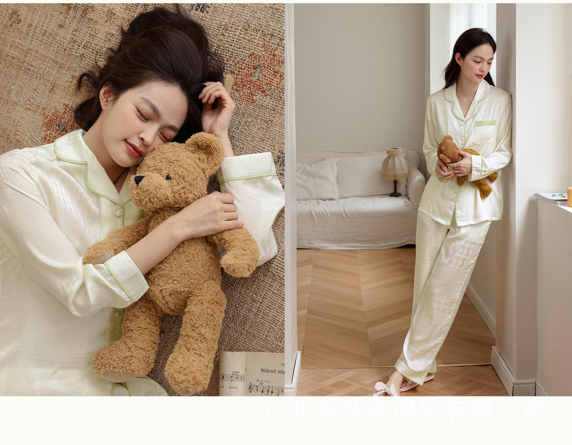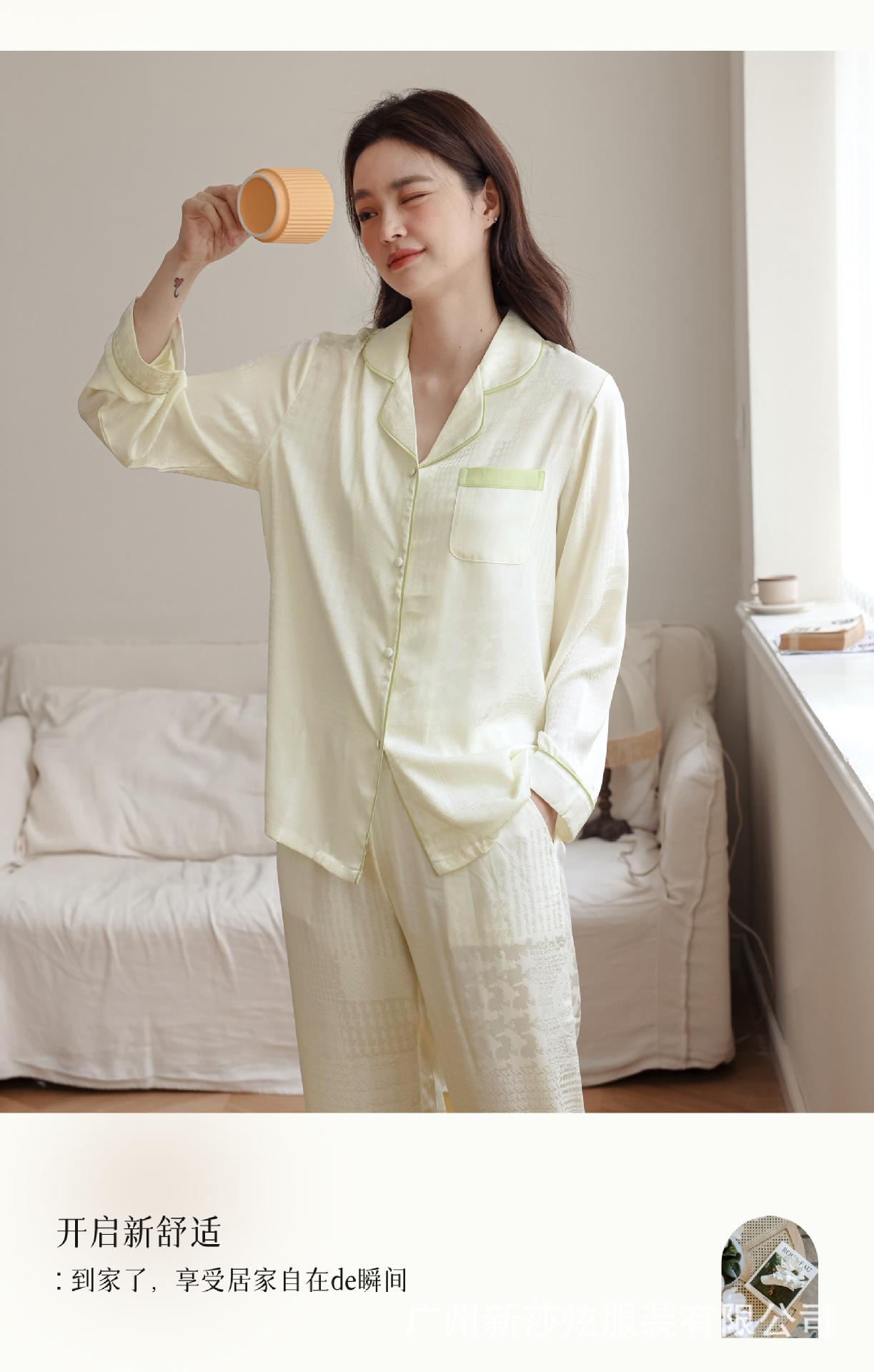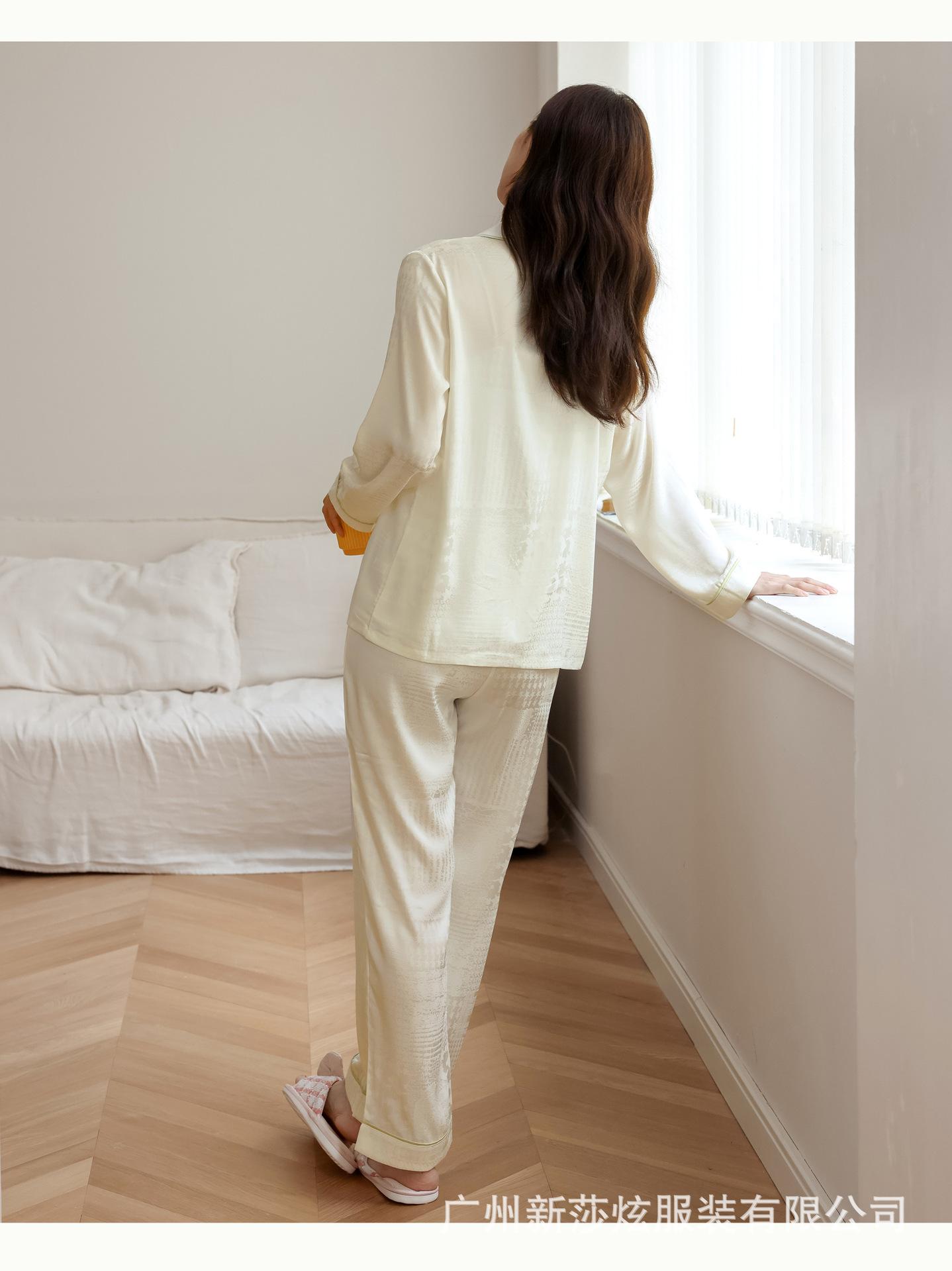 Pijamas Personalizados para Mujer Primavera y Otoño Seda de Hielo Jacquard de Alta Gama Manga Larga Pantalón Conjunto de Dos Piezas Ropa de Casa Casual de Verano para Mujer