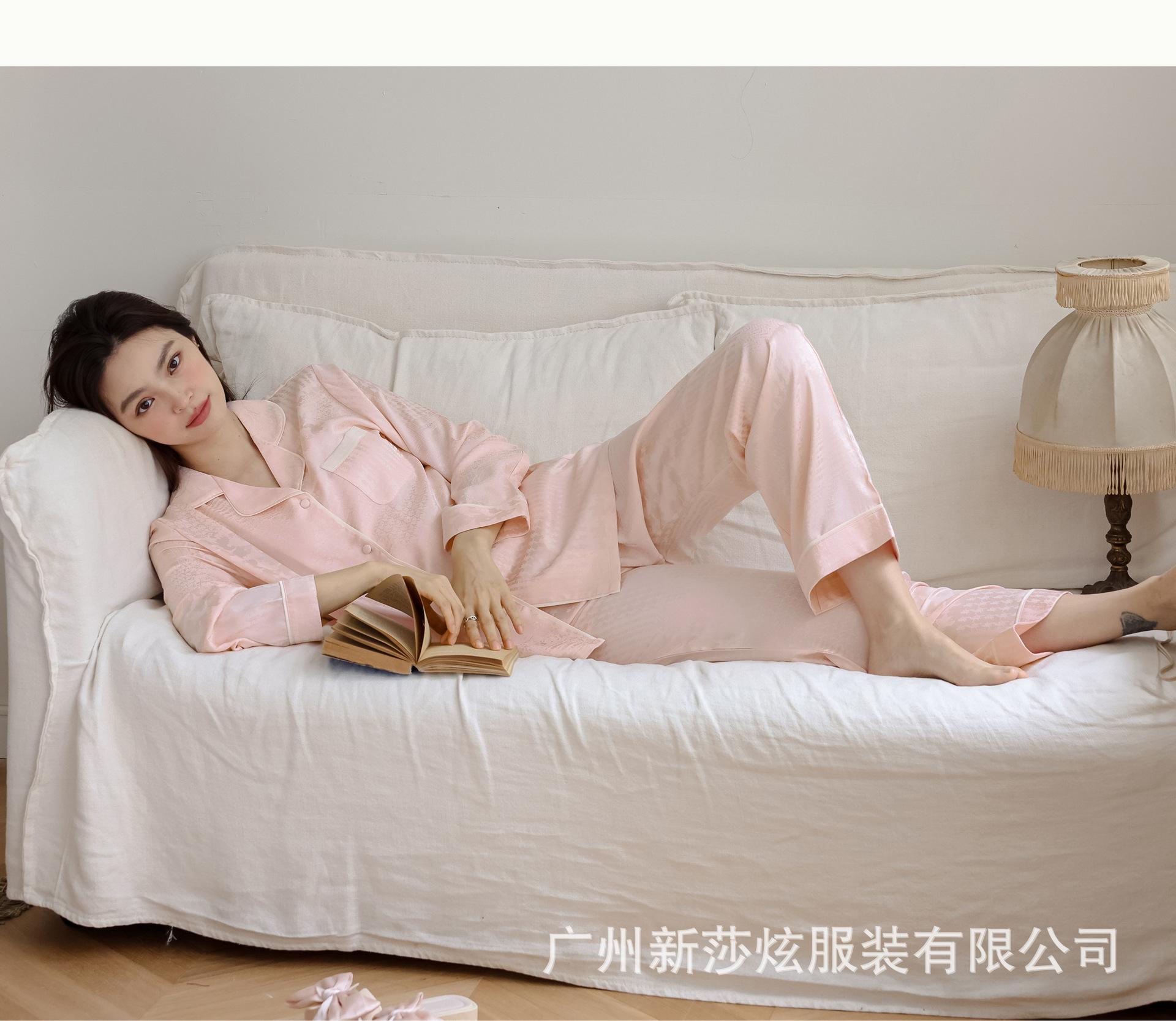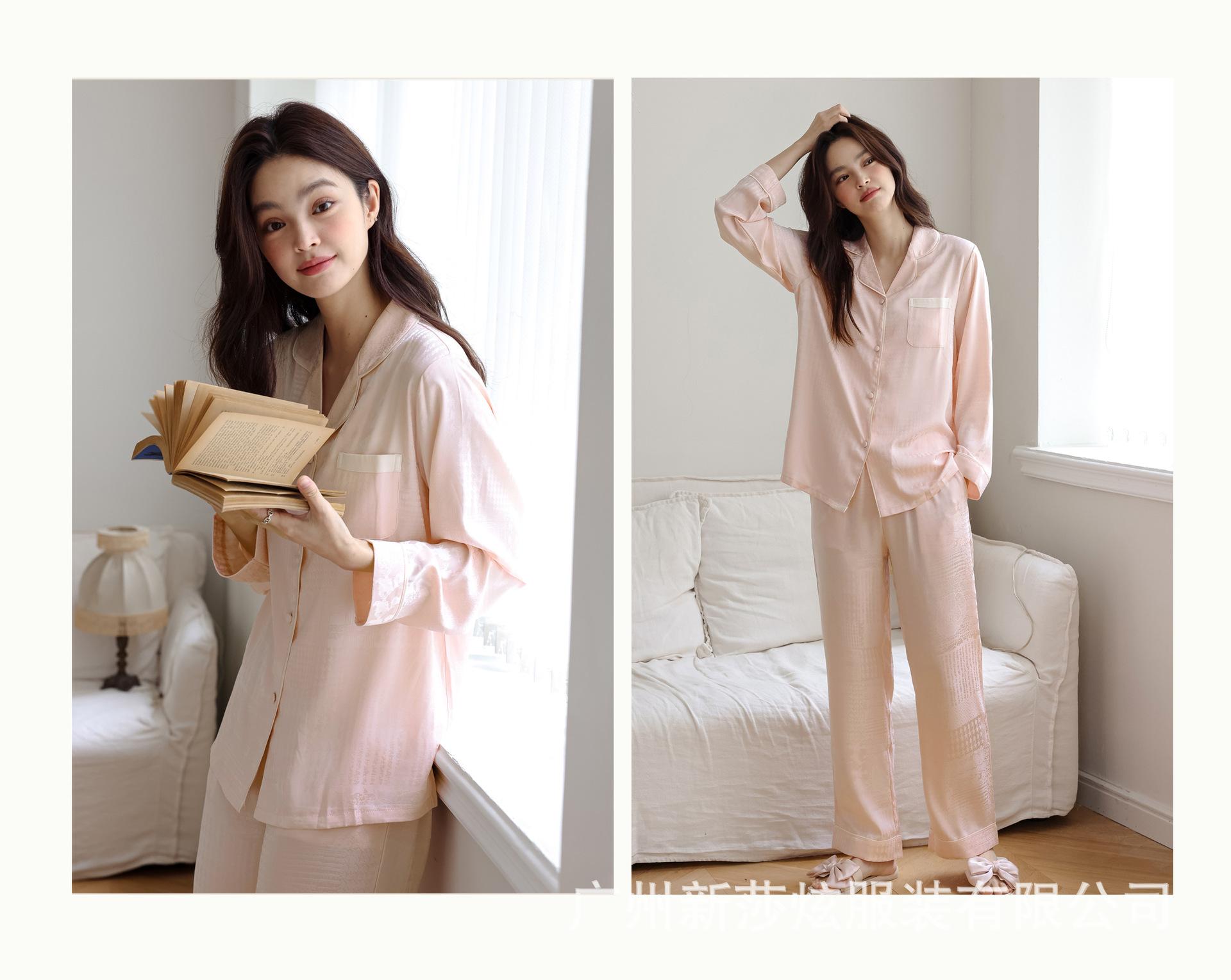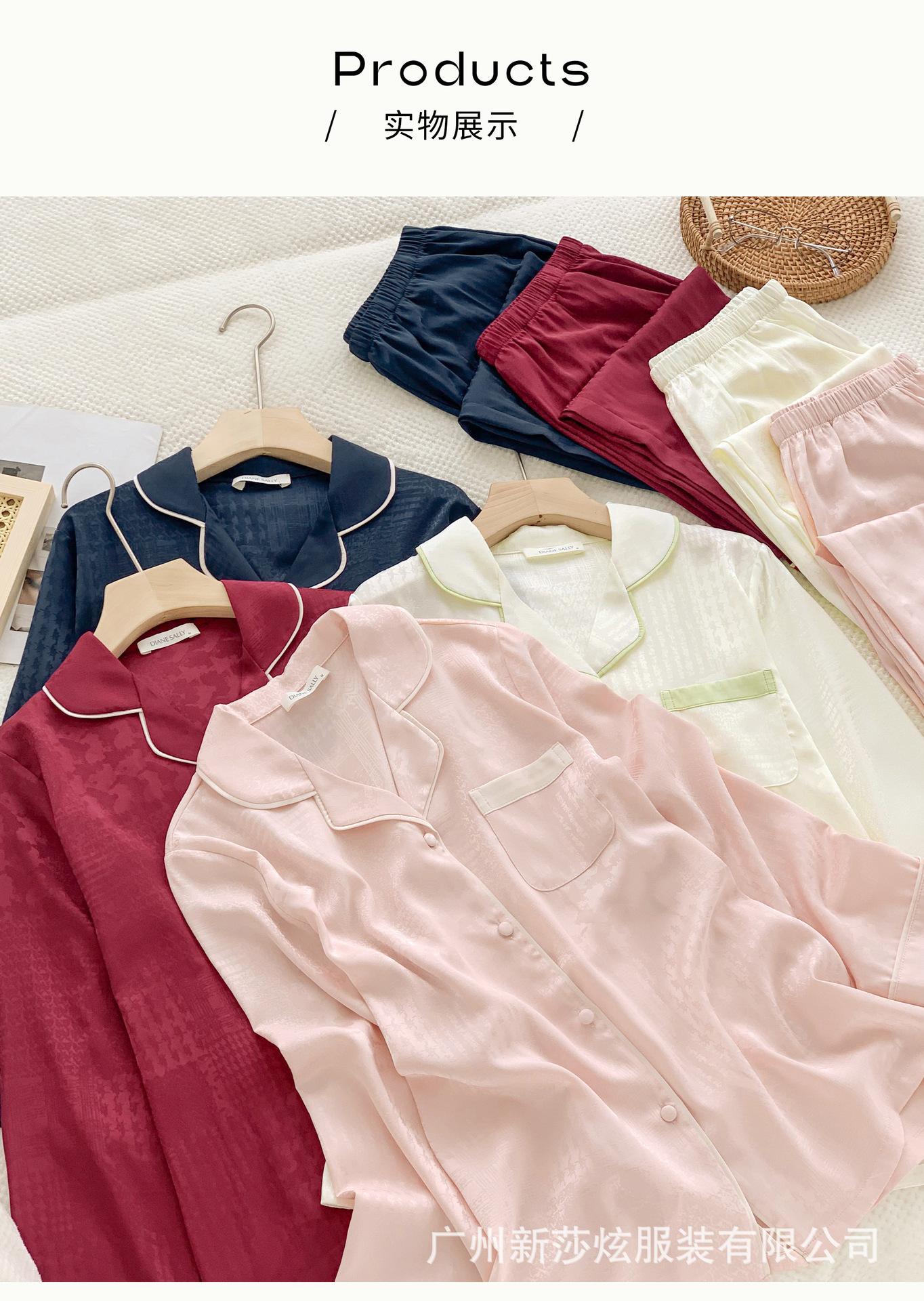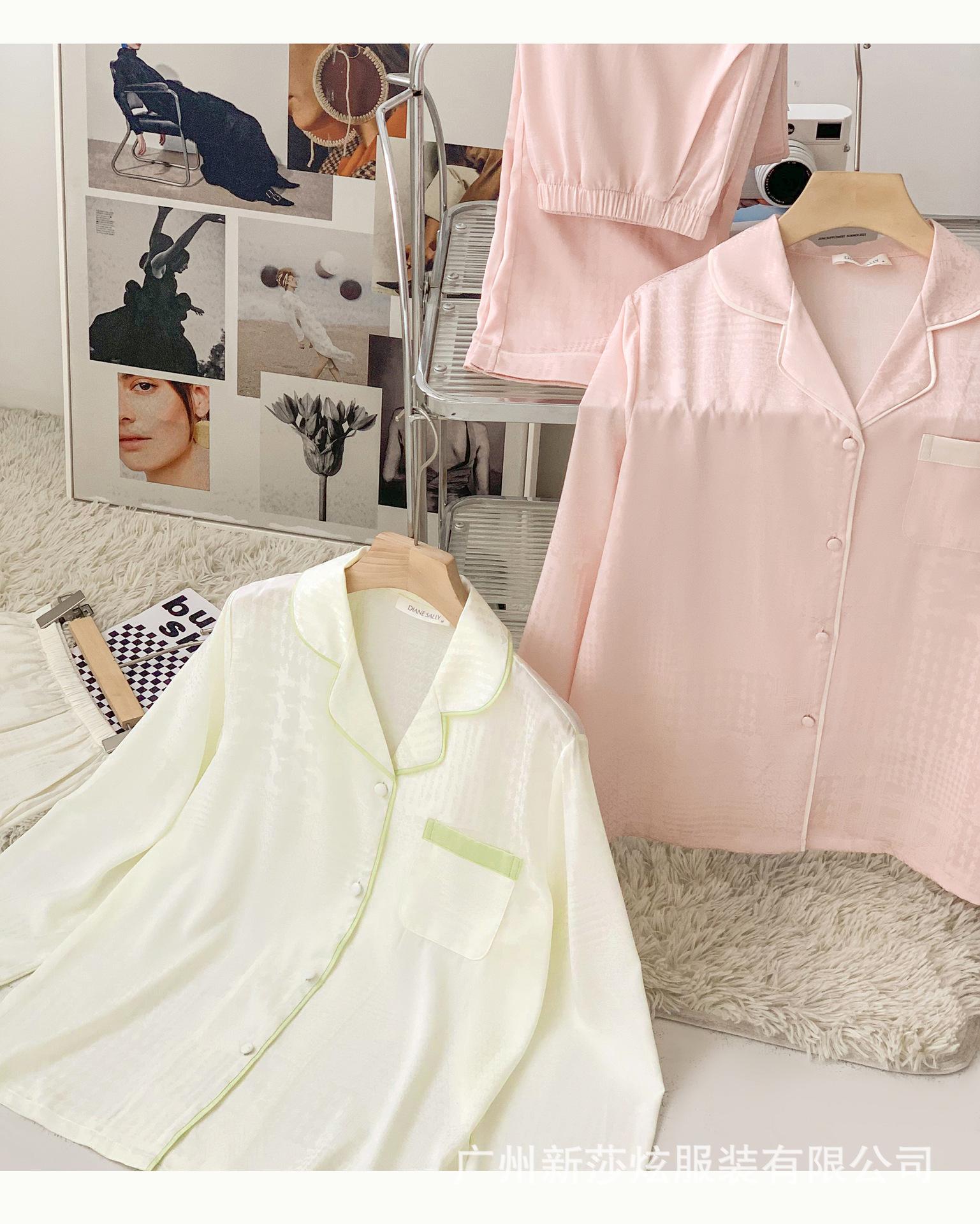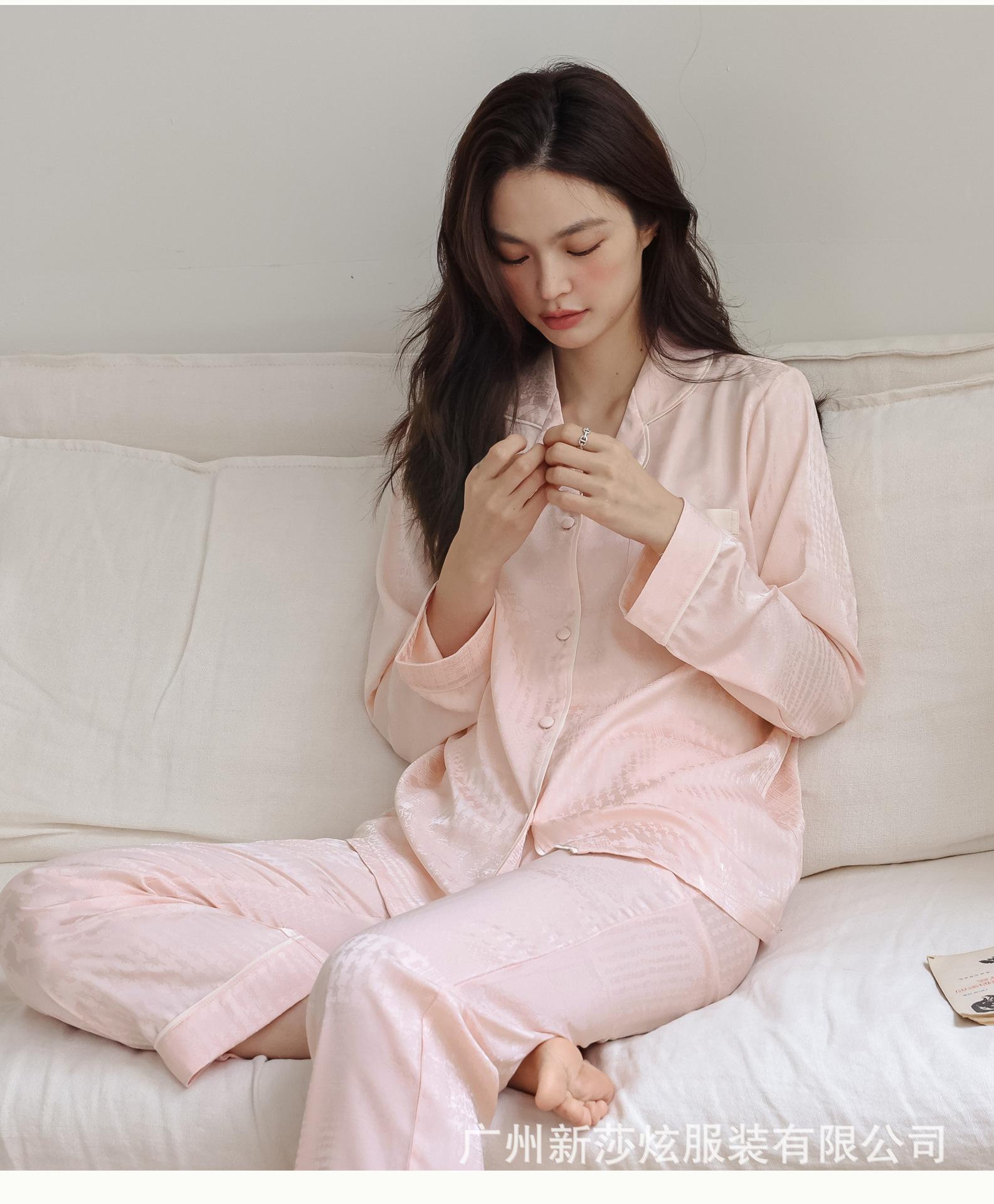 Pijamas Personalizados para Mujer Primavera y Otoño Seda de Hielo Jacquard de Alta Gama Manga Larga Pantalón Conjunto de Dos Piezas Ropa de Casa Casual de Verano para Mujer
