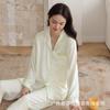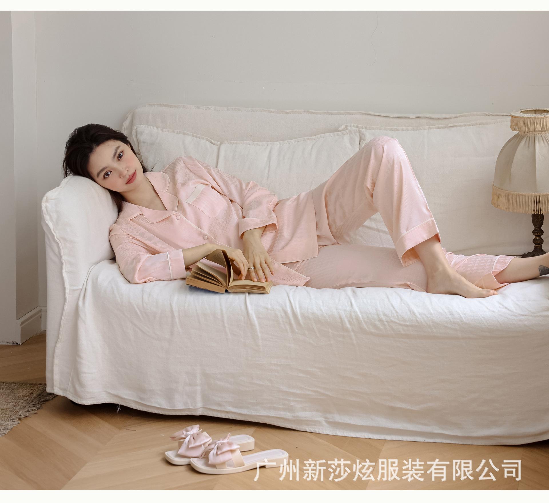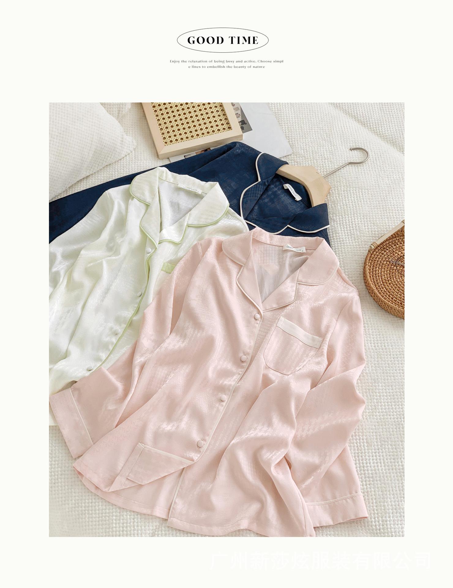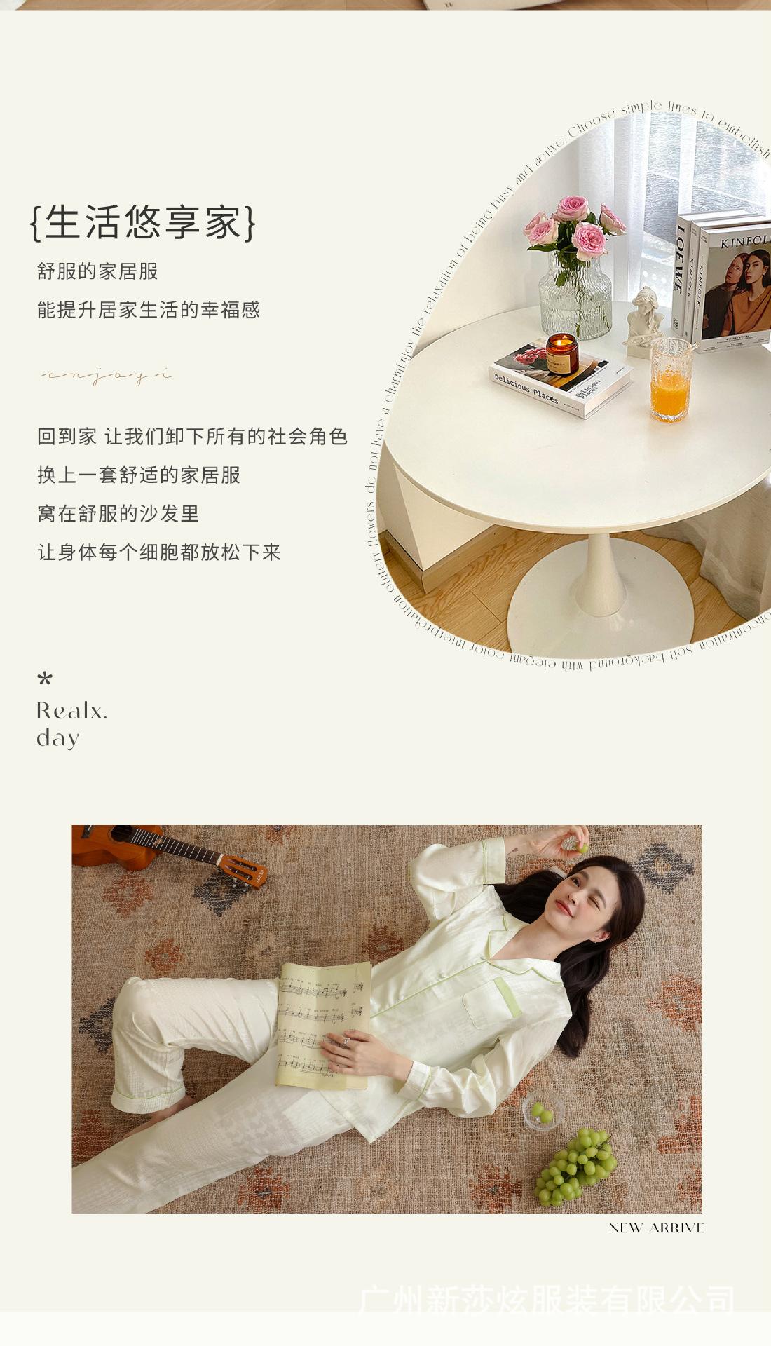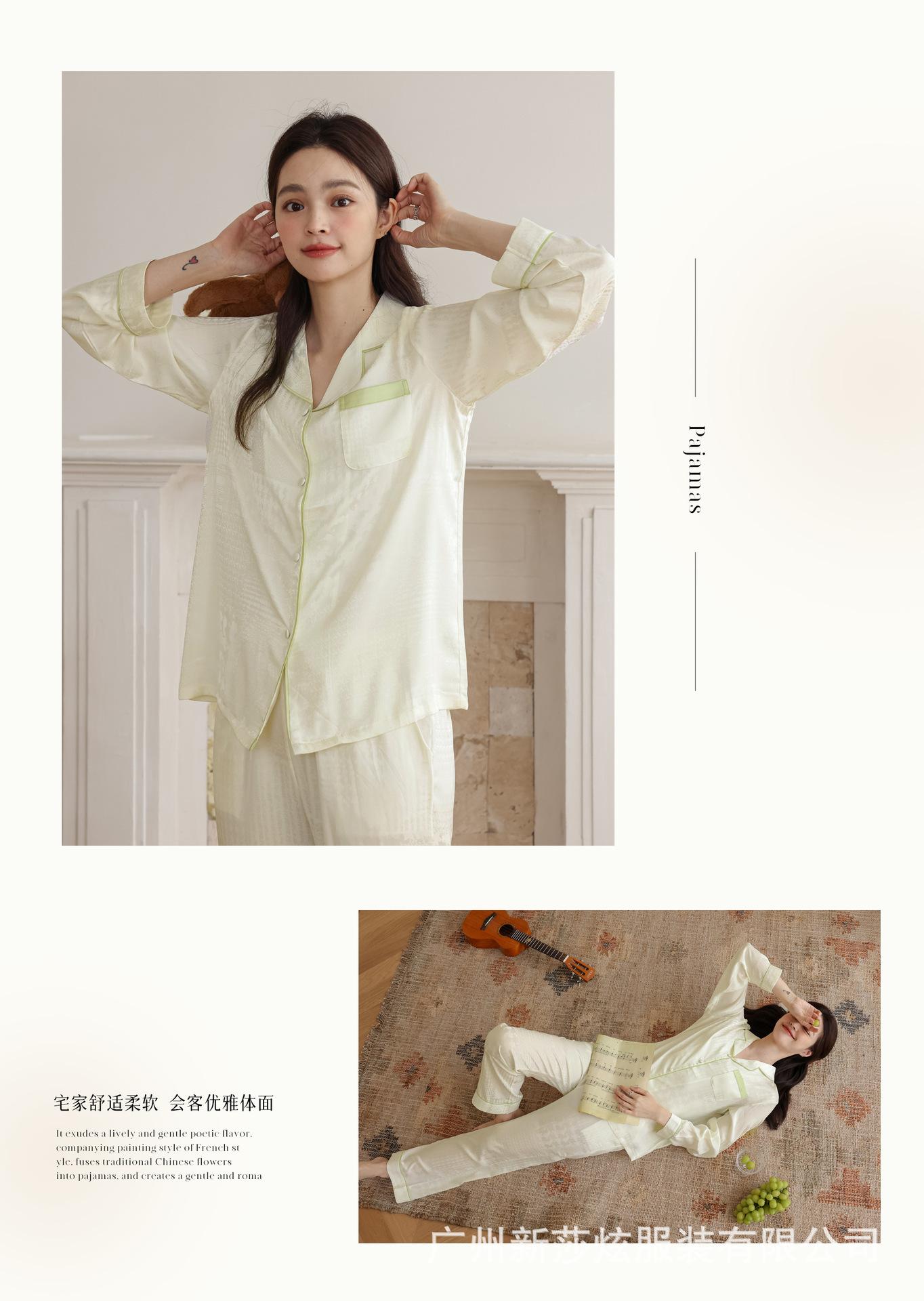Pijamas Personalizados para Mujer Primavera y Otoño Seda de Hielo Jacquard de Alta Gama Manga Larga Pantalón Conjunto de Dos Piezas Ropa de Casa Casual de Verano para Mujer