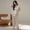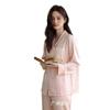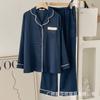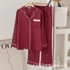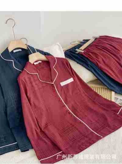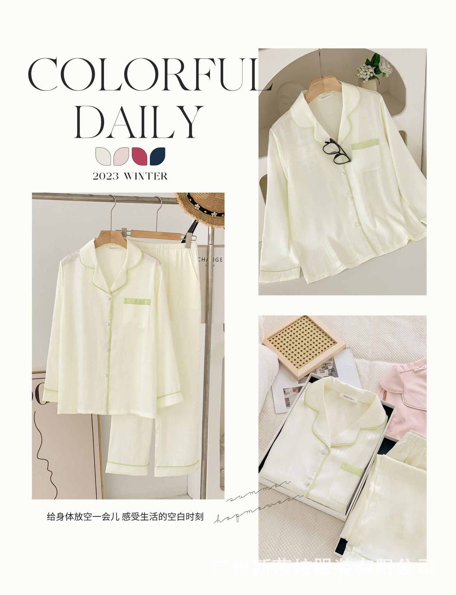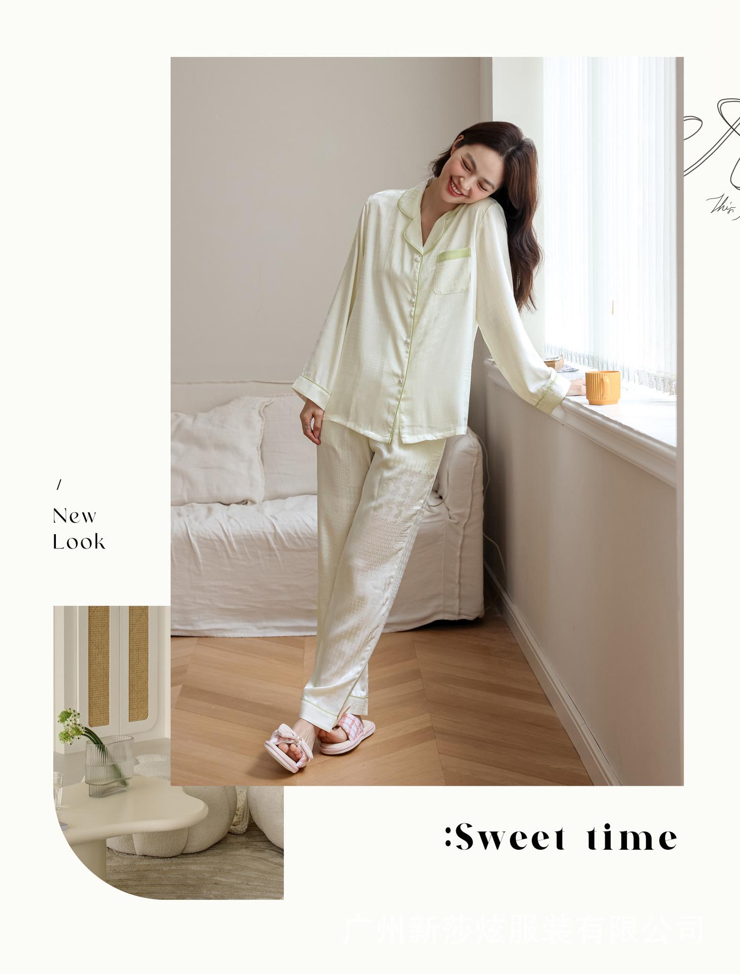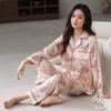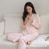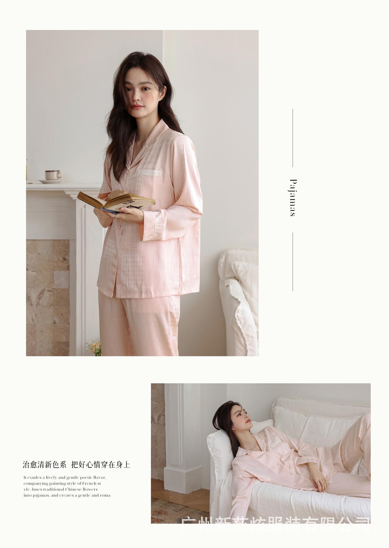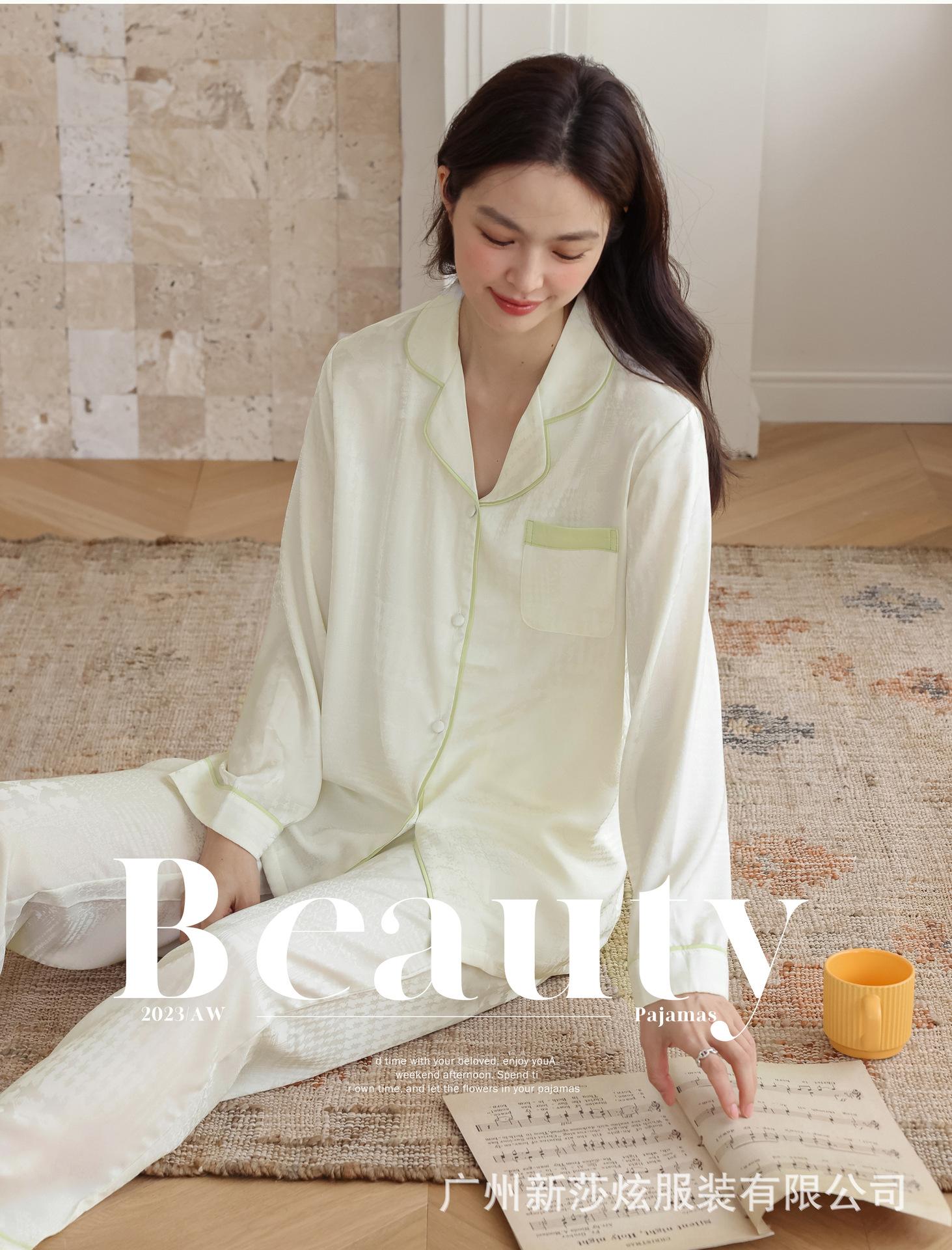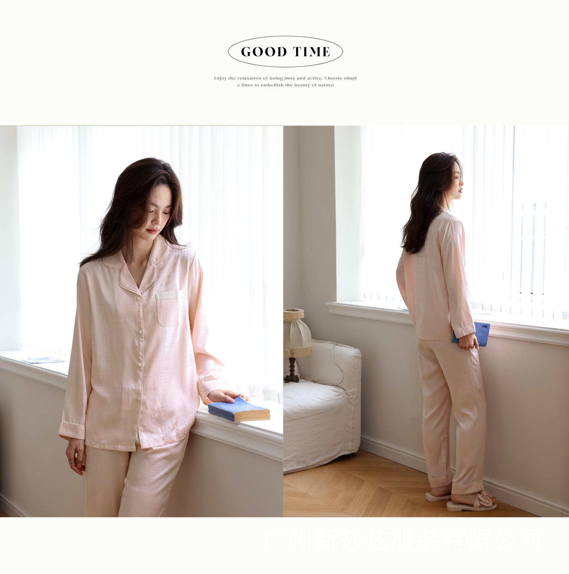 Pijamas Personalizados para Mujer Primavera y Otoño Seda de Hielo Jacquard de Alta Gama Manga Larga Pantalón Conjunto de Dos Piezas Ropa de Casa Casual de Verano para Mujer