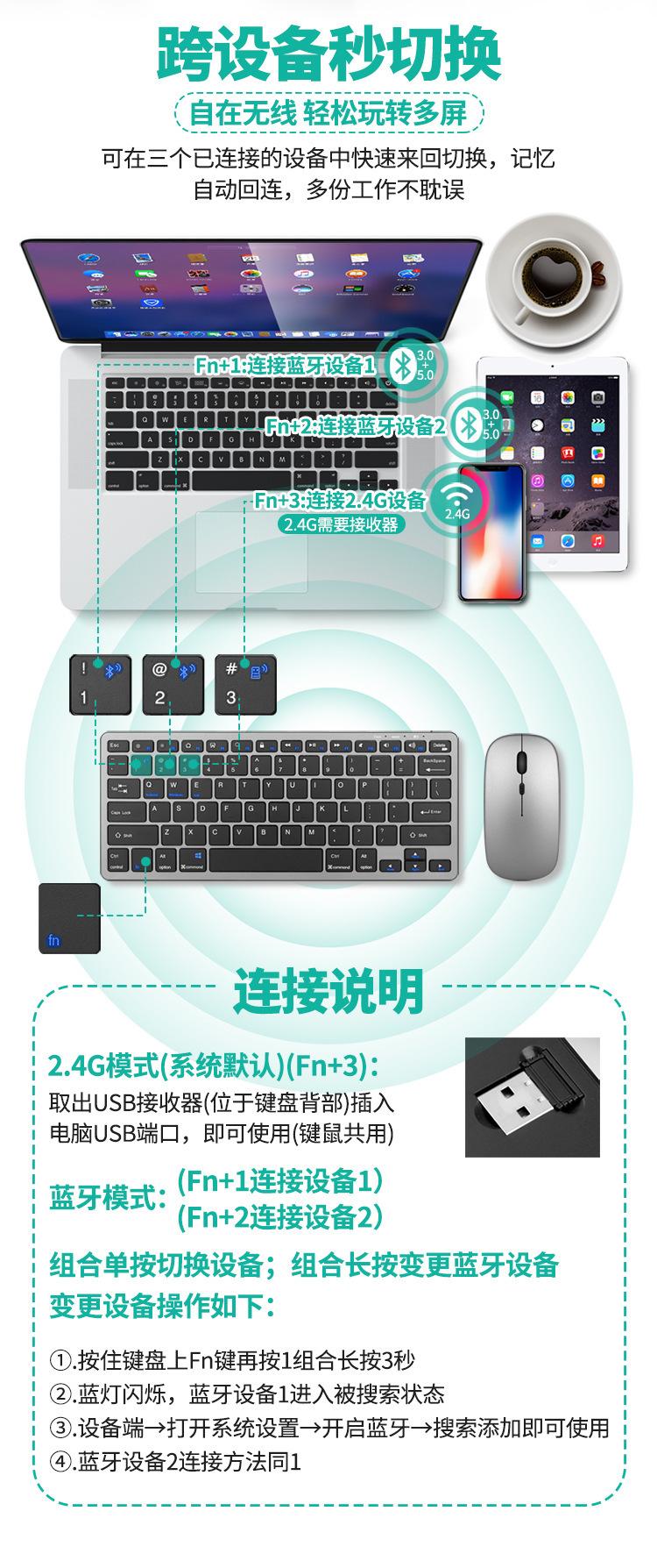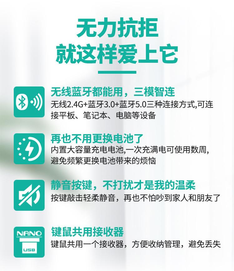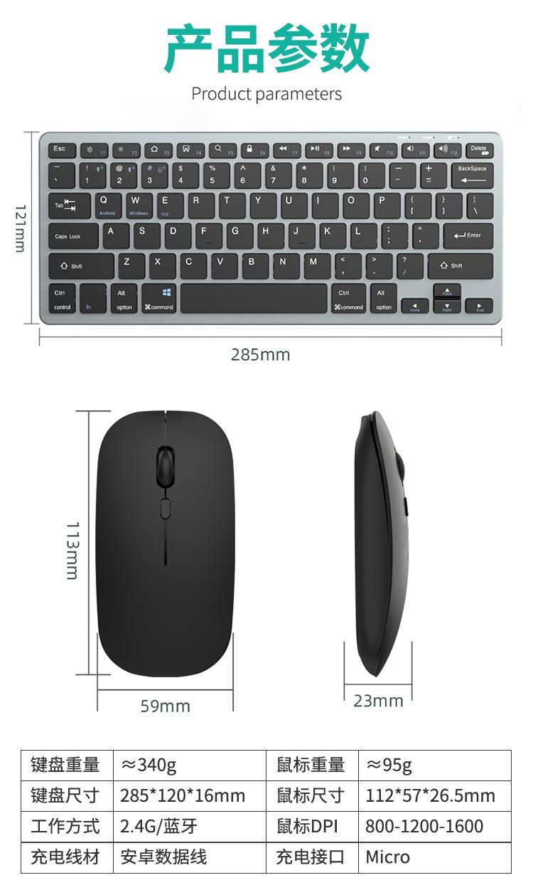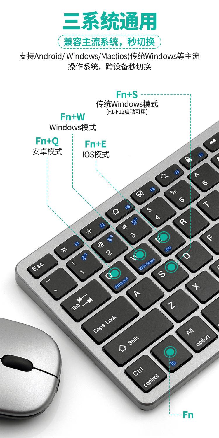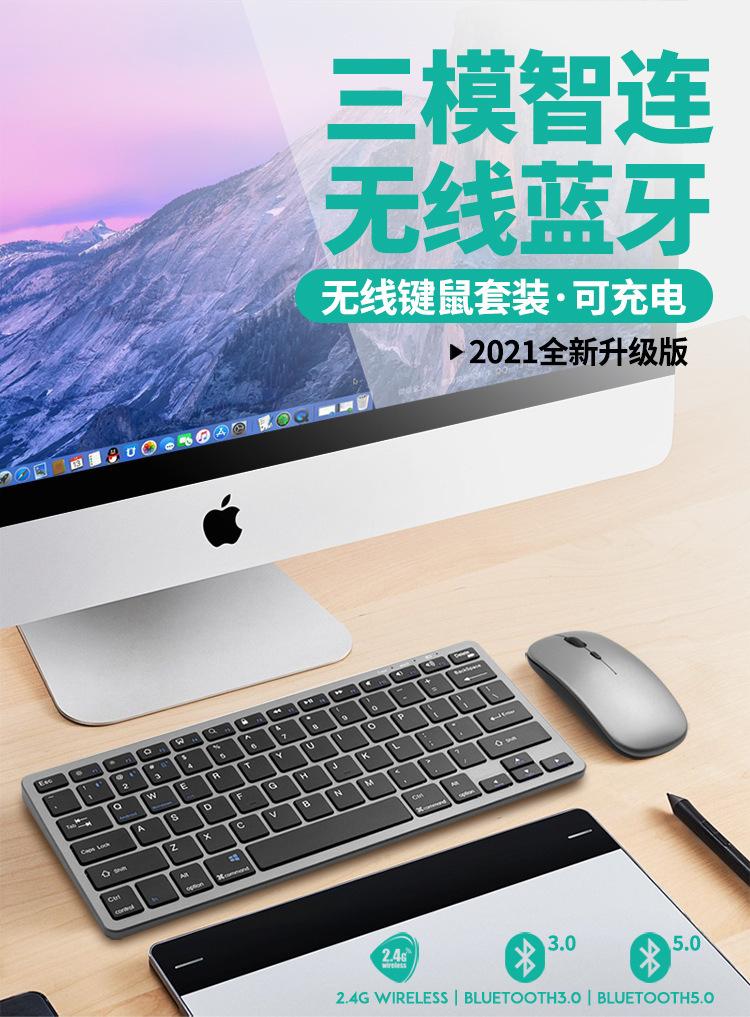 Venta al por Mayor de Fábrica Versión Ultrafina Recargable Bluetooth + 2.4g Inalámbrico Juego de Teclado y Ratón de Tres Modos Teclado y Ratón para Oficina de Negocios