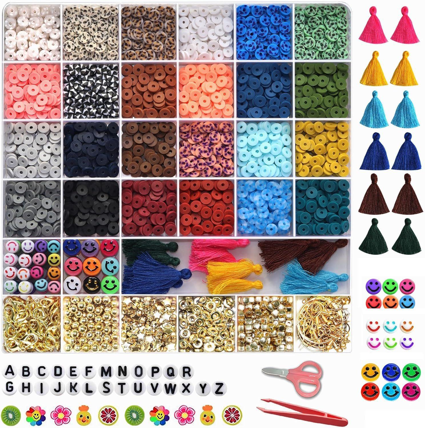 6000 Piezas Cuentas de Arcilla Kit para Hacer Pulseras de Cerámica Blanda Cuentas Espaciadoras Cuentas de Arcilla Polimérica sin Epoxi Yiwu