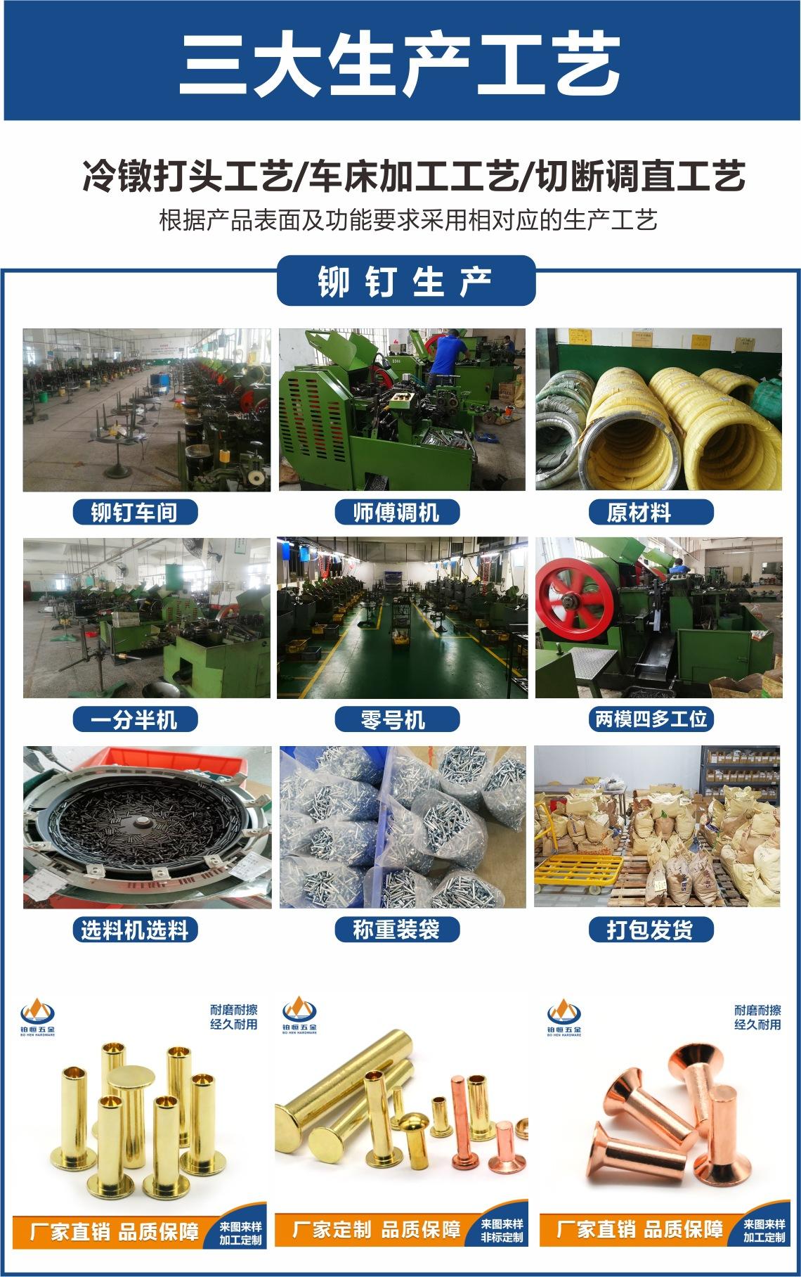 Fabricantes de remaches de latón macizo semihuecos personalizados, cabeza redonda plana, cabeza avellanada plana, remache de cobre con orificio de cola M1M2M3M4