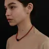 Collar de Cuentas de Color Contrastante Rojo y Negro, Lujo Ligero, Nicho, Gama Alta, Cadena Sencilla para Clavícula, Estilo Chino Y2K, Dulce y Fresco, Versátil para Mujer