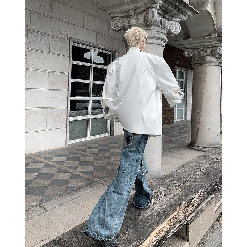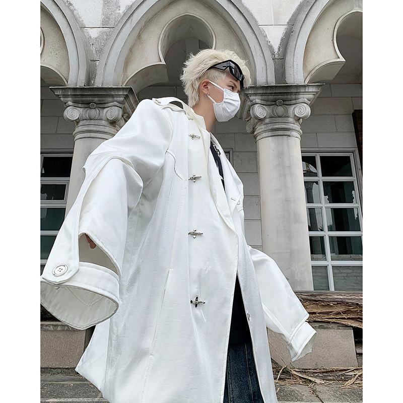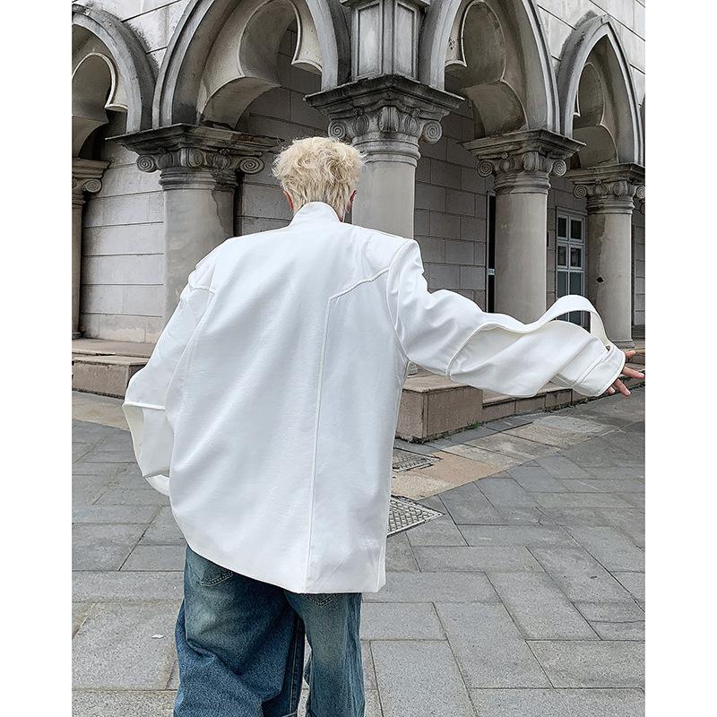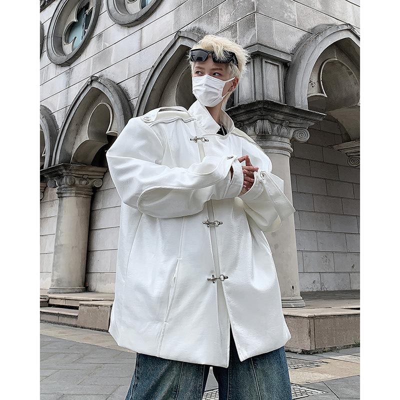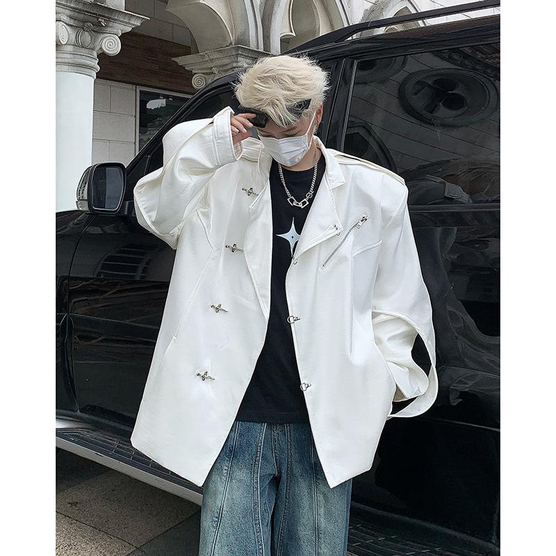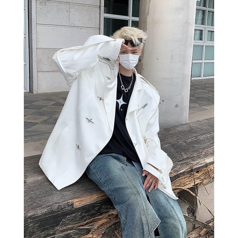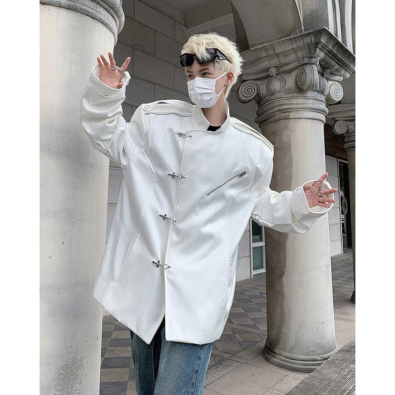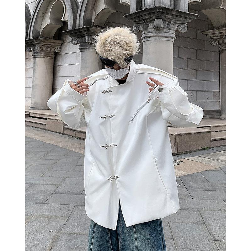 Nuevo abrigo de hombreras blancas con hebilla metálica deconstruida estilo chino, marca de moda, callejero europeo y americano, vintage, traje chaqueta americano