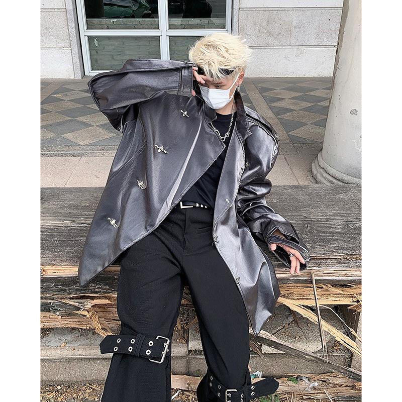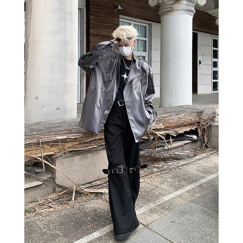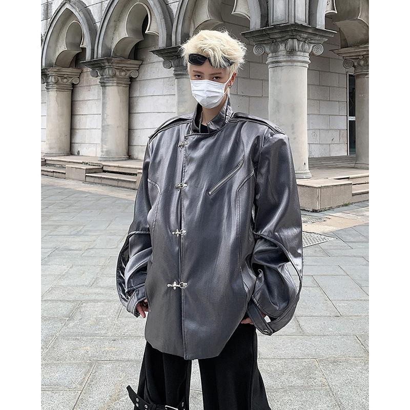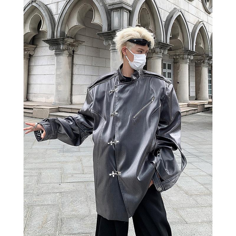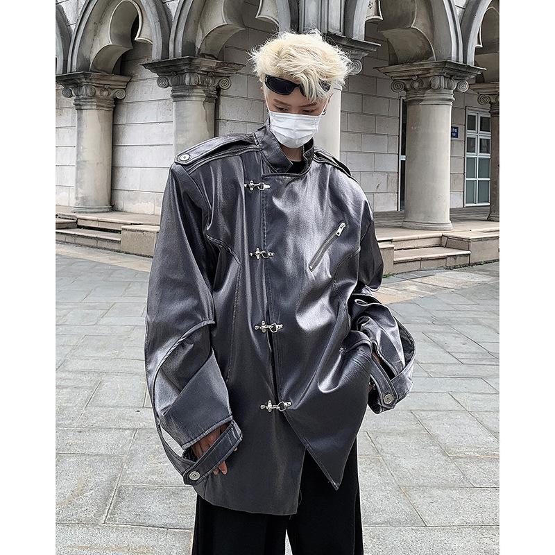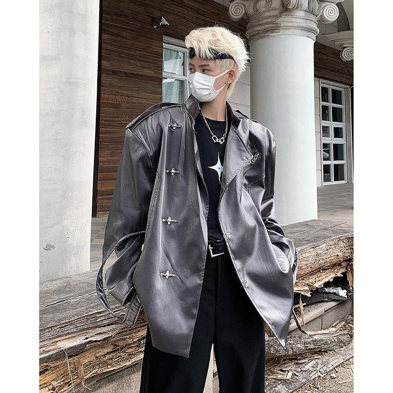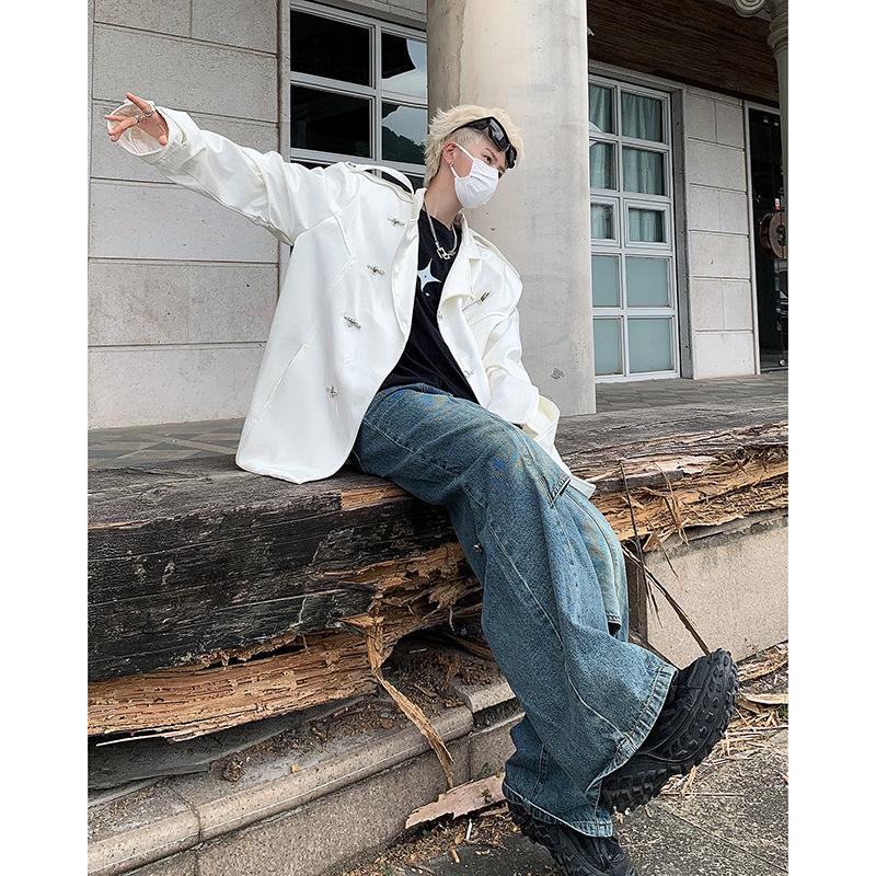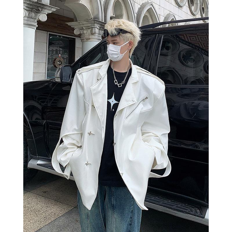 Nuevo abrigo de hombreras blancas con hebilla metálica deconstruida estilo chino, marca de moda, callejero europeo y americano, vintage, traje chaqueta americano