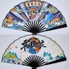 Abanico de seda con publicidad negra impresa, estilo chino, de papel y seda, de bambú, plegable, estilo antiguo, personalizado
