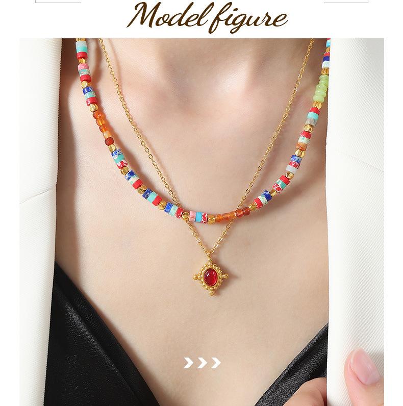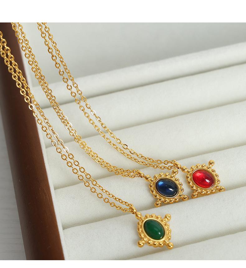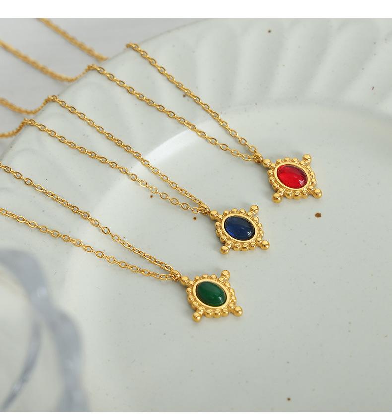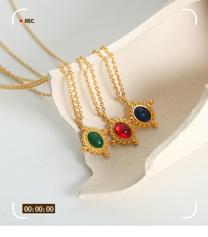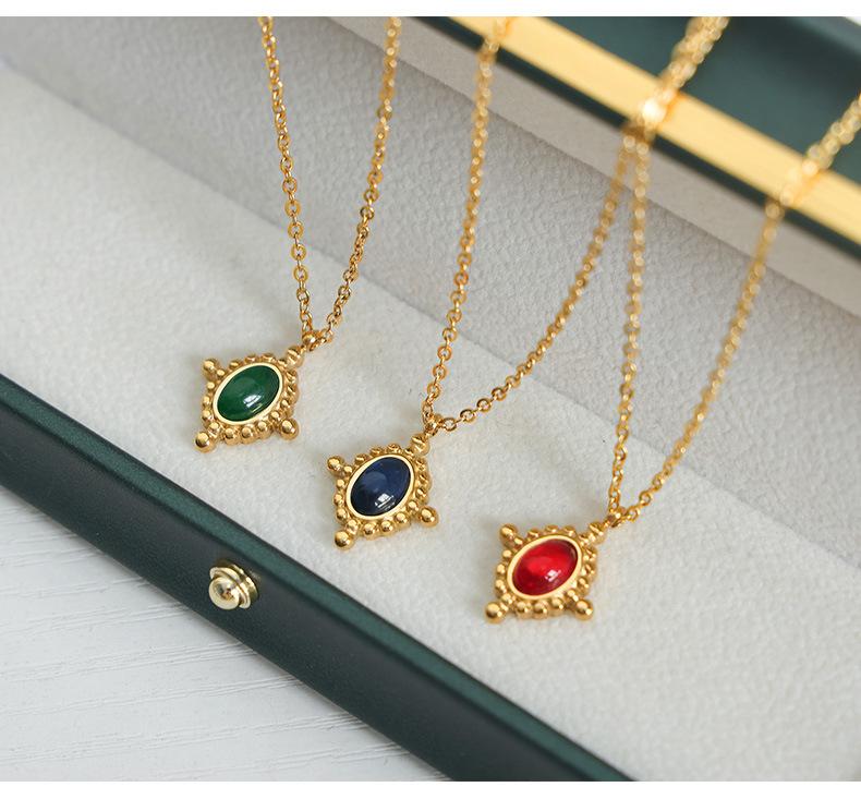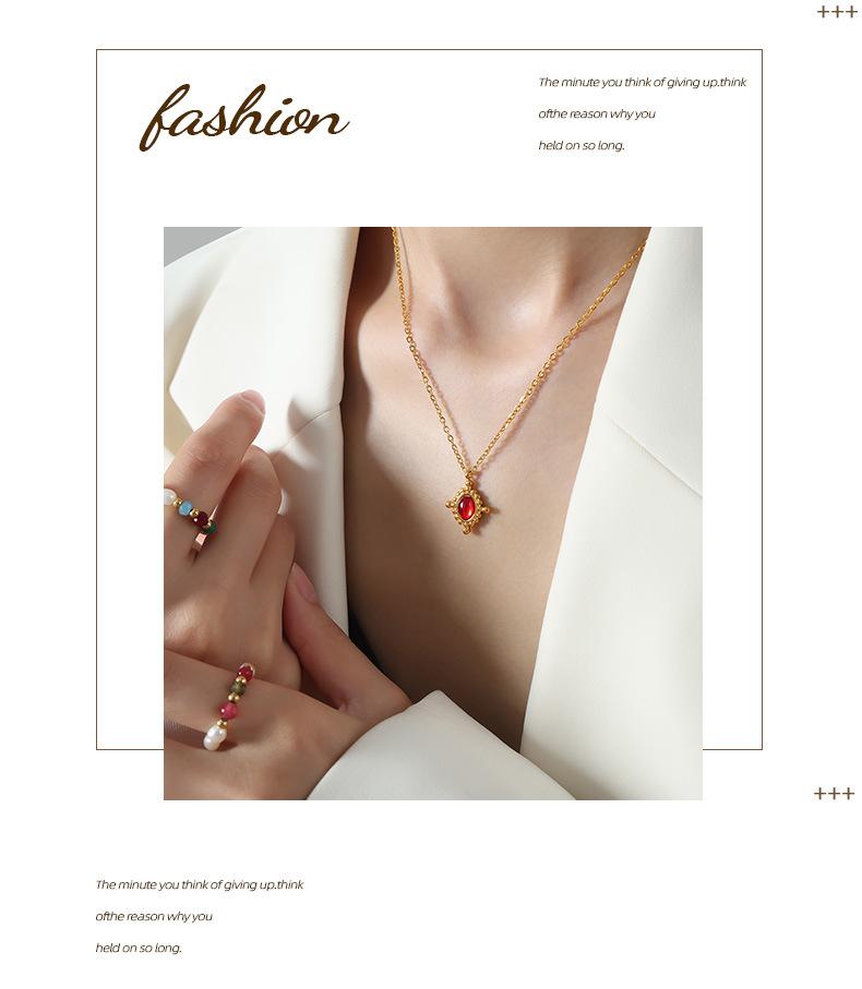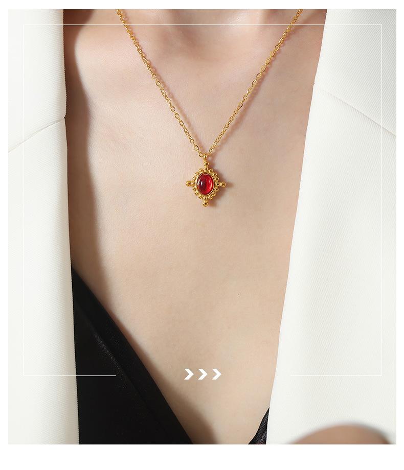 Collar con colgante de ágata roja de estilo francés, ligero, de lujo, de acero de titanio, oro de 18 quilates, con personalidad de nicho que combina con todo, joyería con temperamento al por mayor
