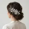 Joyería Nupcial Nueva Transfronteriza Horquilla para el Cabello Hecha a Mano Plateada Aleación Diamante Disco Adorno para la Cabeza Metal Flor Cristal Clip Lateral