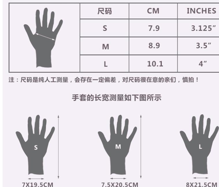 Tamaño: S/M/L (ancho de mano 13-17CM, talla M 17-20CM, talla L 20-24CM)