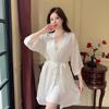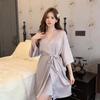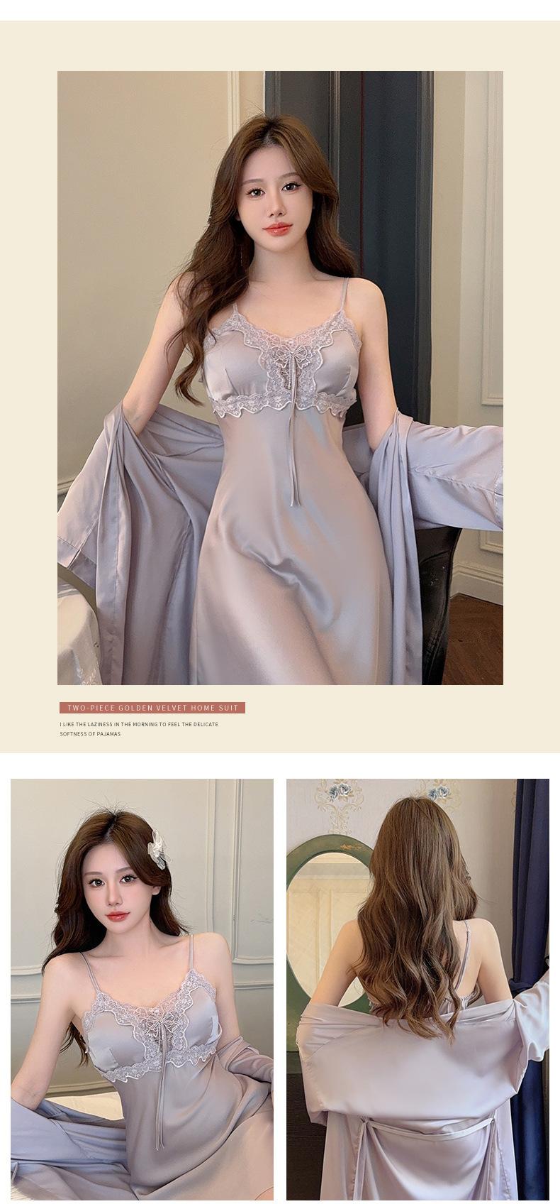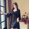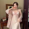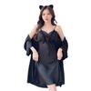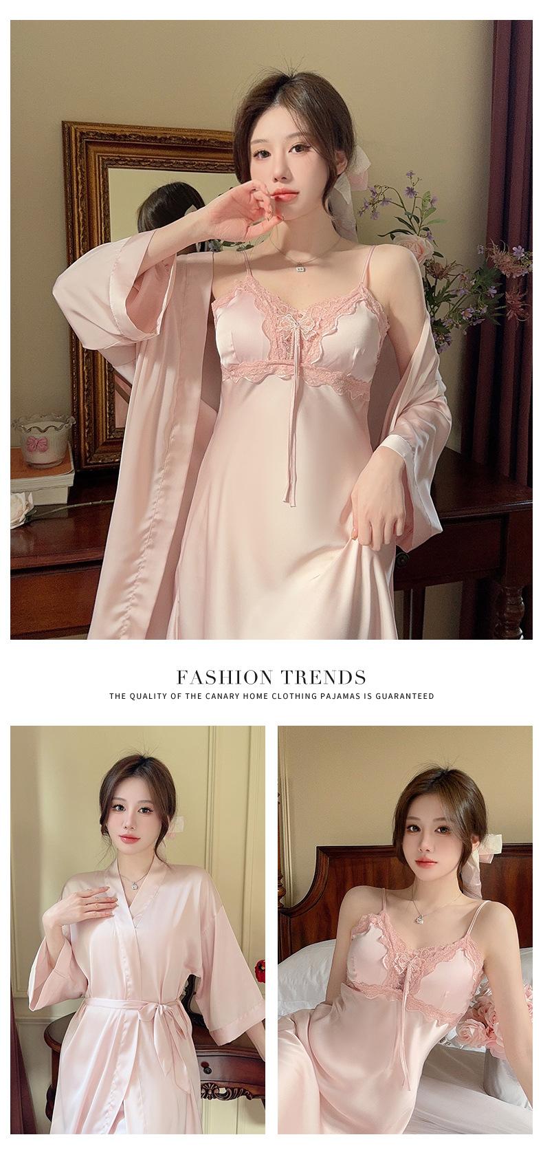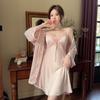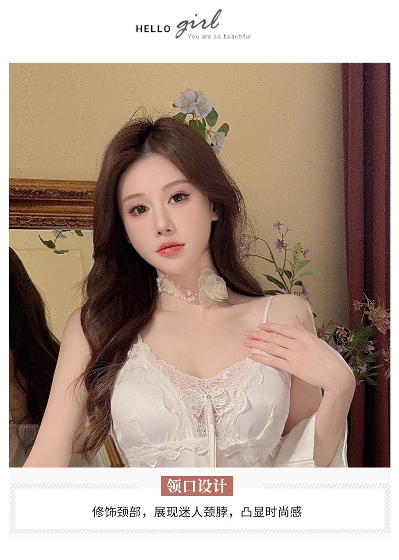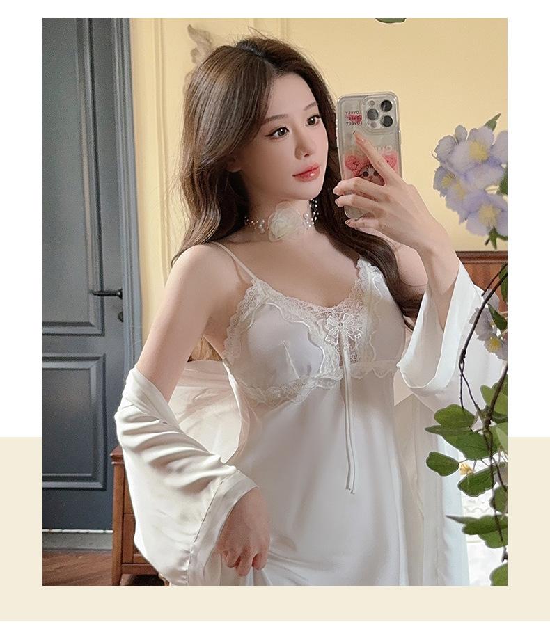 Pijama Sexy de Ropa Interior de Seda de Hielo con Almohadilla en el Pecho Push-up Lazo Encaje Transparente Camisón Bata Exterior Ropa para el Hogar para el Cabello