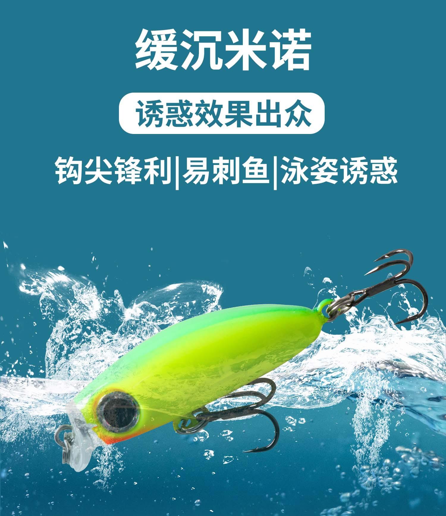 Método de operación: Después de que el cebo cae en el agua y alcanza la capa de agua deseada, la punta de la caña apunta hacia abajo y la línea se enrolla a una velocidad constante hasta que el cebo abandona la superficie del agua.