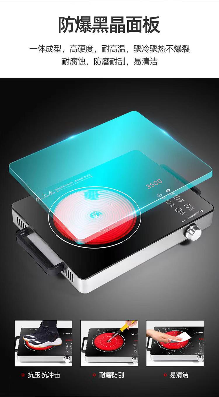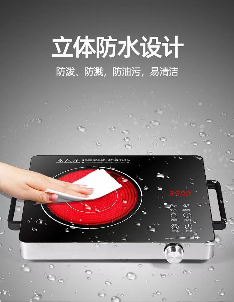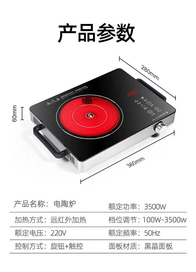 3500w seven-ring fierce fire frosted black electric ceramic stove