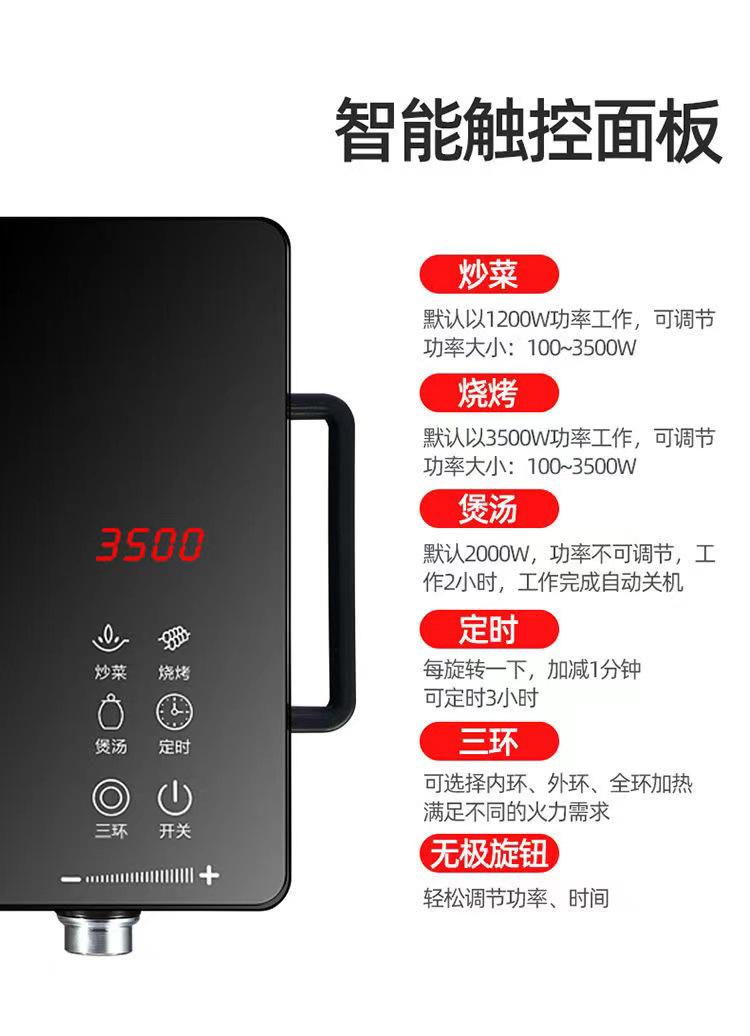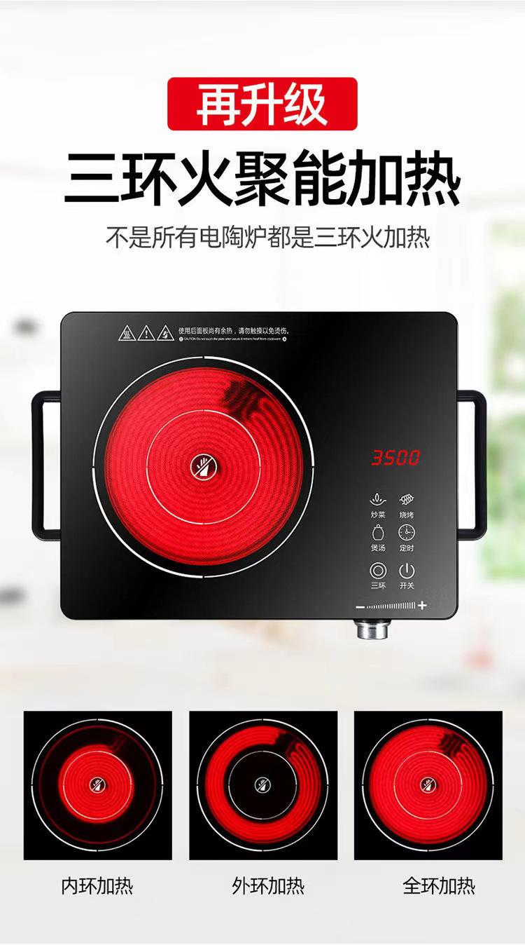 3500w seven-ring fierce fire frosted black electric ceramic stove, 3500w three-ring matte black electric ceram...