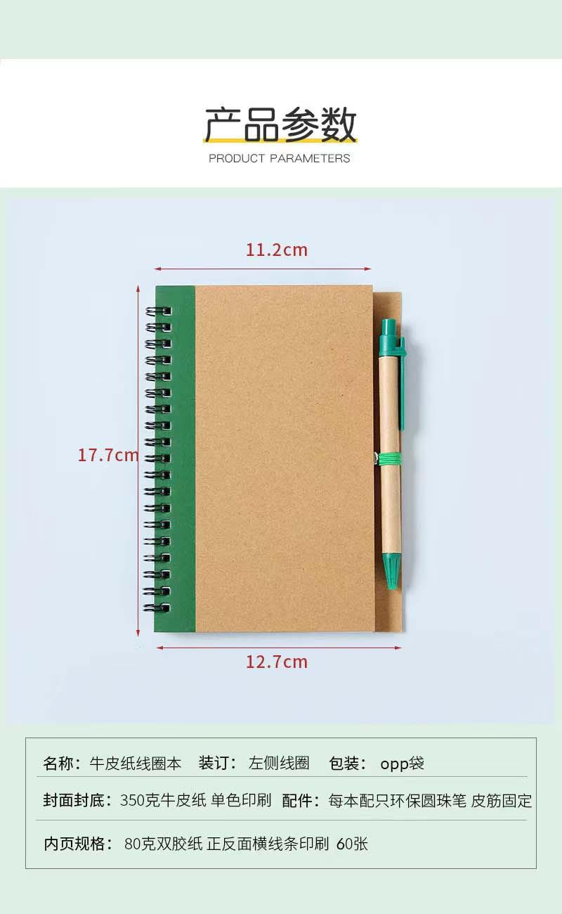 Libreta de espiral de papel Kraft retro con colores a juego, notas literarias sencillas con bolígrafo, libreta de hojas sueltas en espiral para estudiantes.