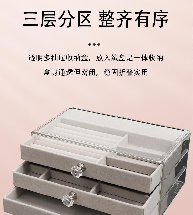 Joyero de franela, joyero de 3 capas, joyero transparente, joyero de terciopelo transparente transfronterizo