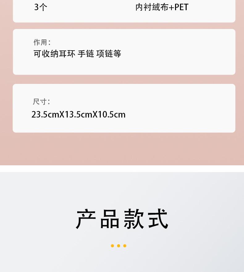 Beige three-layer jewelry box, Grey three-layer jewelry box, Pink three-layer jewelry box