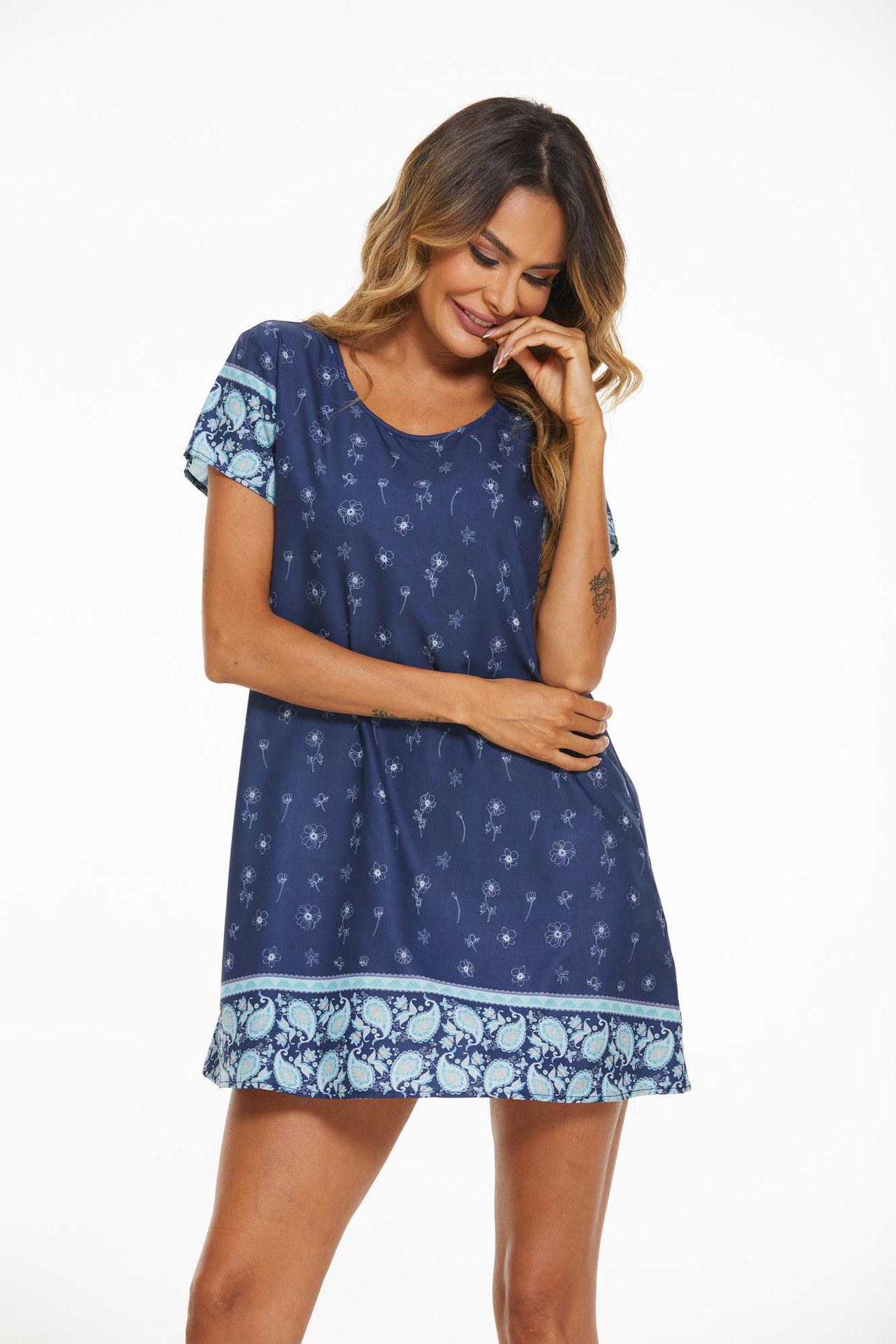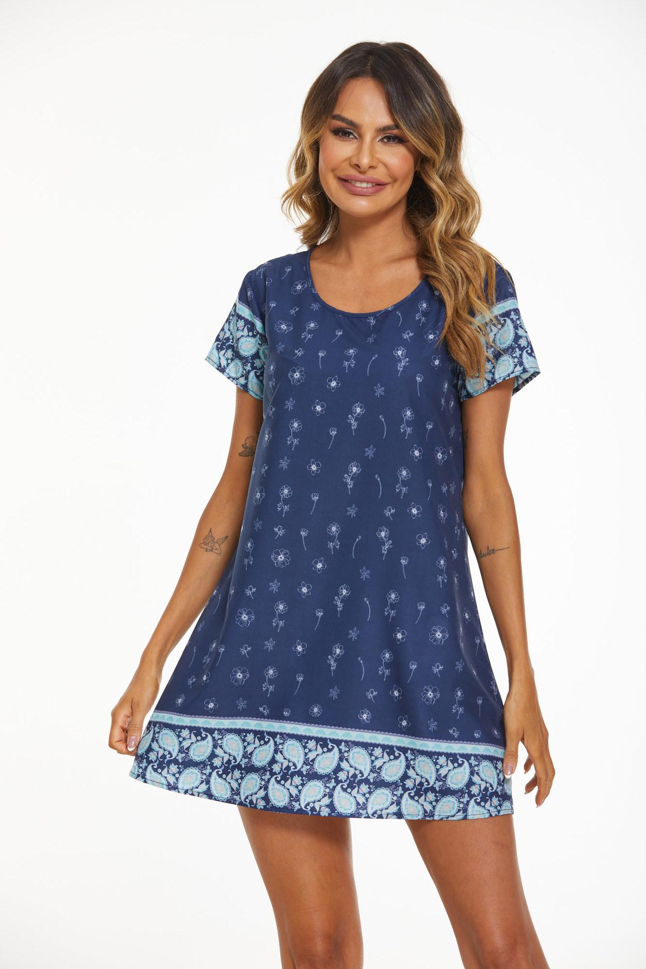 Verano Amazon Camisón Europeo y Americano para Mujer Ropa para el Hogar Elástico en Cuatro Direcciones Estampado Digital Manga Corta Ropa Casual para el Hogar Pijama