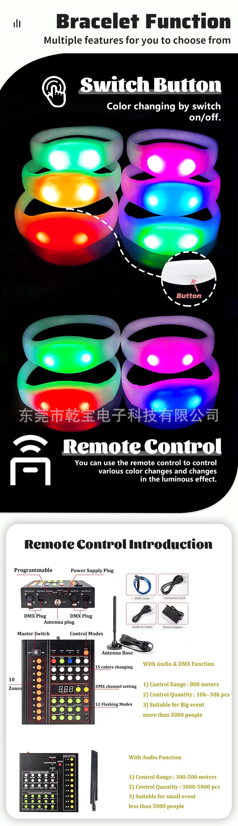 Pulsera luminosa personalizada para control de sala de conciertos, pulsera LED con accesorios para ambiente en vivo en bares y reuniones anuales corporativas.