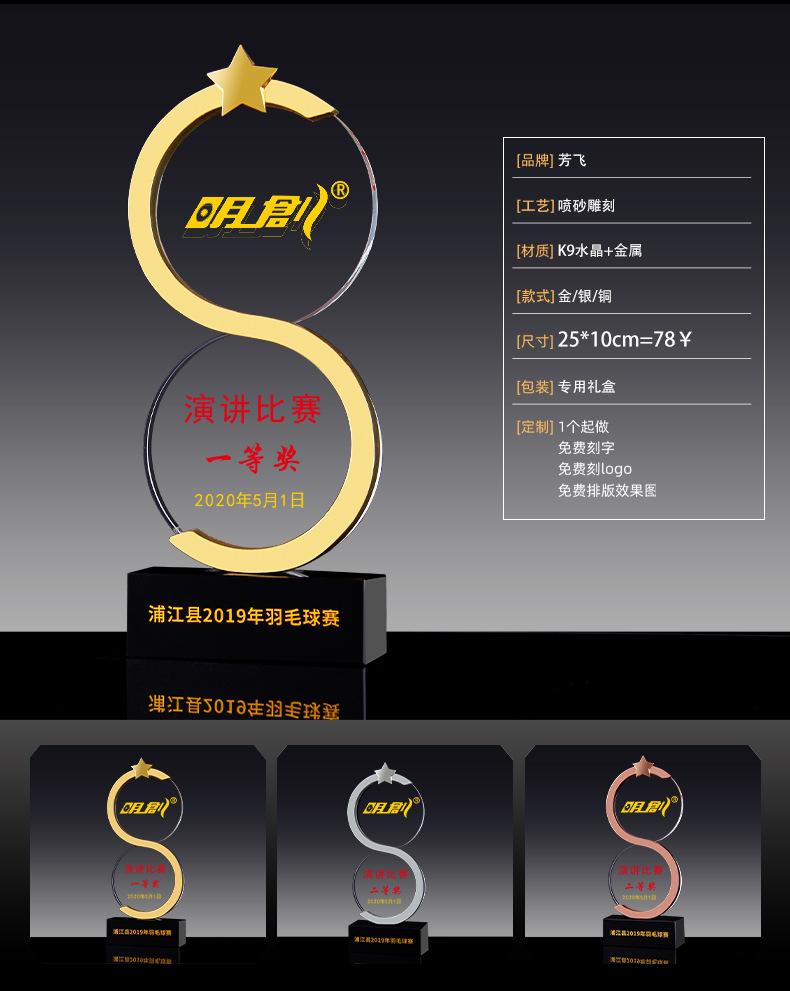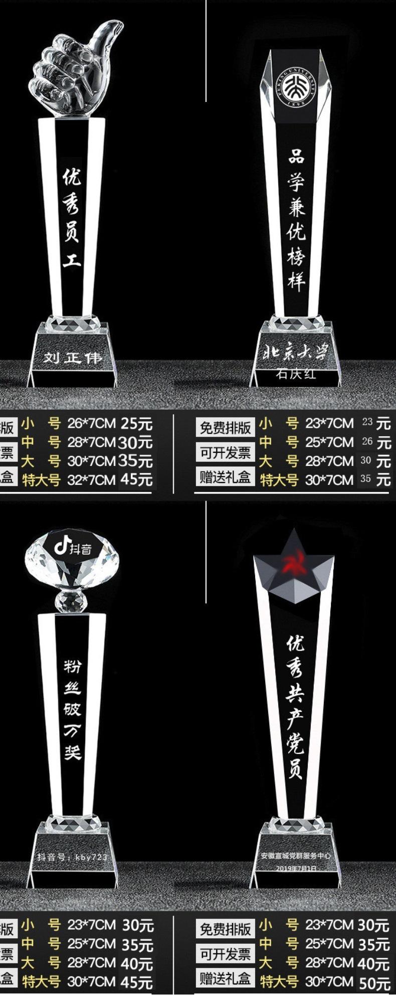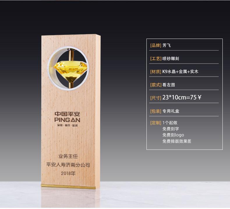 Crystal Style, Resin model, Metal crystal combination, Wooden trophy