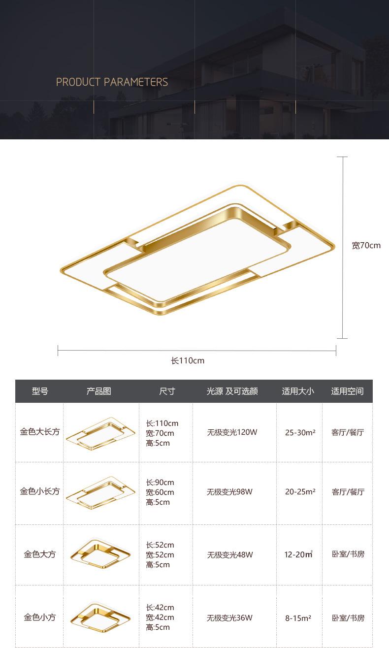 Golden rectangle 90*60cm stepless dimming 98w, [hot] rectangular 110*70cm stepless dimming 120w, Square 42cm s...