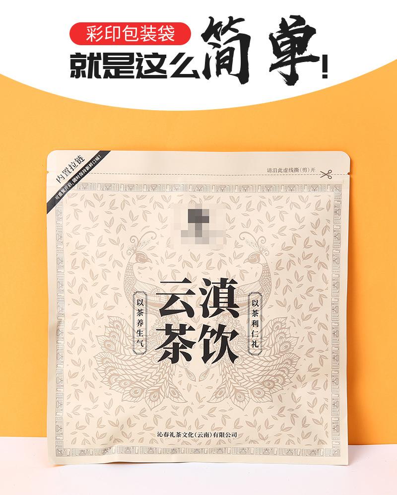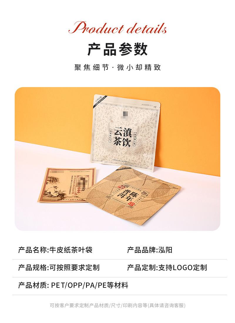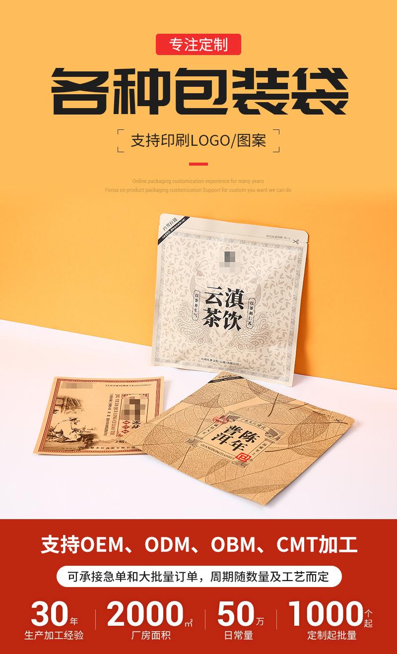 Bolsa de té aluminizada de papel Kraft con impresión a color, bolsa de té autosellable para café Pu'er, bolsa de plástico para envasado de alimentos, personalización