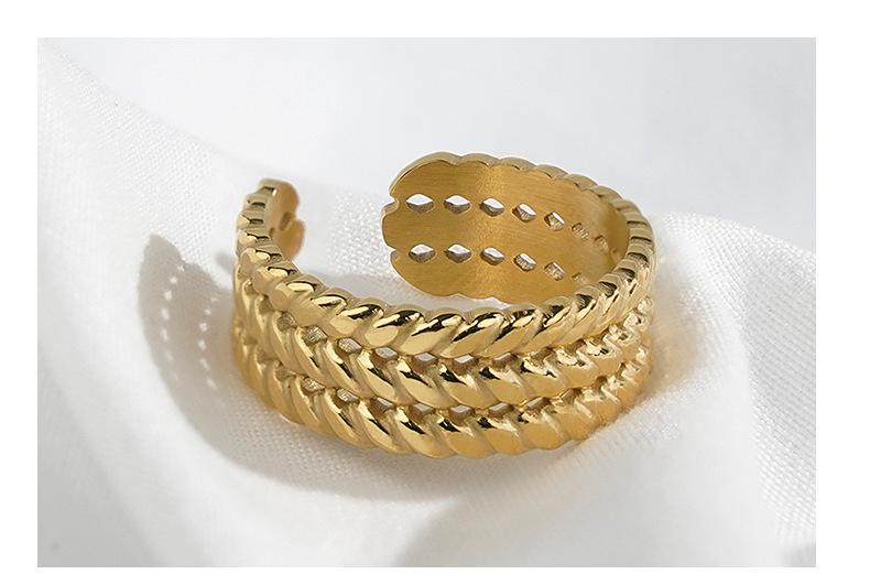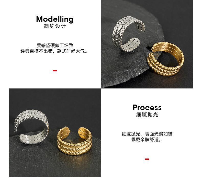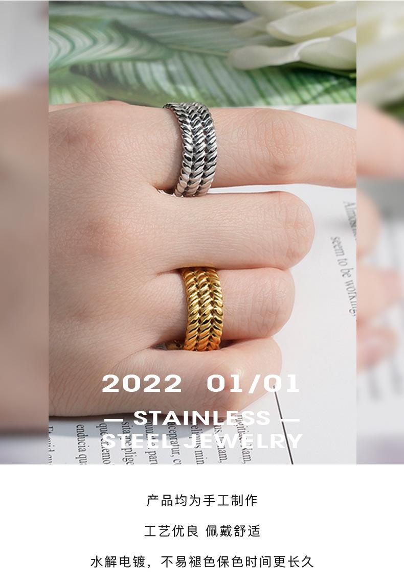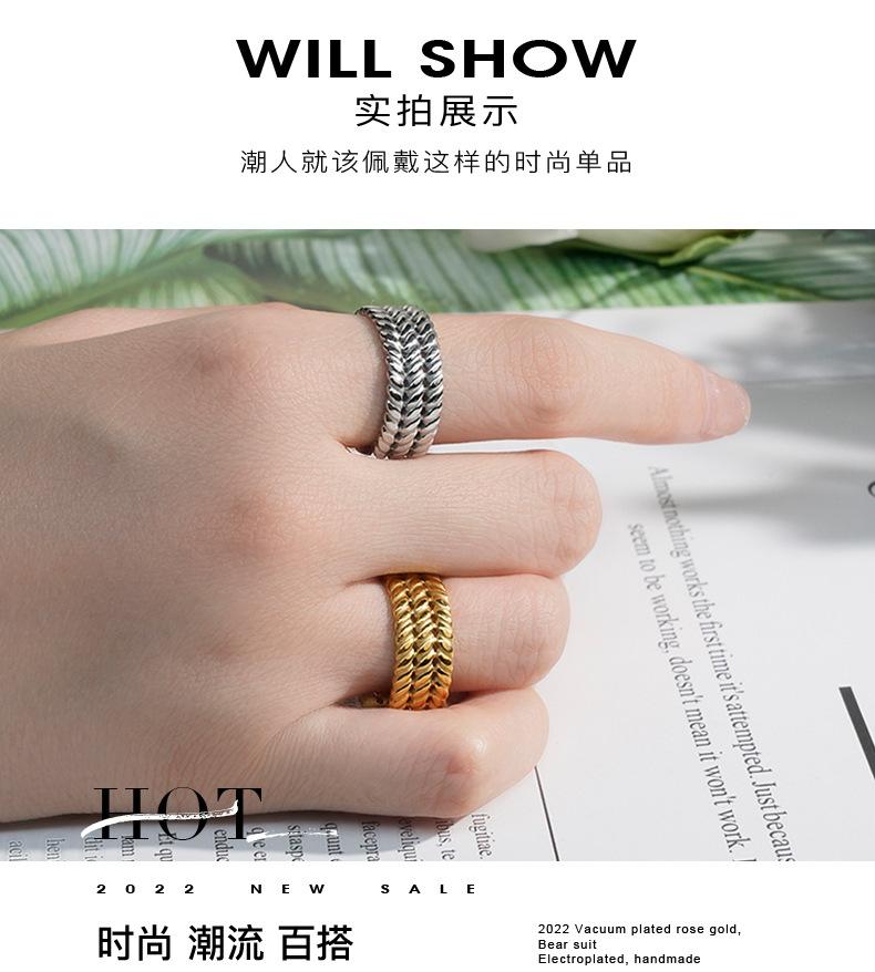 Anillo de metal giratorio de acero de titanio de moda coreana para mujer, diseño retro, ajustable, de acero inoxidable, chapado en oro.