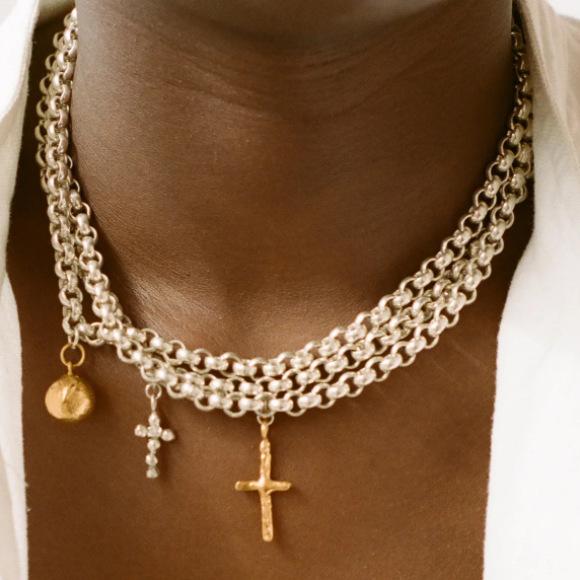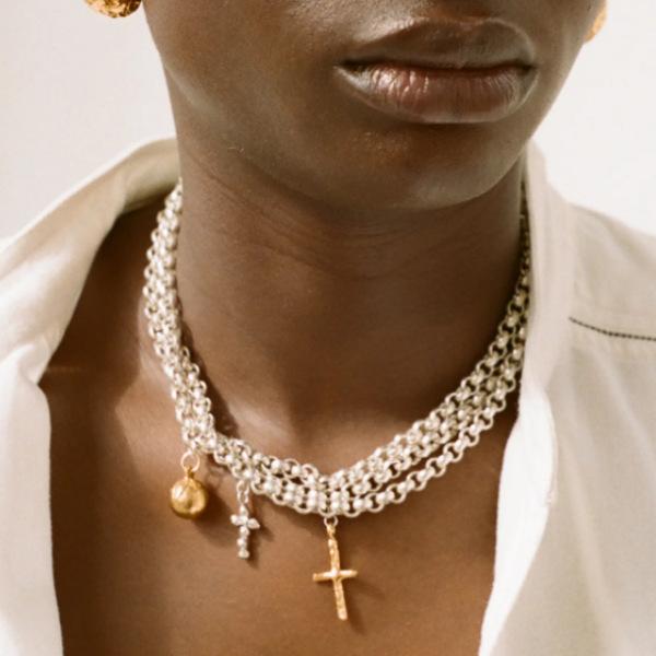 Compra Collar versátil de diseñador nicho de Londres con cruz de bola, lujo ligero, industria pesada, colgante tridimensional, cadena para clavícula al por mayor en Joom.pro