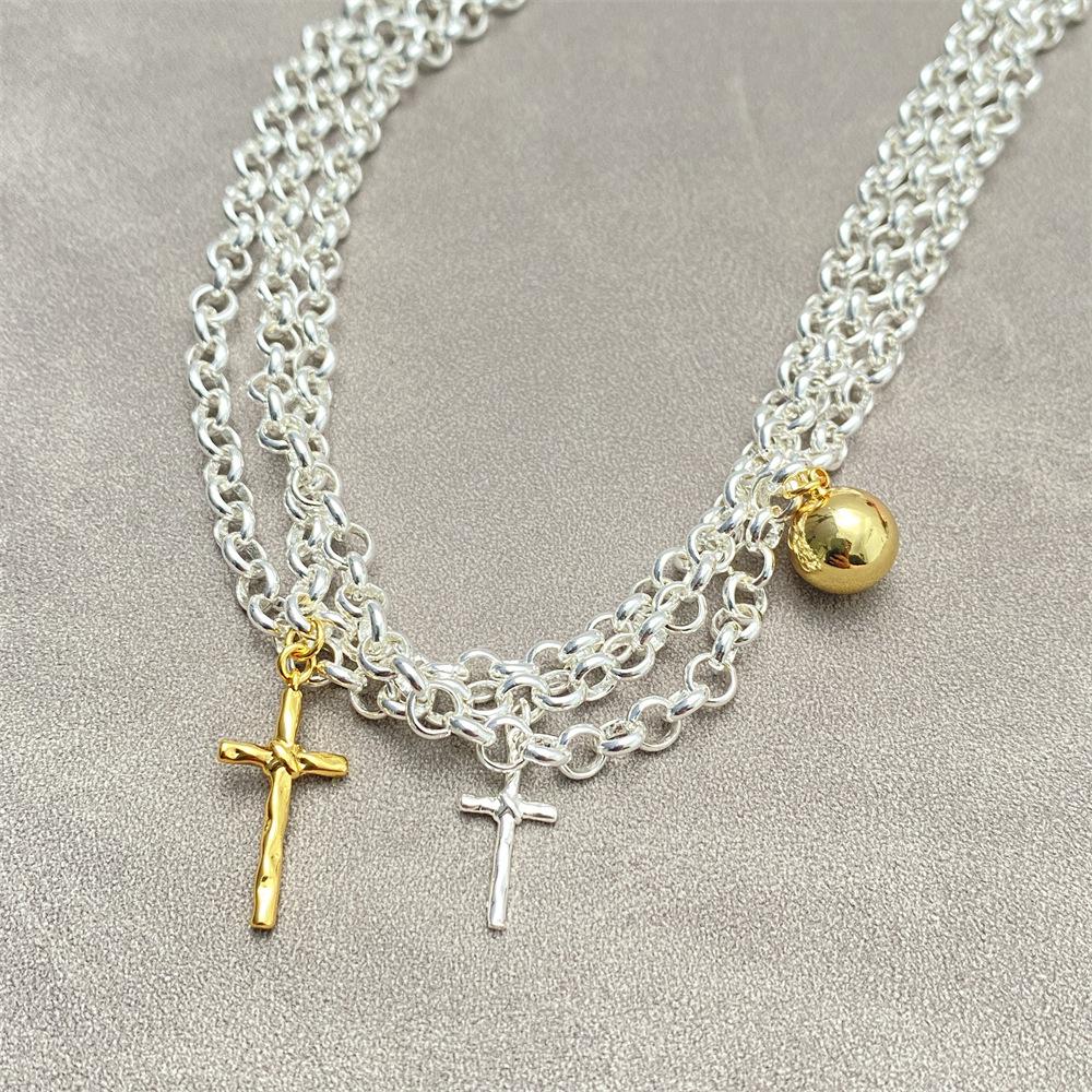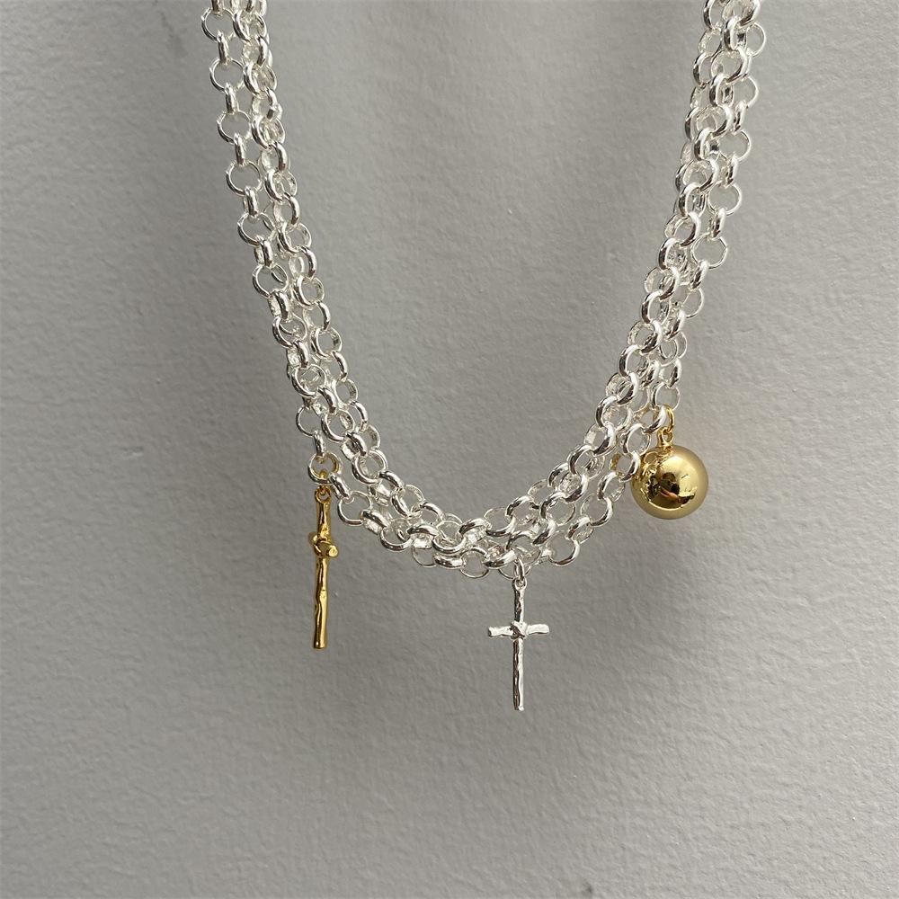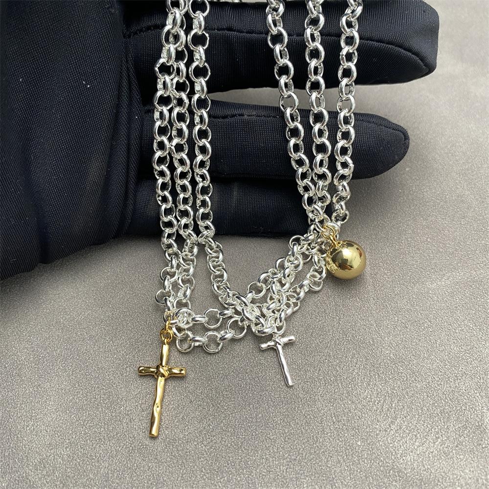 Collar versátil de diseñador nicho de Londres con cruz de bola, lujo ligero, industria pesada, colgante tridimensional, cadena para clavícula