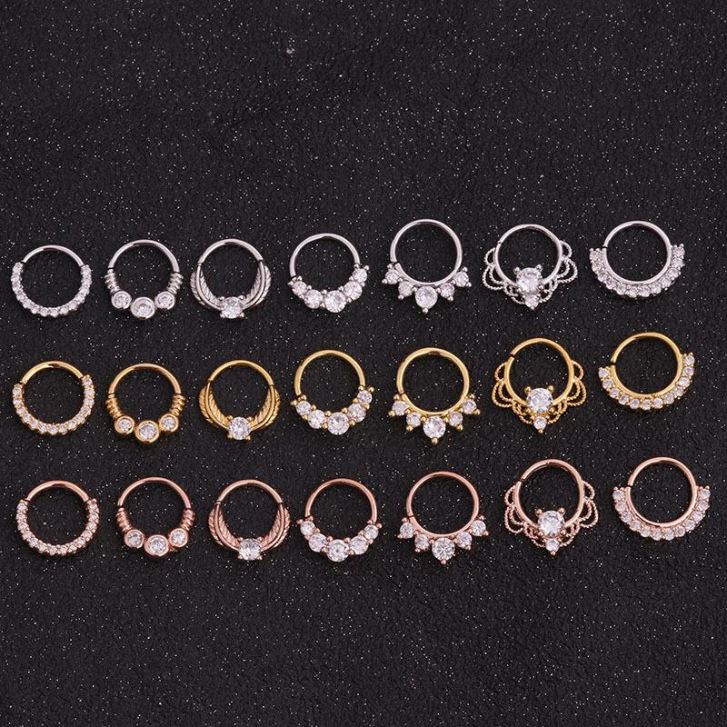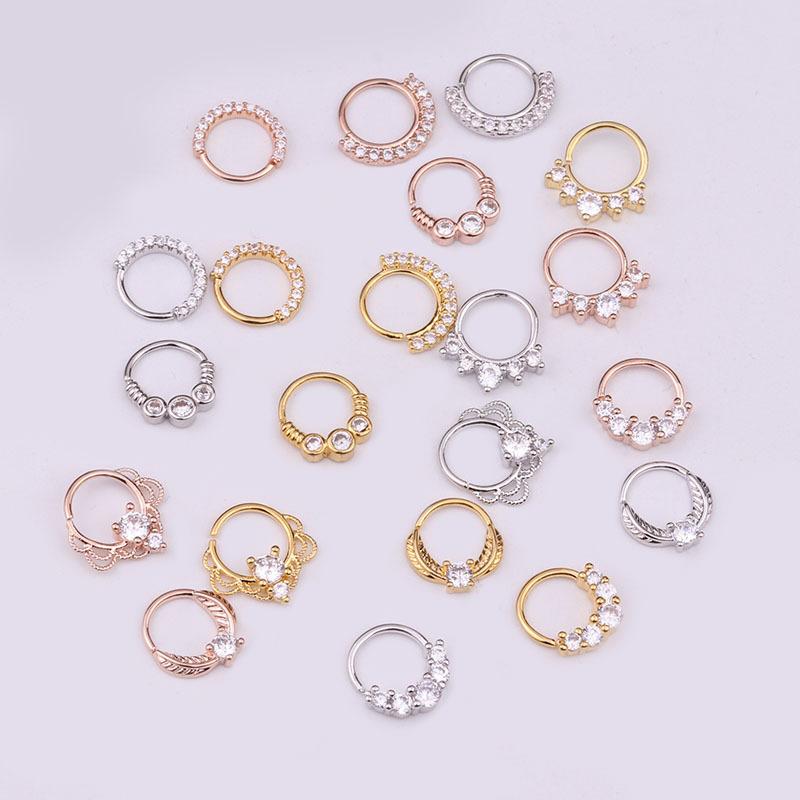 | nombre del producto | Anillo nasal de circonita transfronteriza, clavo nasal microincrustado creativo, clavo redondo para el hueso de la oreja del tabique nasal, joyería para perforación corporal al por mayor |
