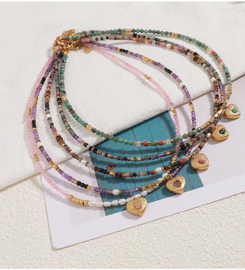 Amazonite necklace xl-561j, Amethyst necklace xl-561j-1, Amethyst gray glitter necklace xl-561j-2, Rose quartz...