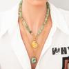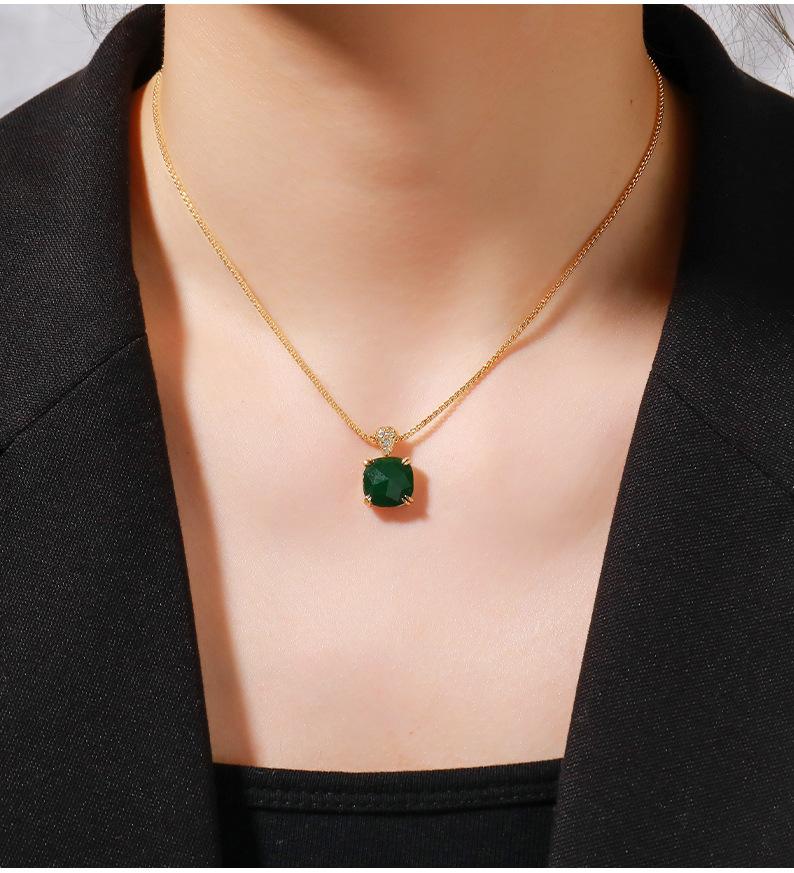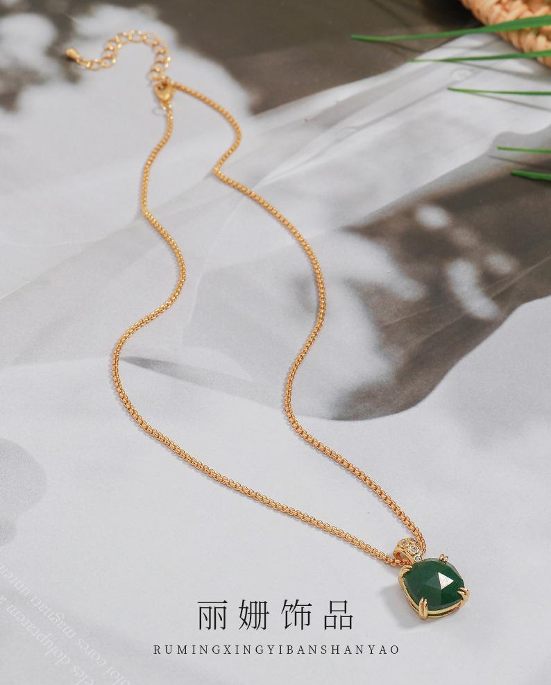 Collar con colgante de piedra natural de alta gama, sencillo, transfronterizo, europeo y americano, chapado en oro de 18 quilates, cadena de clavícula sin color.