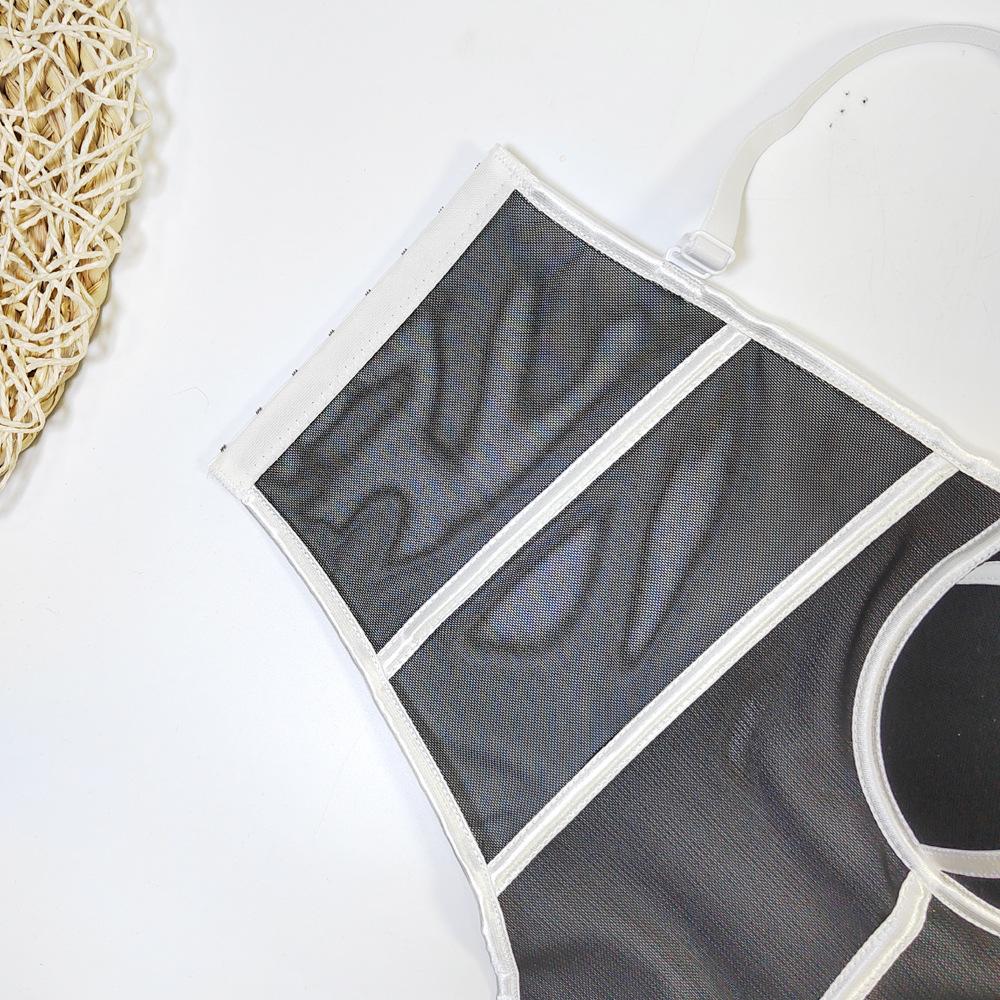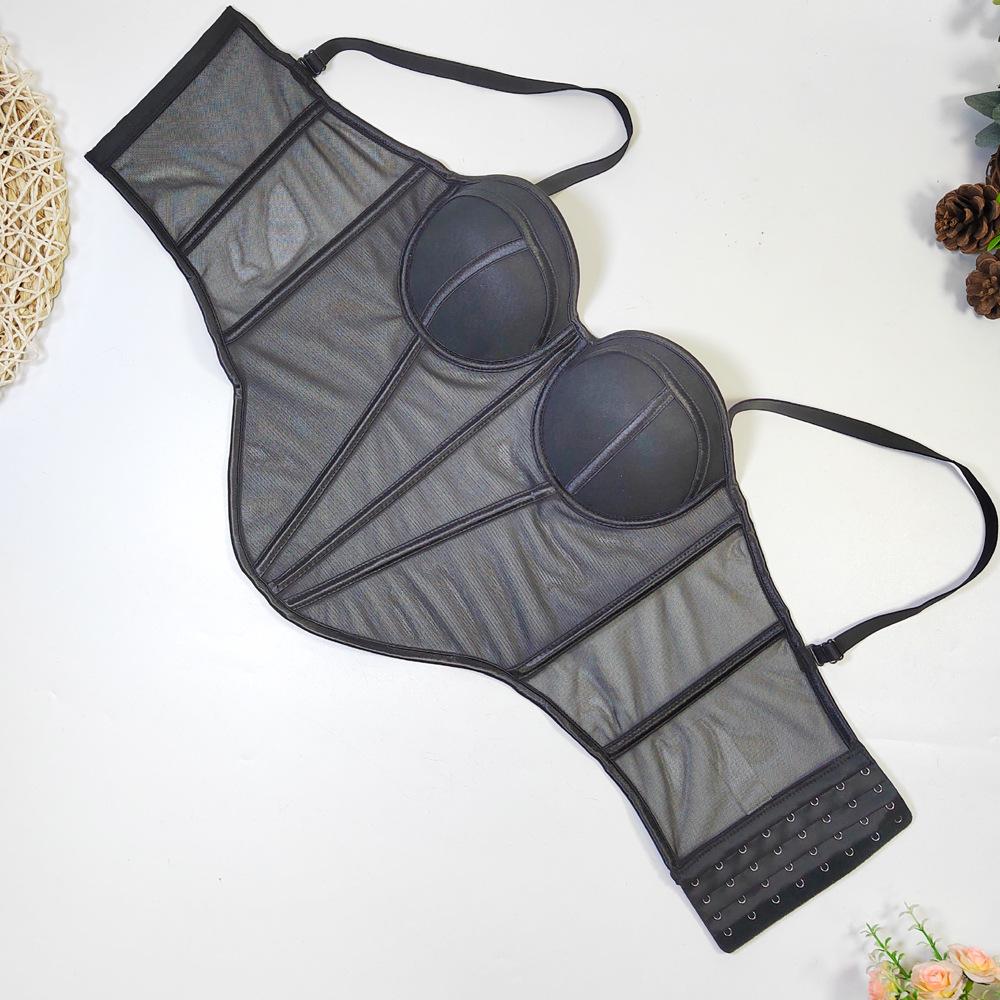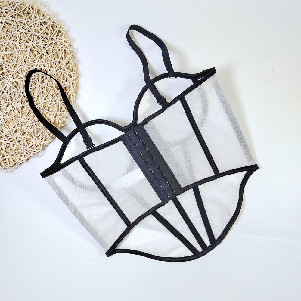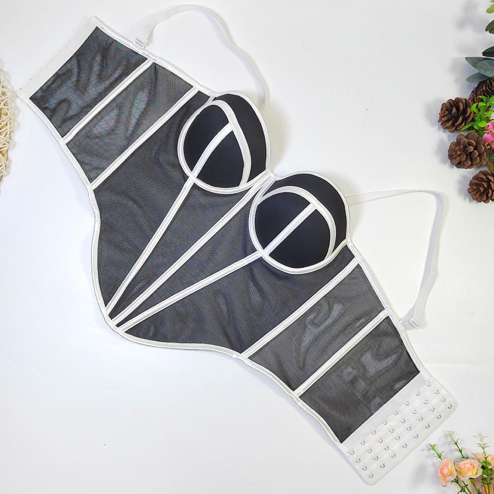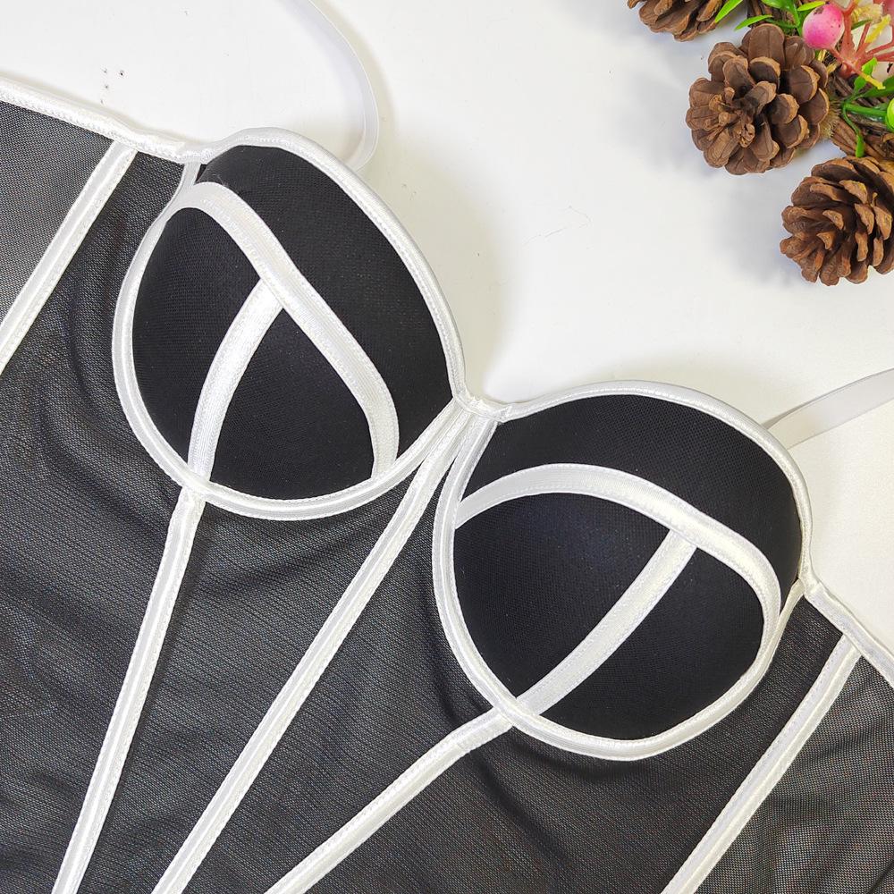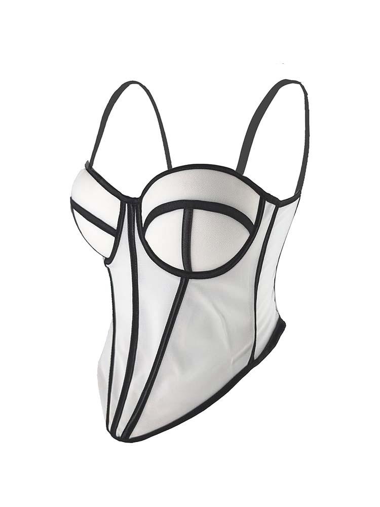 Top de Tubo Sexy de Malla con Diseño de Espalda Descubierta con Líneas de Color Contrastante Corsé Puro Lujuria para Mujer