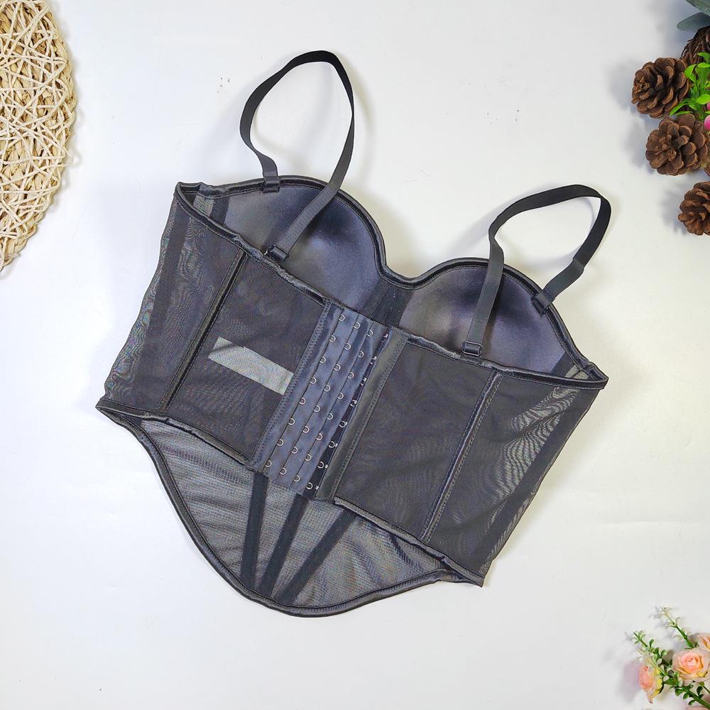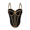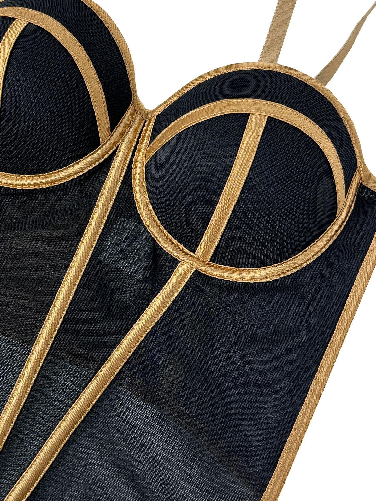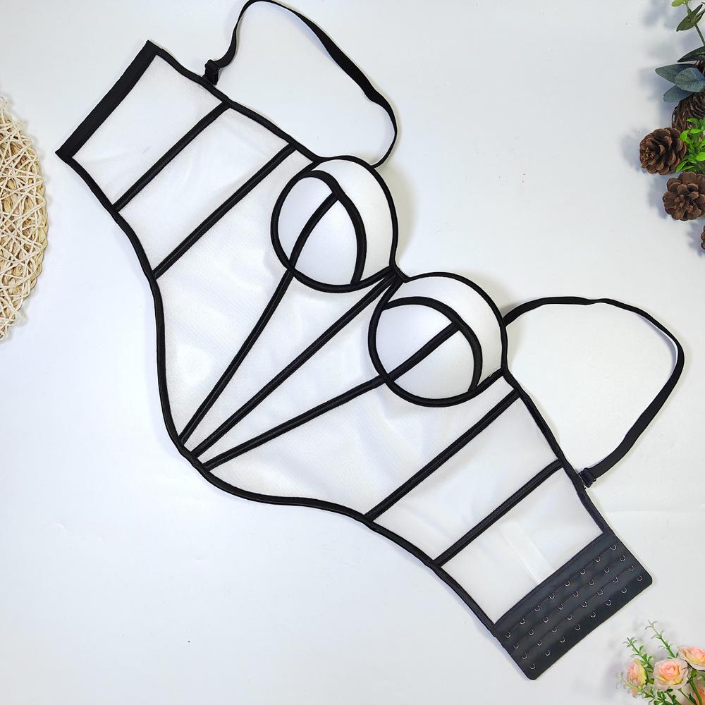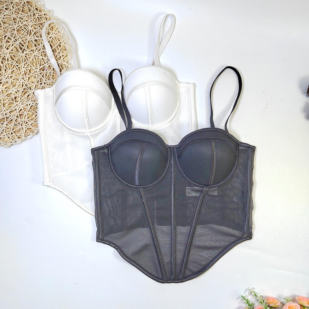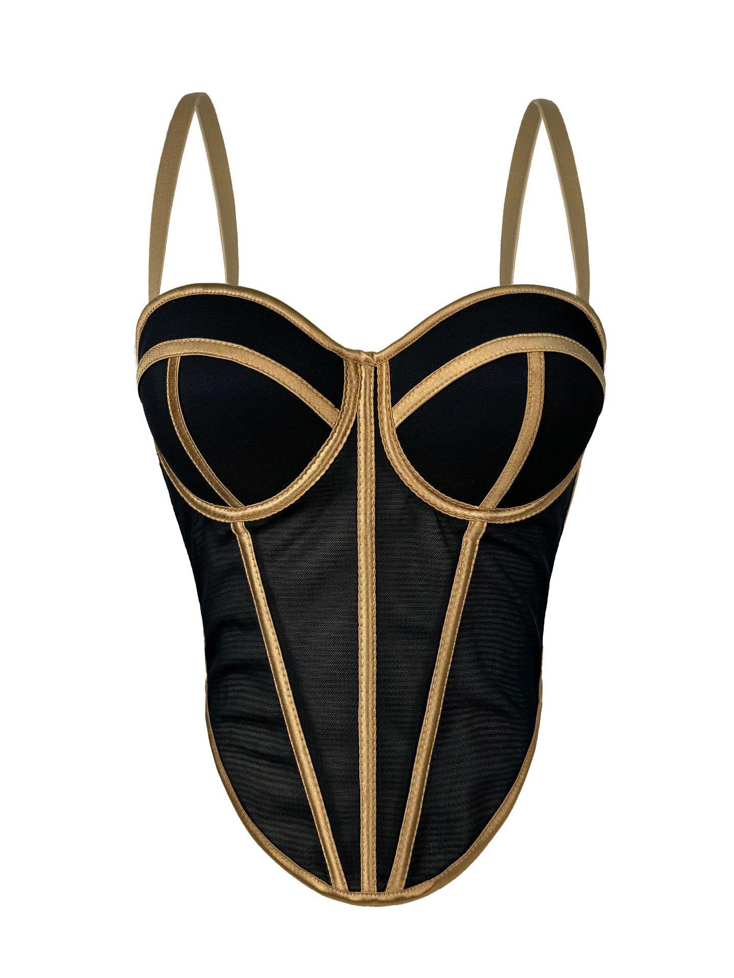 Top de Tubo Sexy de Malla con Diseño de Espalda Descubierta con Líneas de Color Contrastante Corsé Puro Lujuria para Mujer