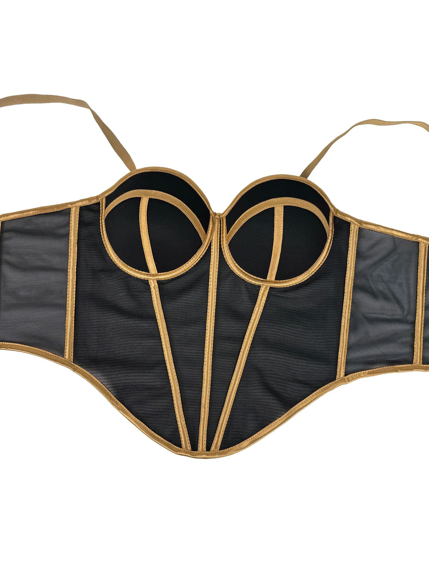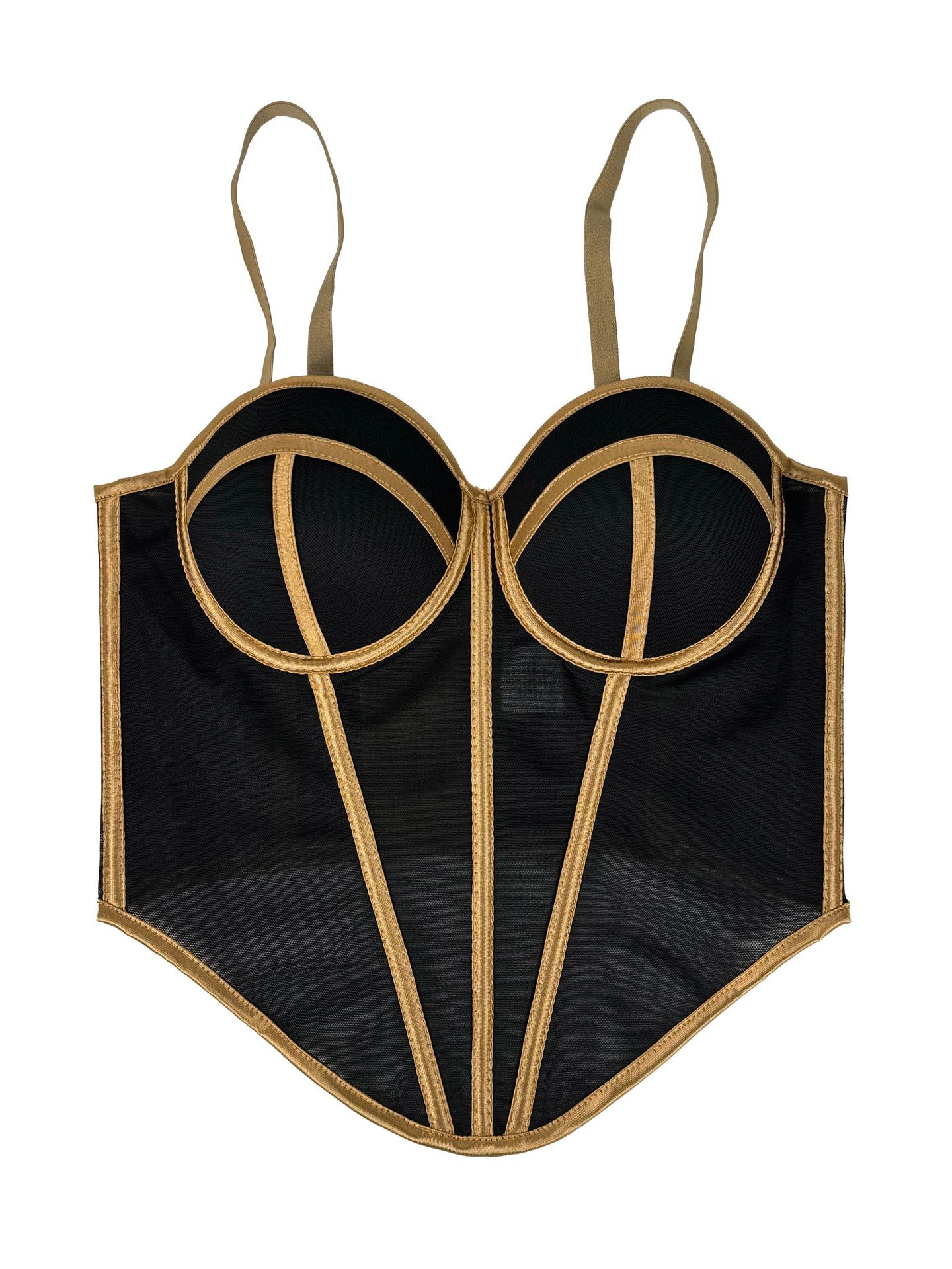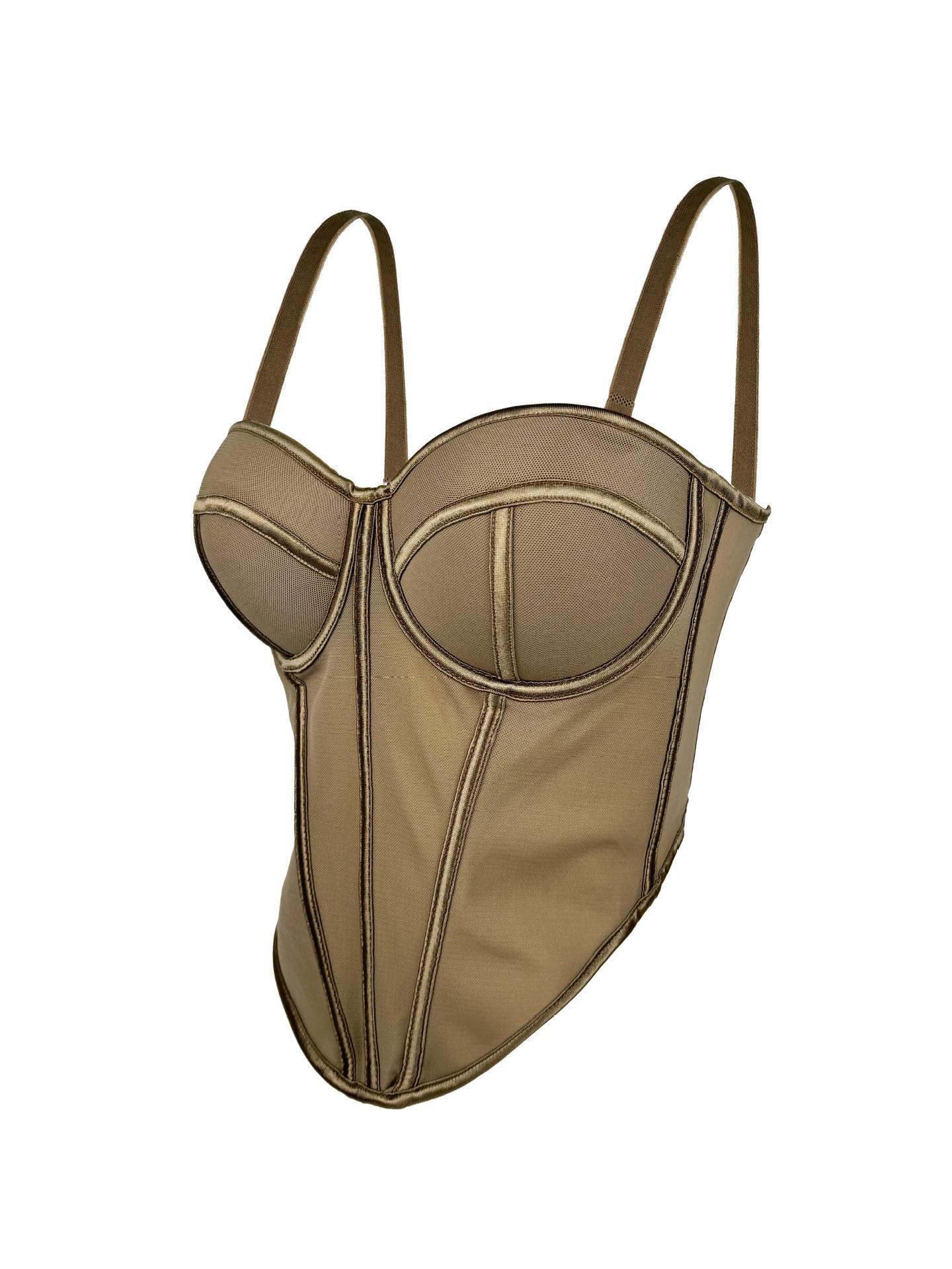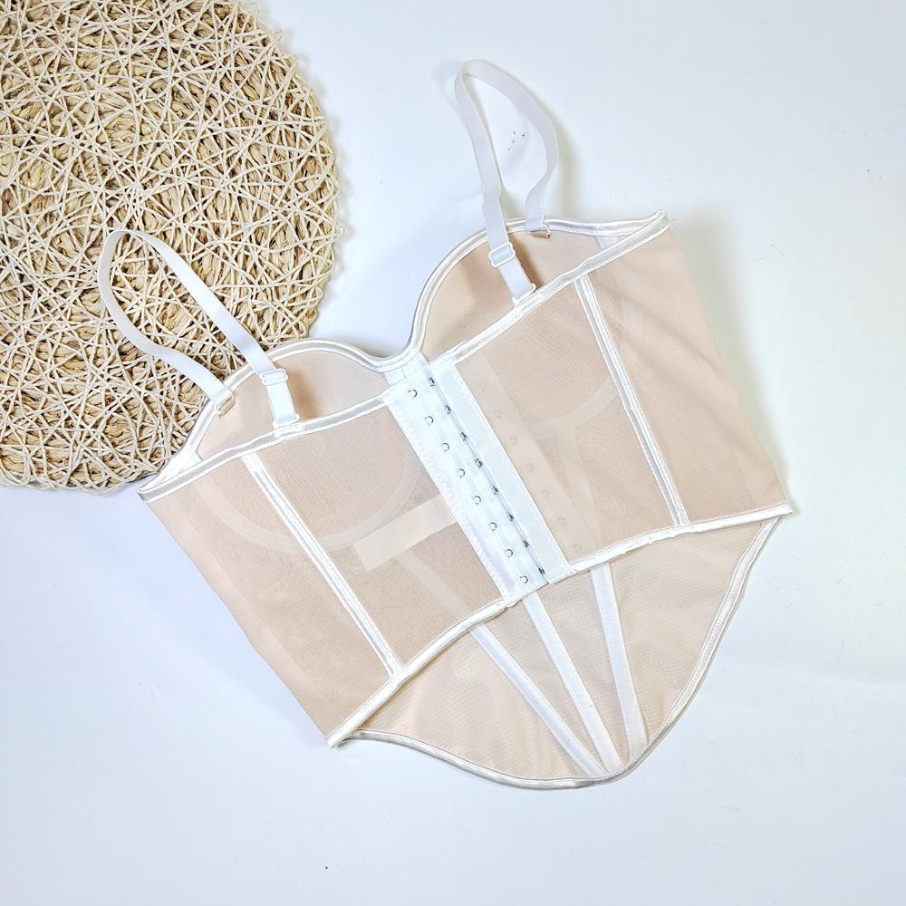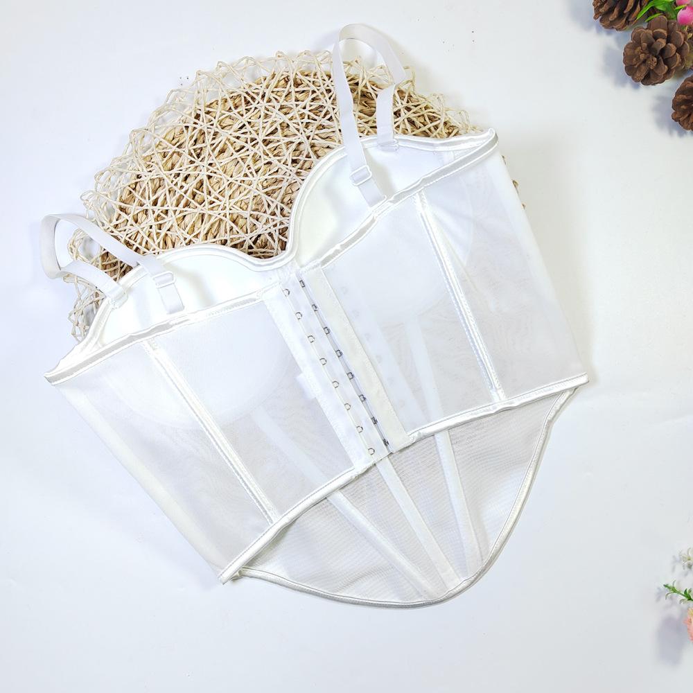 Top de Tubo Sexy de Malla con Diseño de Espalda Descubierta con Líneas de Color Contrastante Corsé Puro Lujuria para Mujer