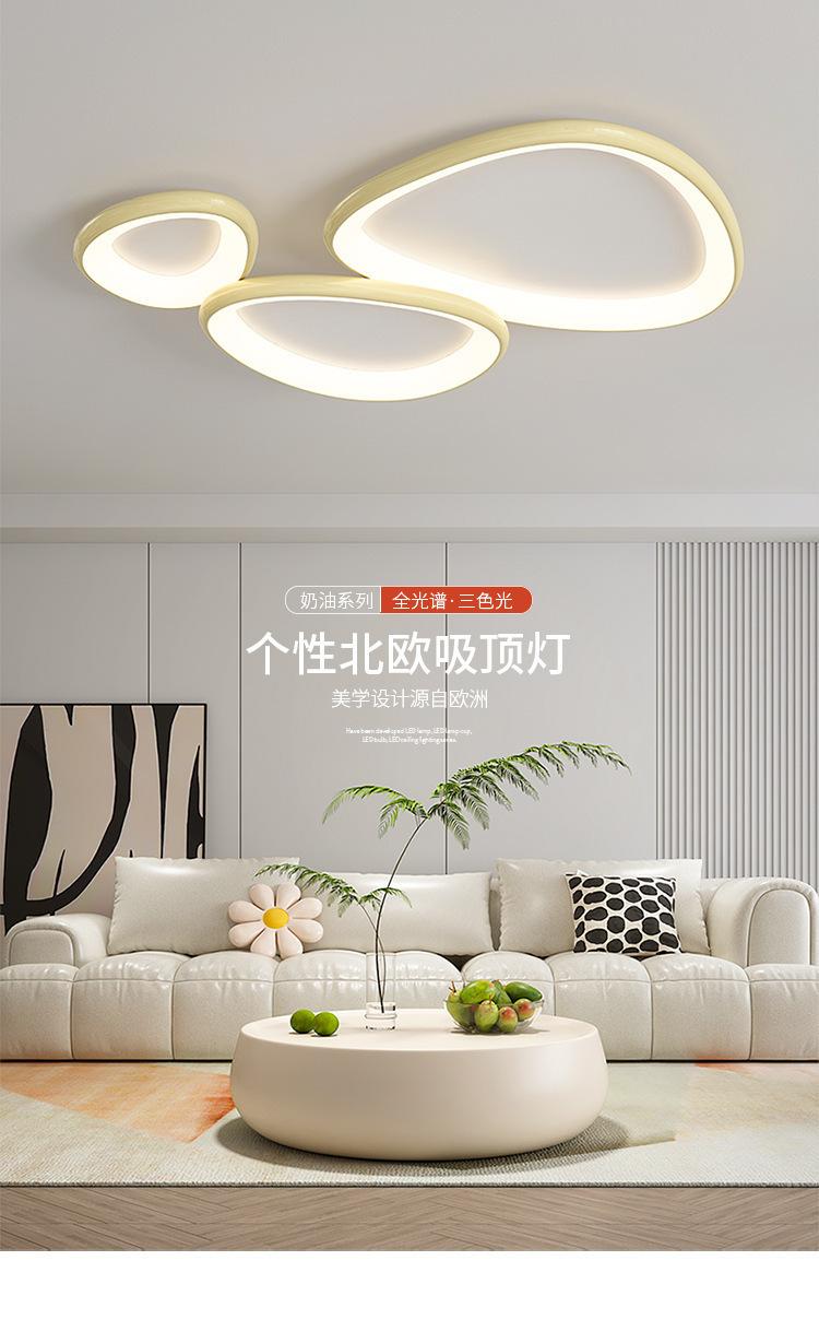 Lámpara de techo ultrafina estilo crema para sala de estar, lámpara principal francesa de mango para sala de estar, espectro completo, protección ocular, lámpara de techo para dormitorio y estudio