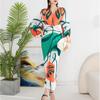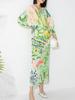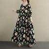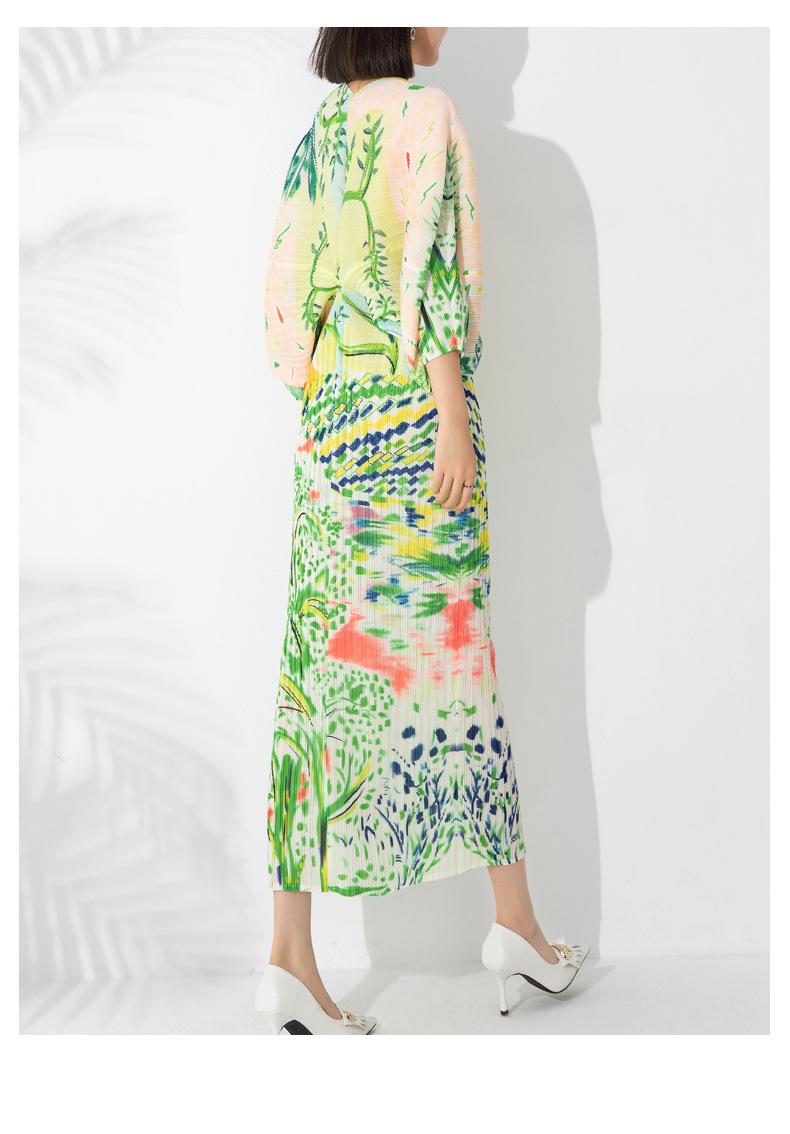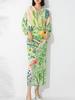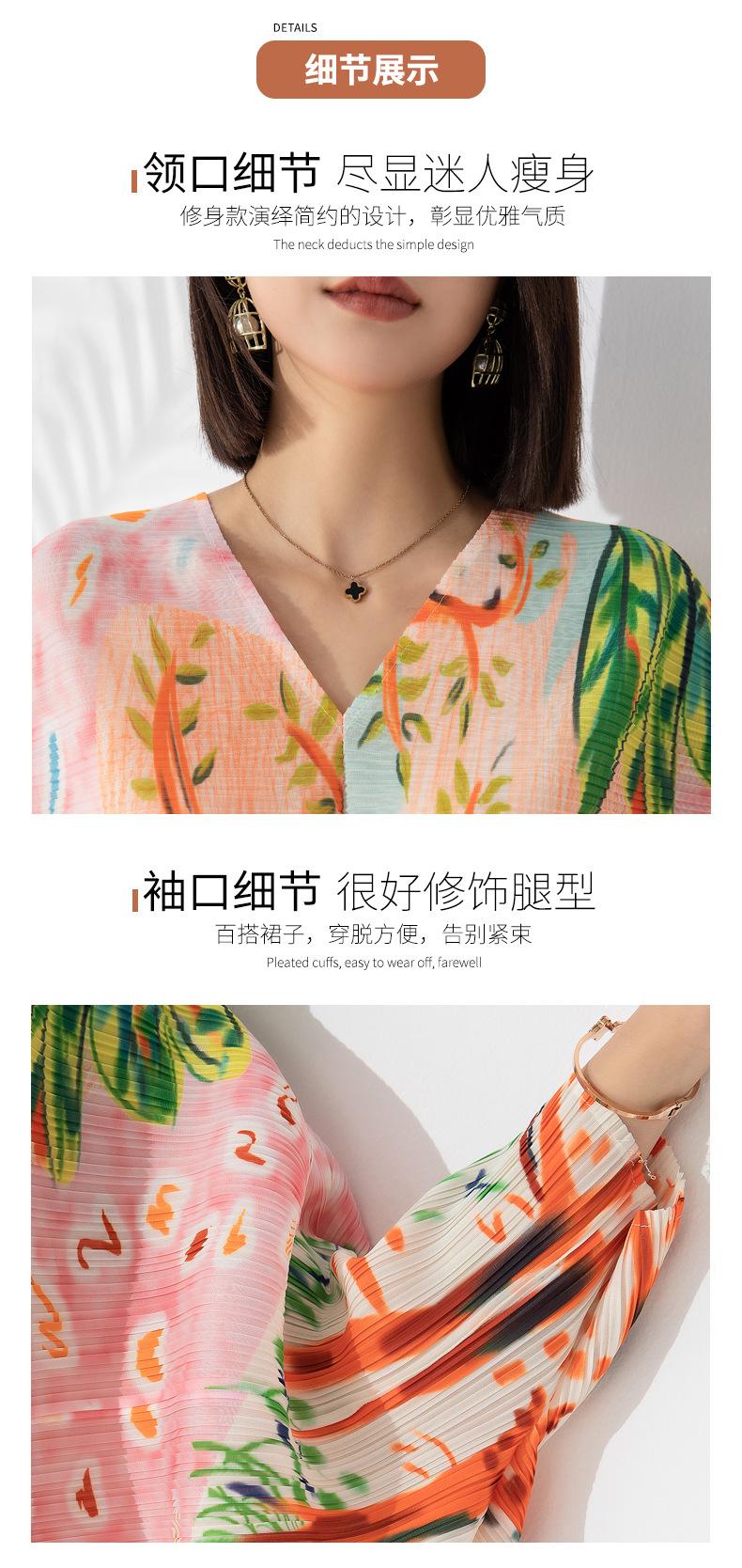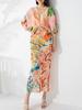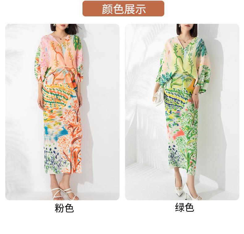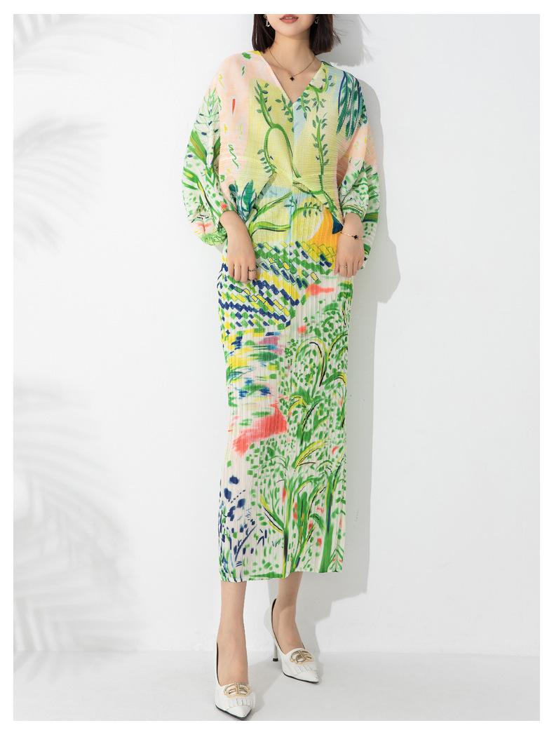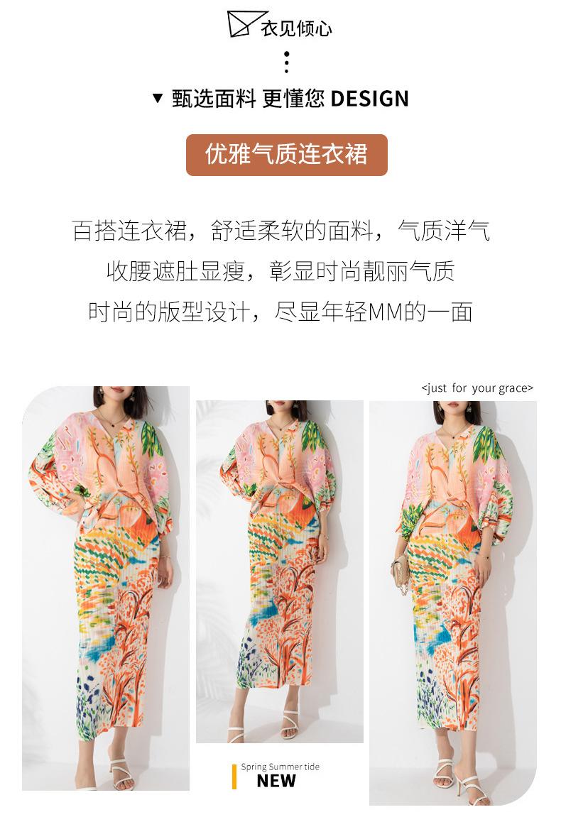 Vestido plisado con estampado de murciélago, cuello en V, elegante, de moda, talla grande, adelgazante, largo, de un solo paso, para mujer.