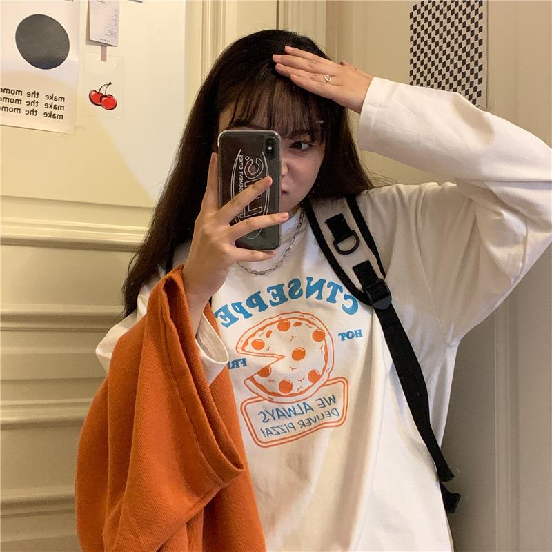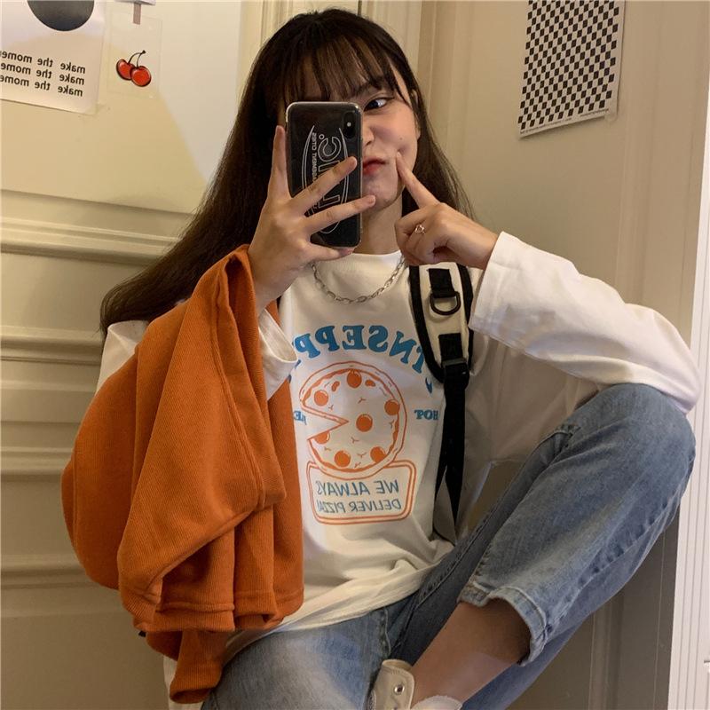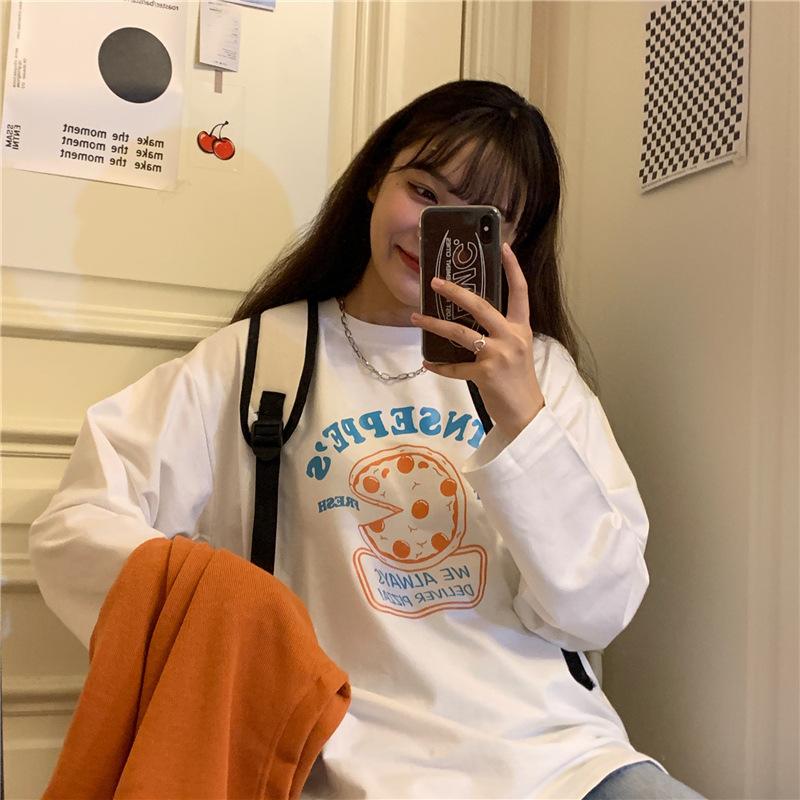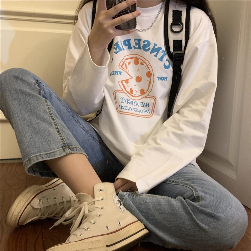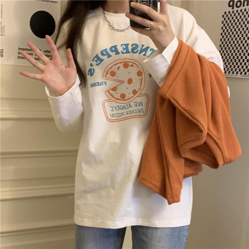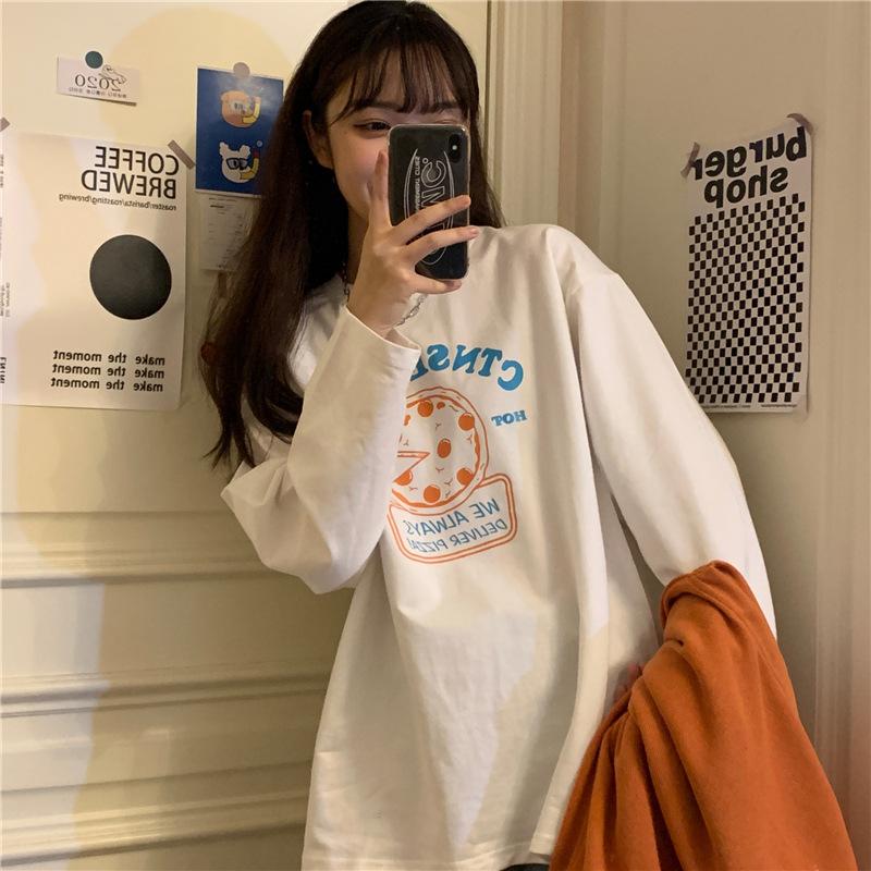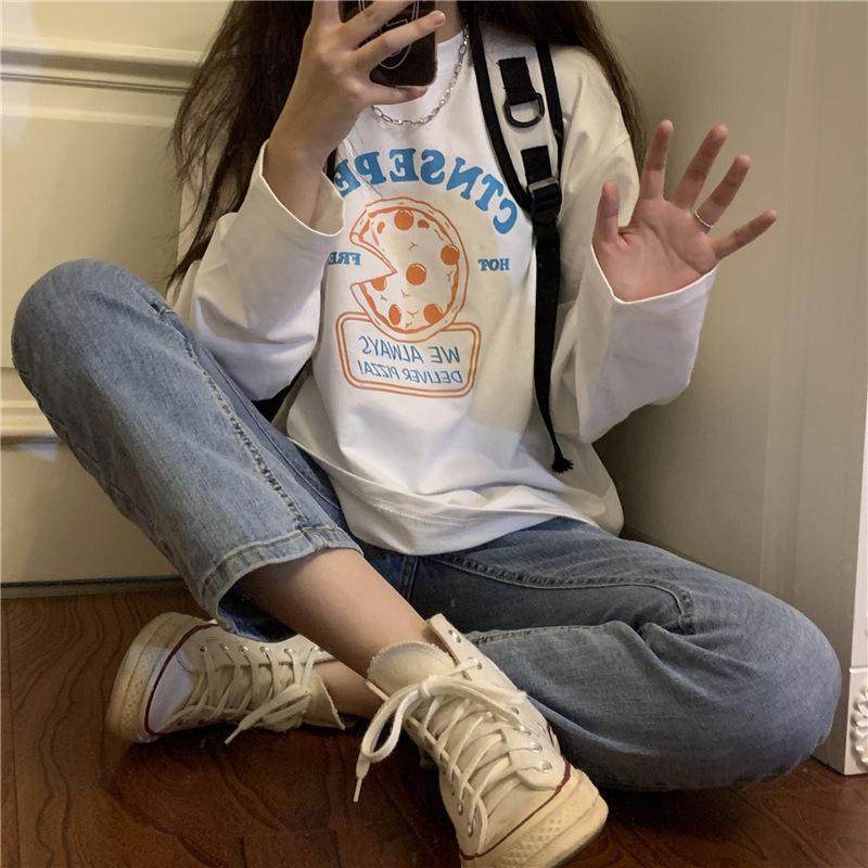 Diseño Único Camiseta de Manga Larga de Algodón Puro Estilo Coreano con Cuello Redondo Estampada para Mujer, Nueva Blusa de Otoño, Ropa Exterior o Capa Base, Ins