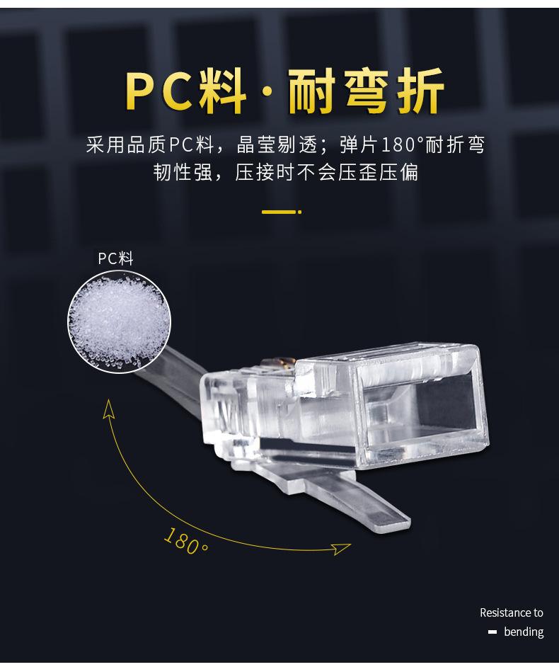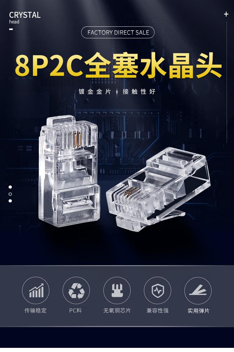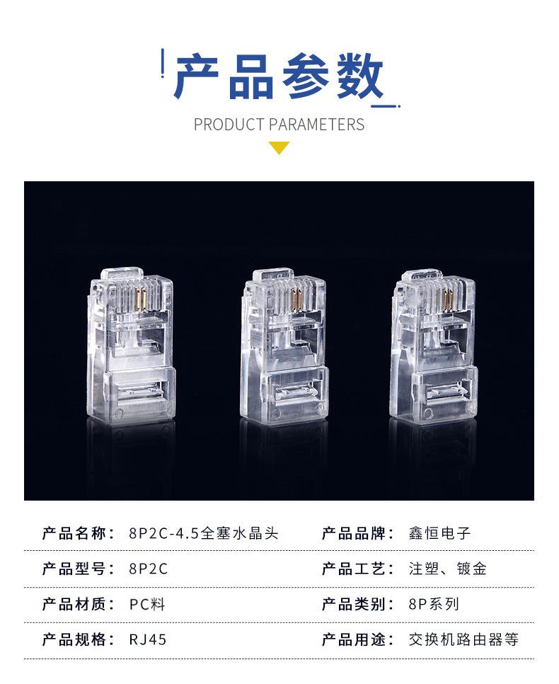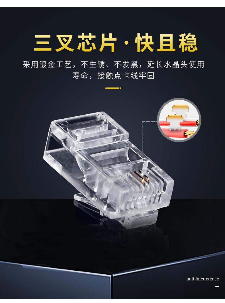 Conector de cristal RJ45 de categoría 5, 8P2C, 4,5 bits, chapado en oro, de tres puntas, con conector completo y cabezal de cristal de red, personalizado en fábrica