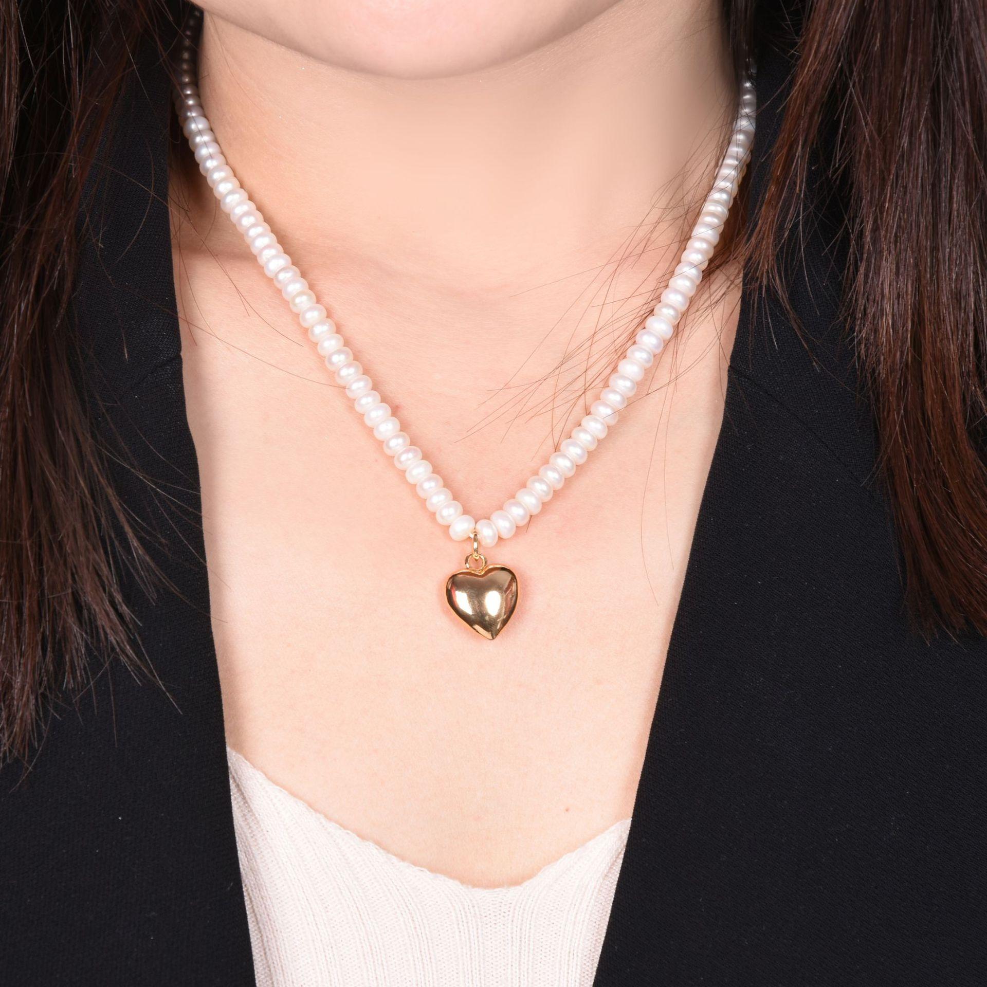 Colgante de Corazón de Perla Irregular de Agua Dulce de Alta Gama Exquisito Collar de Perlas Cadena para Suéter Joyería Colgante Lujo Ligero para Mujer